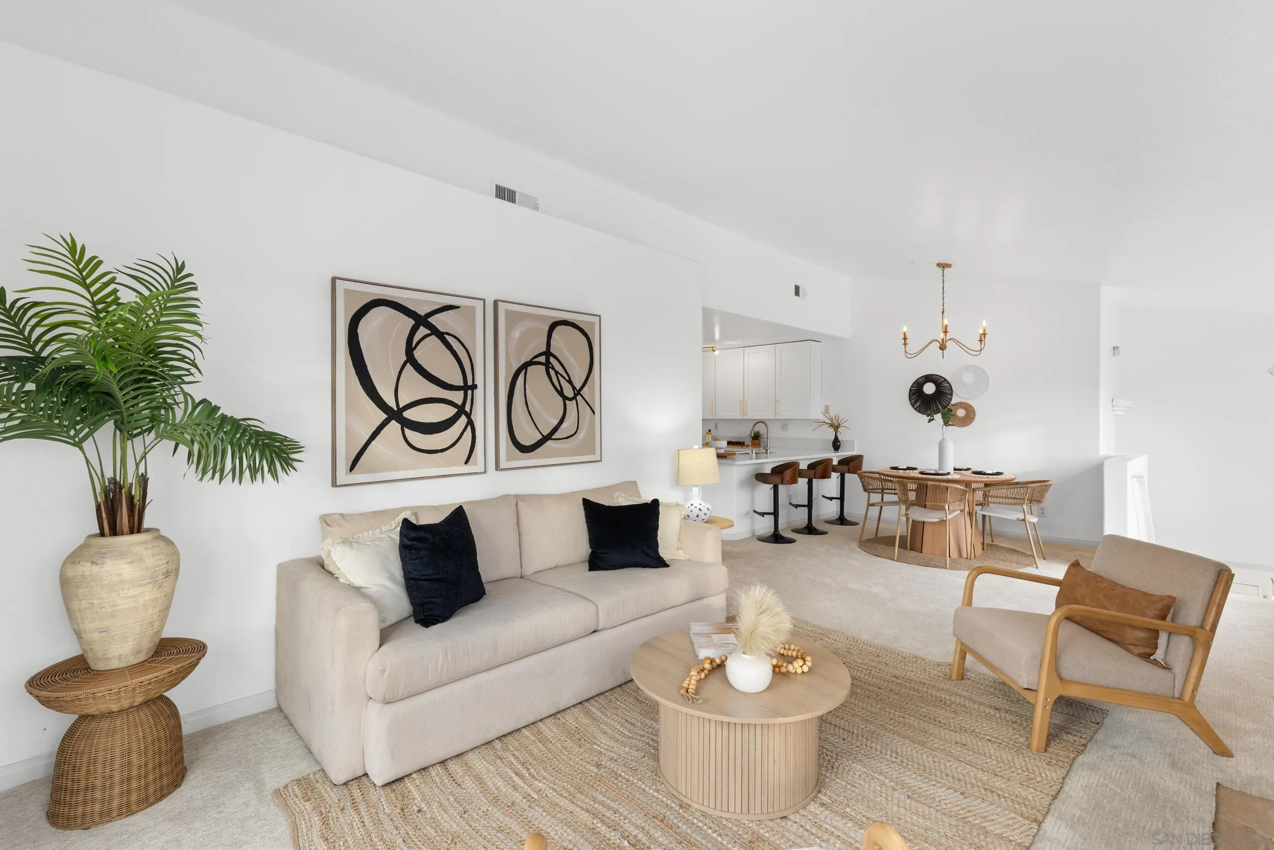 VA APPROVED! Welcome to the highly desirable Sanibelle community—this corner end-unit, upper-level 2-bedroom, 2-bath condo offers the perfect blend of comfort and convenience. Enjoy single-story living with soaring vaulted ceilings and abundant natural light throughout. The home features a functional layout with a tastefully updated kitchen, spacious living and dining areas, and well-sized bedrooms, including a private primary suite. The inviting living room offers a cozy gas fireplace and direct access to a private balcony—perfect for relaxing or enjoying your morning coffee. The home is equipped with central A/C and features extra plush, newly installed carpet. A convenient in-unit laundry closet is located in the hallway. Additional highlights include an attached garage with a newer upgraded garage door installed in 2024, an extra assigned parking space, and two guest parking passes—an incredibly rare combination. Enjoy added value with NO Mello-Roos and a low HOA. Ideally located just minutes from the 805 freeway and within walking distance to Clear View Elementary, shopping, restaurants, and public transportation. Nearby Terra Nova Park offers basketball and tennis courts, playgrounds, and a softball field. Plus, enjoy close proximity to the Gaylord Pacific Resort. Move-in ready and a rare opportunity you don’t want to miss!