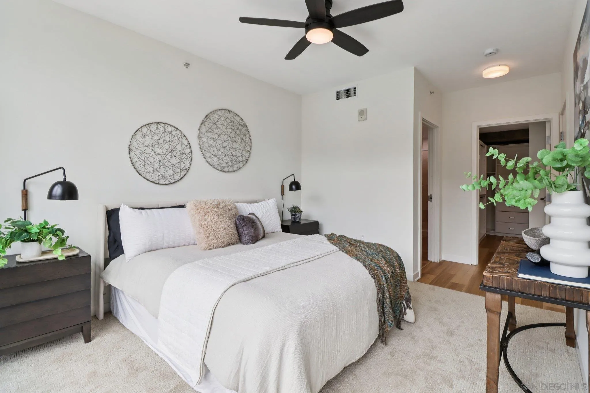 Experience elevated urban living at The Mark in Downtown San Diego’s vibrant East Village. This spacious 2-bedroom, 2-bath residence offers approximately 1,228 sq ft of thoughtfully designed living space, blending modern upgrades with striking architectural elements. An ideal split-bedroom floor plan ensures privacy, with both bedrooms and bathrooms offering generous space and comfort. Inside, an open-concept layout unfolds with floor-to-ceiling windows that flood the home with natural light and city vistas, along with expansive living and dining areas perfect for everyday living and entertaining. The kitchen is well-appointed with quality appliances, dual wine refrigerators, and ample storage, creating a functional and refined culinary space. Both bathrooms showcase distinctive custom rock wall accents, adding a bold, spa-inspired aesthetic, while the large walk-in closet with built-ins offers exceptional organization. Step outside to a private patio overlooking park-like grounds with pool and green space views—ideal for relaxing or hosting guests. Additional highlights include in-unit laundry, a dedicated storage locker, and two side-by-side parking spaces in a secure garage. Residents enjoy resort-style amenities including a pool and spa, fitness center, concierge service, and 24-hour security, all just moments from Petco Park and the Gaslamp Quarter.