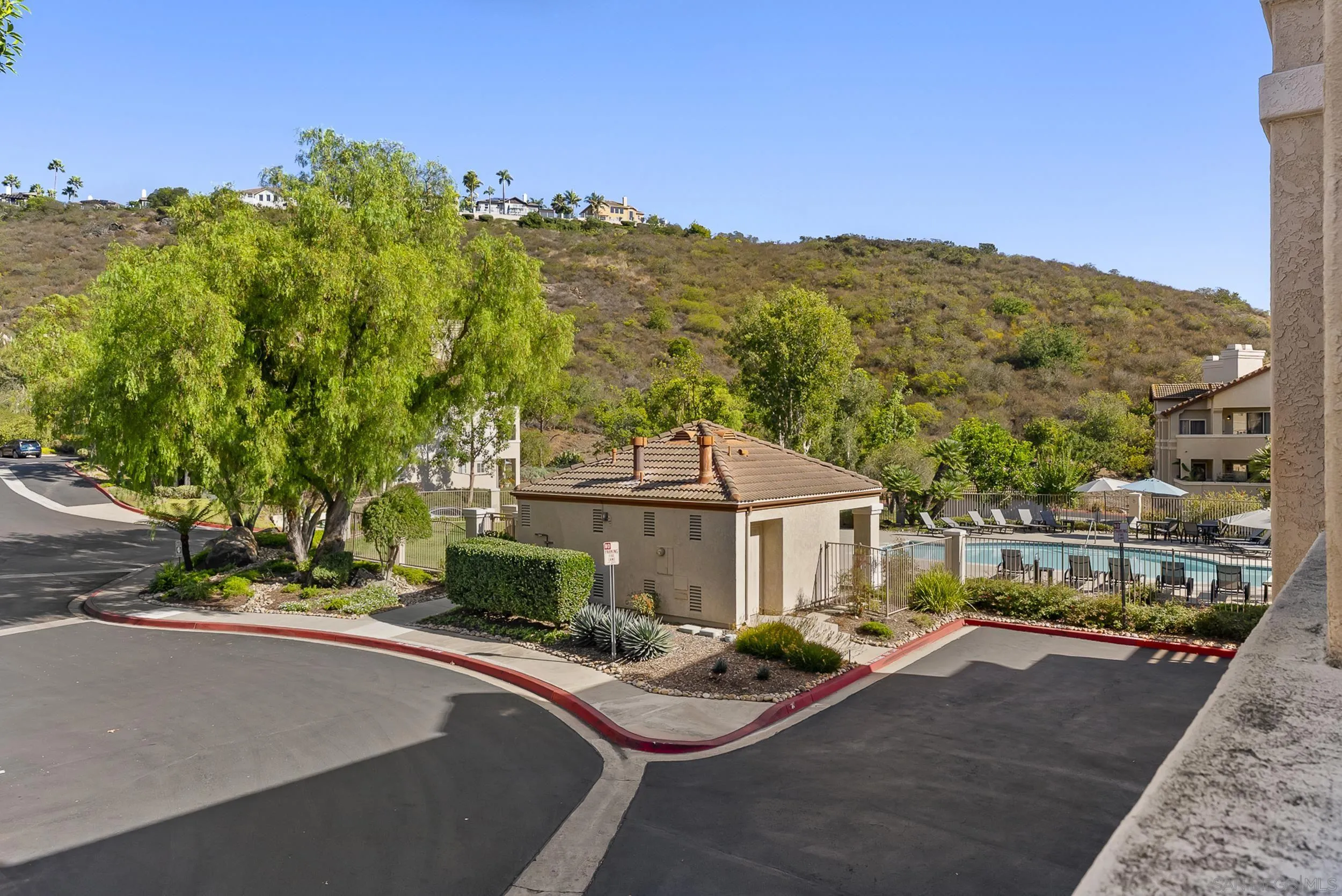 The absolute best location within the Affinity community in Scripps Ranch, this 2-bedroom, 2-bath condo with a coveted 2-car tandem garage combines privacy, upgrades, and lifestyle in one exceptional offering. Ideally situated next to one of the community pool and spa areas, yet tucked along the quiet side of the building. Enjoy hillside-facing eastern views with minimal freeway noise. With no one below and only one shared wall, the setting feels elevated and private. The residence also features (see suppl)