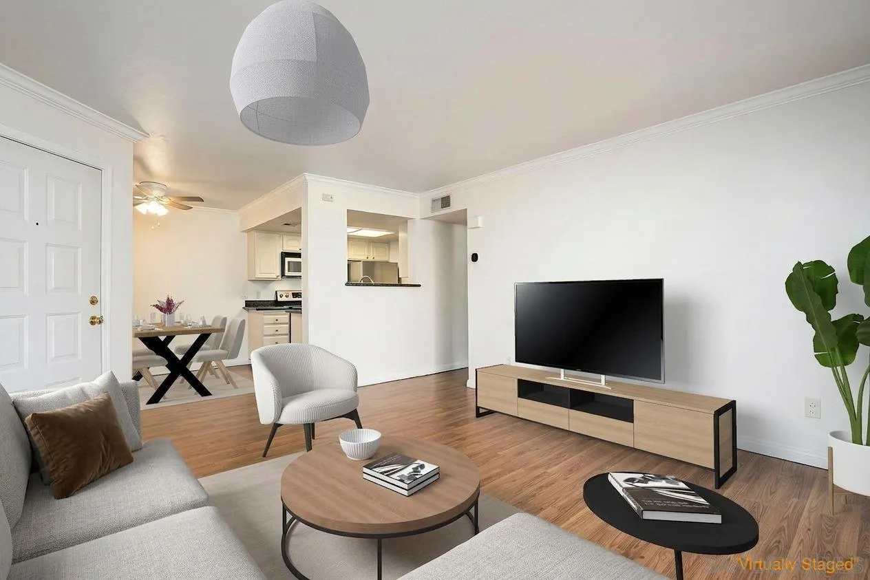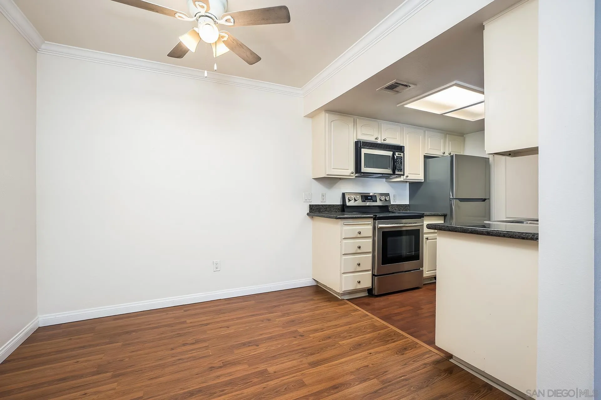 Welcome to resort-style living in the highly desirable Il Palio community! This move-in ready 1-bedroom, 1-bath interior unit offers a peaceful setting away from main roads while still being conveniently located near the pool and tennis courts. Inside, you’ll find laminate wood flooring throughout, fresh interior paint, and a bright, open layout. The upgraded kitchen features granite countertops, newer cabinetry, and all appliances included—making this home truly turnkey. Additional improvements include a newer HVAC system and water heater for added comfort and efficiency. Enjoy the rare convenience of a walk-in pantry with a full-size, side-by-side washer and dryer. The spacious bedroom and living areas provide a comfortable retreat, ideal for both everyday living and entertaining. Il Palio offers an impressive array of resort-style amenities including a pool, spa, sauna, fitness center, clubhouse, tennis and racquetball courts, and BBQ areas. Located within the award-winning Poway Unified School District, this home also includes assigned covered parking and guest parking with permit. A perfect opportunity for first-time buyers, investors, or anyone seeking low-maintenance living in a prime CMR/Rancho Bernardo location! One or more photo(s) was virtually staged.