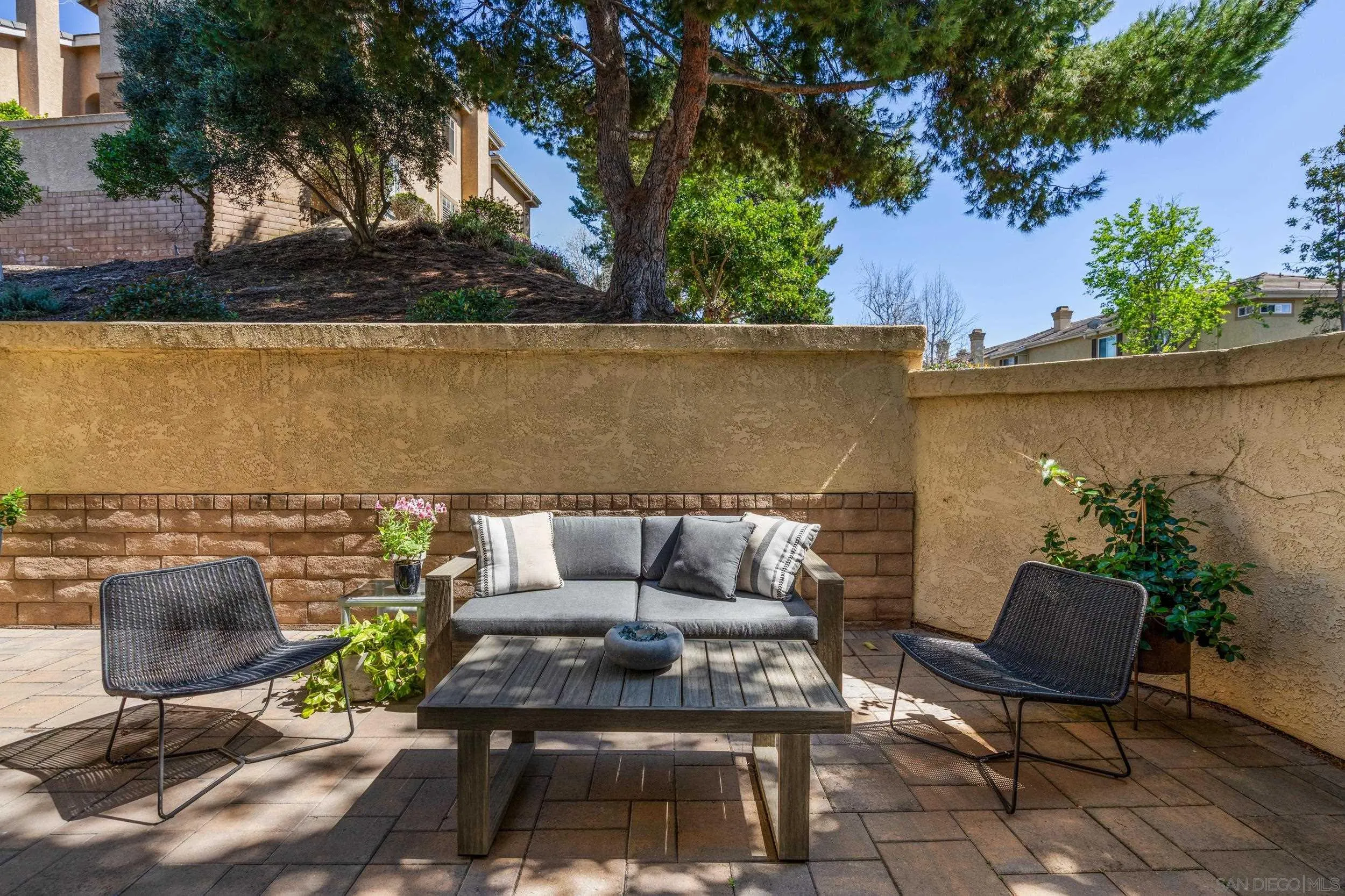 Experience the best of Carmel Valley living just minutes from the coast and everything it has to offer. This desirable 3-bedroom end-unit townhome in Château Village features soaring vaulted ceilings and abundant natural light throughout. The two-level home showcases luxury vinyl plank flooring, a new updated wrought-iron stair railing, and an open floor plan with updated fireplace. The kitchen offers shaker cabinetry, black granite countertops, and recess lighting. A new sliding patio door opens to the private patio with stone pavers and mature trees, creating a peaceful outdoor retreat with beautiful morning sun. Additional highlights include new roof, A/C, an attached two-car garage with epoxy flooring and washer/dryer. Château Village offers resort-style amenities including pool, jacuzzi, tennis courts, pickleball, and fitness center. Ideally located near top-rated schools, Torrey Pines State Reserve, the Del Mar Racetrack, and within walking distance to Del Mar Highlands Town Center and One Paseo for premier dining and shopping. This move-in-ready home presents a rare opportunity to own in one of Carmel Valley’s most sought-after walkable communities.