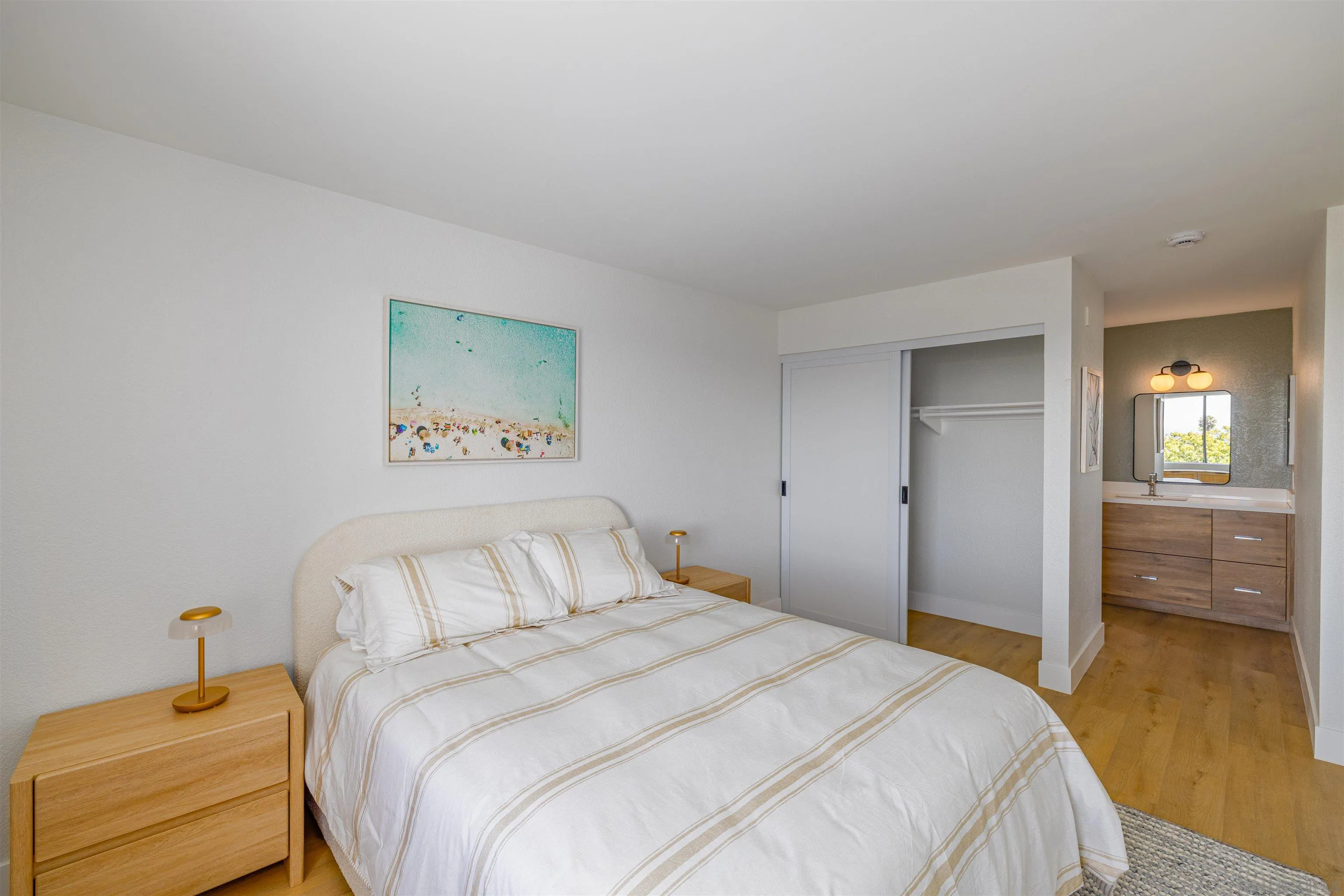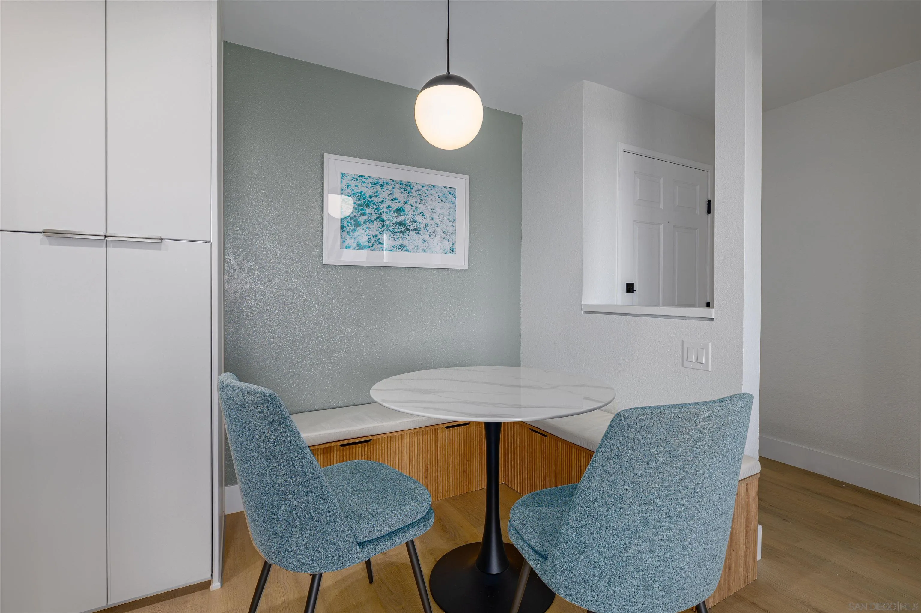 Model Home – Residence 208 at The Heights at Bay Park. Arguably one of the most coveted locations in the entire community, this beautifully appointed two-bedroom, two-bath model residence showcases sweeping views extending all the way to the ocean. Positioned to capture coastal breezes and sunset skies, this light-filled home offers an exceptional combination of location, outlook, and thoughtful design. The open-concept living area flows seamlessly to a private balcony, creating an ideal setting for indoor-outdoor living. The kitchen opens to the dining and living spaces, making everyday living and entertaining effortless. Professionally designed as the community’s featured model, this residence includes upgraded finishes, contemporary styling, and carefully curated details throughout. The spacious primary suite offers an en-suite bath and generous closet space, while the secondary bedroom and full bath provide flexibility for guests, home office, or additional living needs. Every space has been thoughtfully arranged to maximize comfort, functionality, and natural light. Located within close proximity to beaches, Mission Bay, coastal bike paths, dining, shopping, and major freeways, The Heights at Bay Park offers convenience and lifestyle in one of San Diego’s most desirable coastal-close neighborhoods. As the showcased model home, Residence 208 represents a rare opportunity to own one of the best-positioned homes in the community, combining ocean views, designer upgrades, and a highly sought-after location.