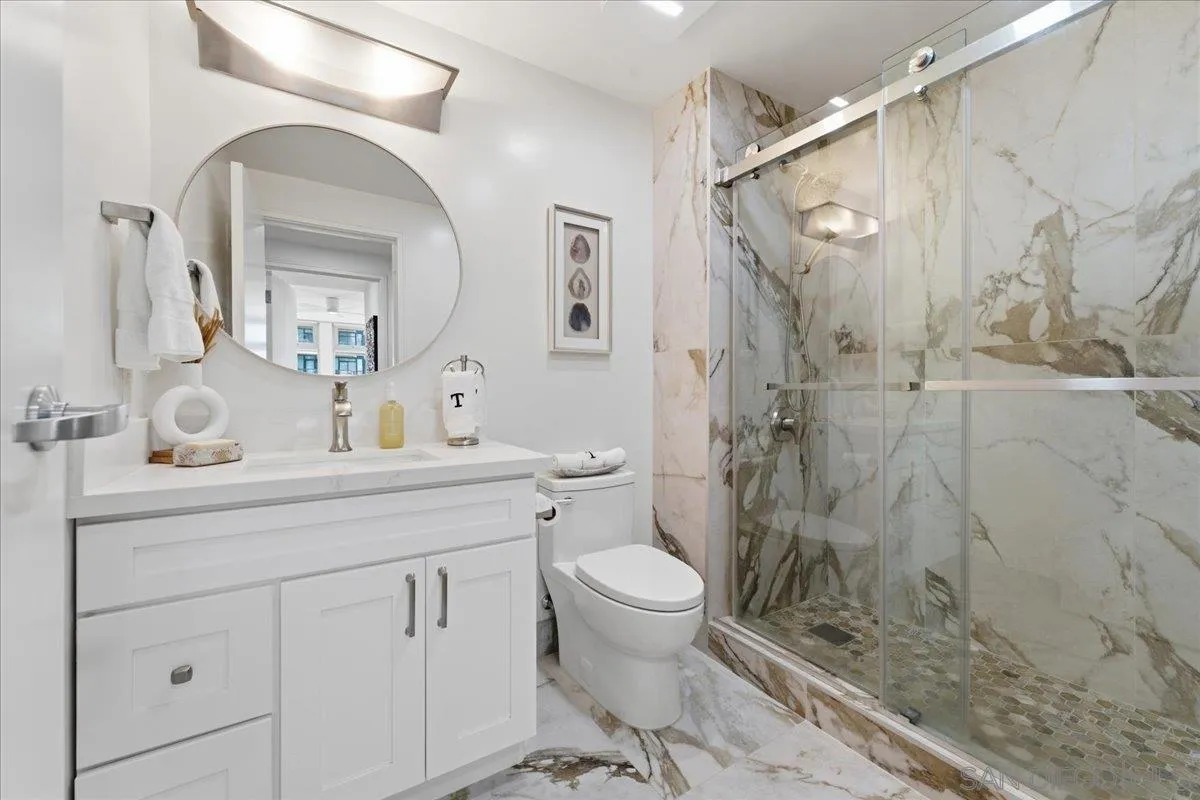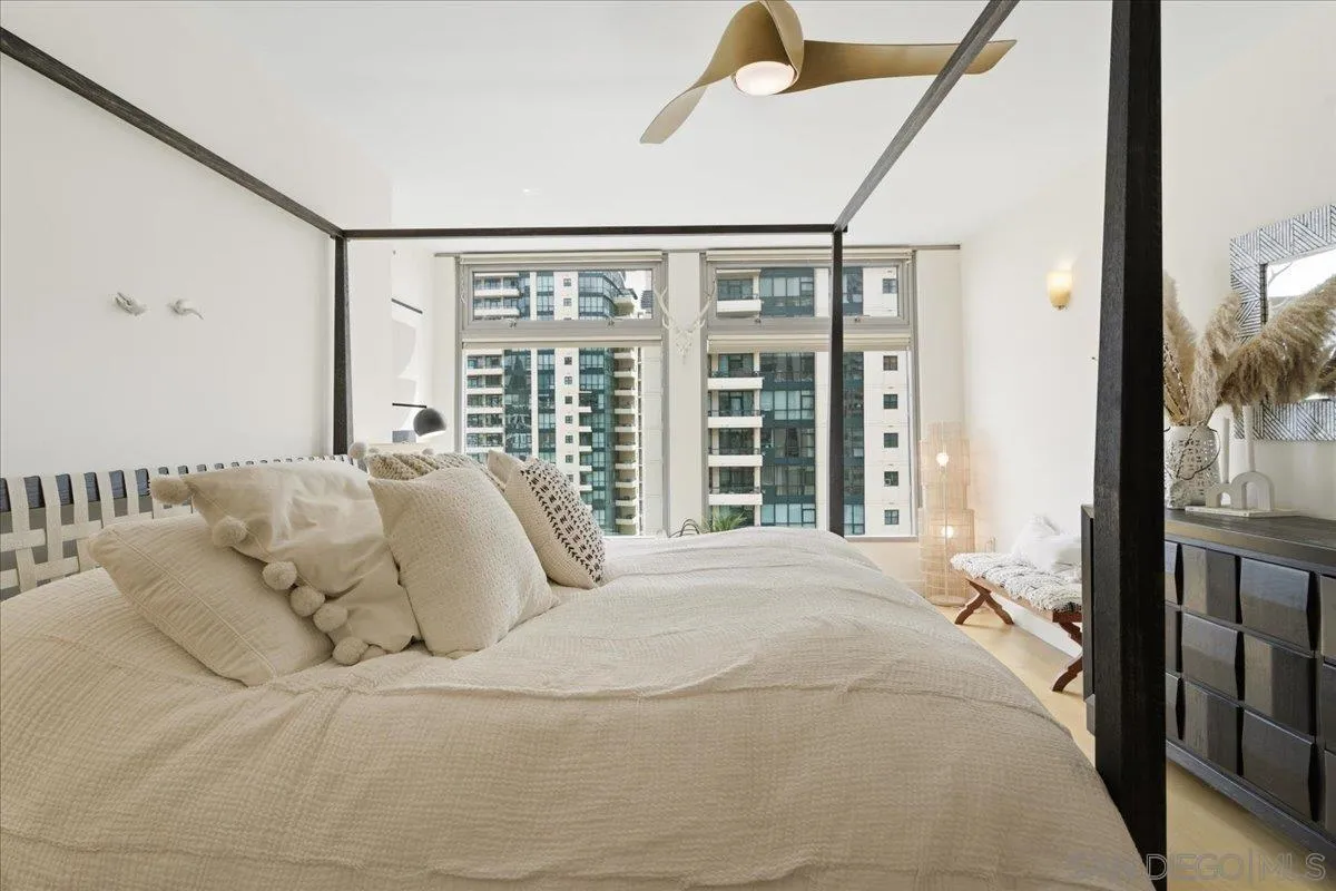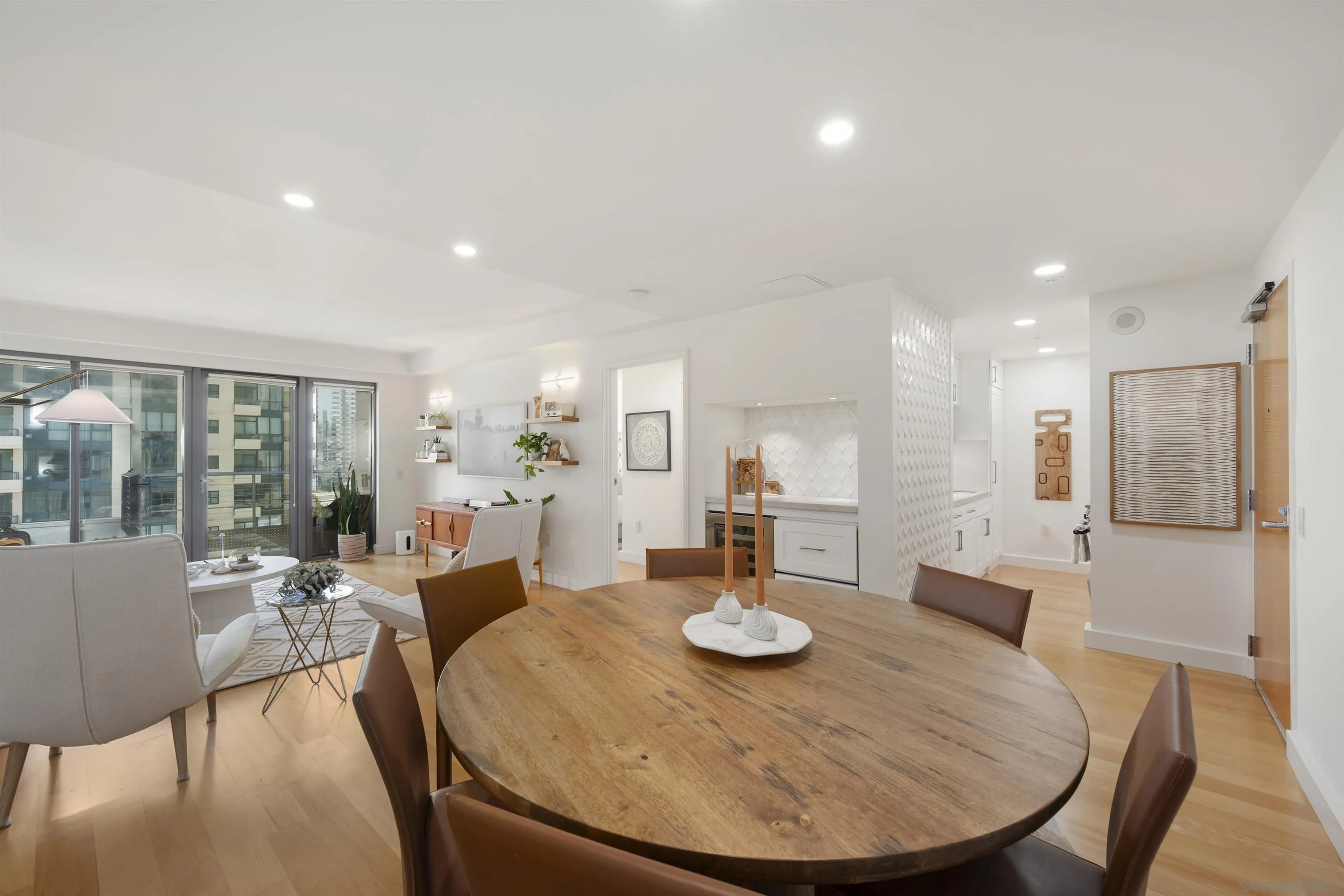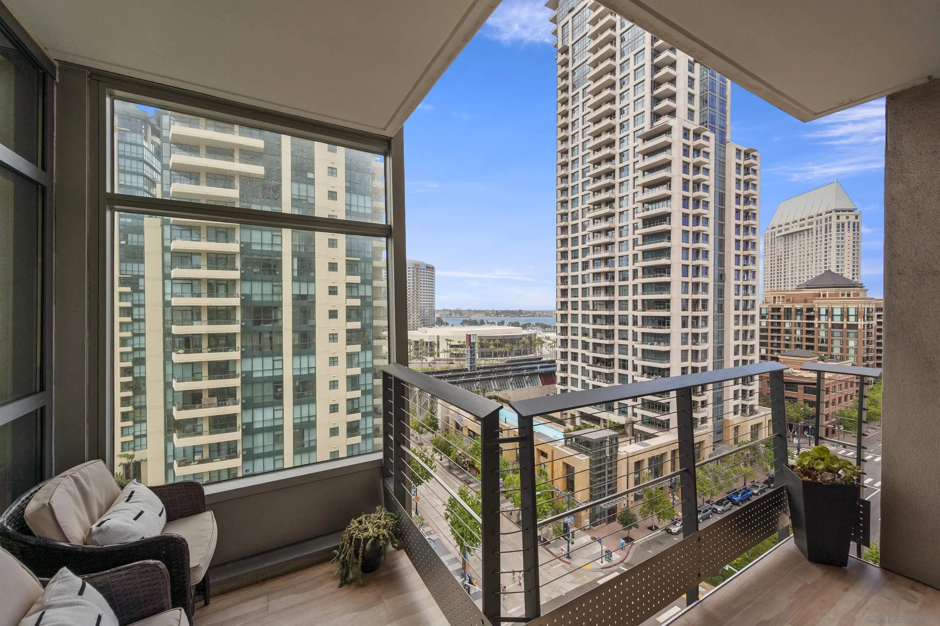 Experience elevated urban luxury in the heart of Downtown San Diego’s prestigious Marina District at the highly sought-after Renaissance – South Tower. This impeccably remodeled 12th-floor residence offers a rare 3-bedroom, 3-bath floor plan with water views and expansive floor-to-ceiling windows. The completely reimagined chef’s kitchen is a true showpiece, featuring rare natural granite countertops, a paneled Bosch dishwasher, paneled Sub-Zero refrigerator, and a professional-grade Hestan range. Entertain effortlessly with a custom bar area complete with Perlick double-drawer refrigerator and wine fridge. Refined upgrades continue throughout with rich maple hardwood flooring, a Samsung Frame TV paired with surround sound. Balcony perfect for indoor-outdoor living. The luxurious primary suite offers a spa-inspired retreat with a freestanding soaking tub, expanded walk-in shower, custom cabinetry, and designer fixtures. The junior suite and third bathroom have been thoughtfully remodeled with custom walk-in showers, modern vanities, premium finishes, and striking 24x48 porcelain slab tile. Additional highlights include two premium parking spaces (one extra-wide and one wide with easy access) and an oversized private storage locker with bonus space—among the largest available in the building. This is a rare opportunity to own a fully upgraded residence in one of Downtown San Diego’s most desirable luxury high-rises, just moments from the waterfront