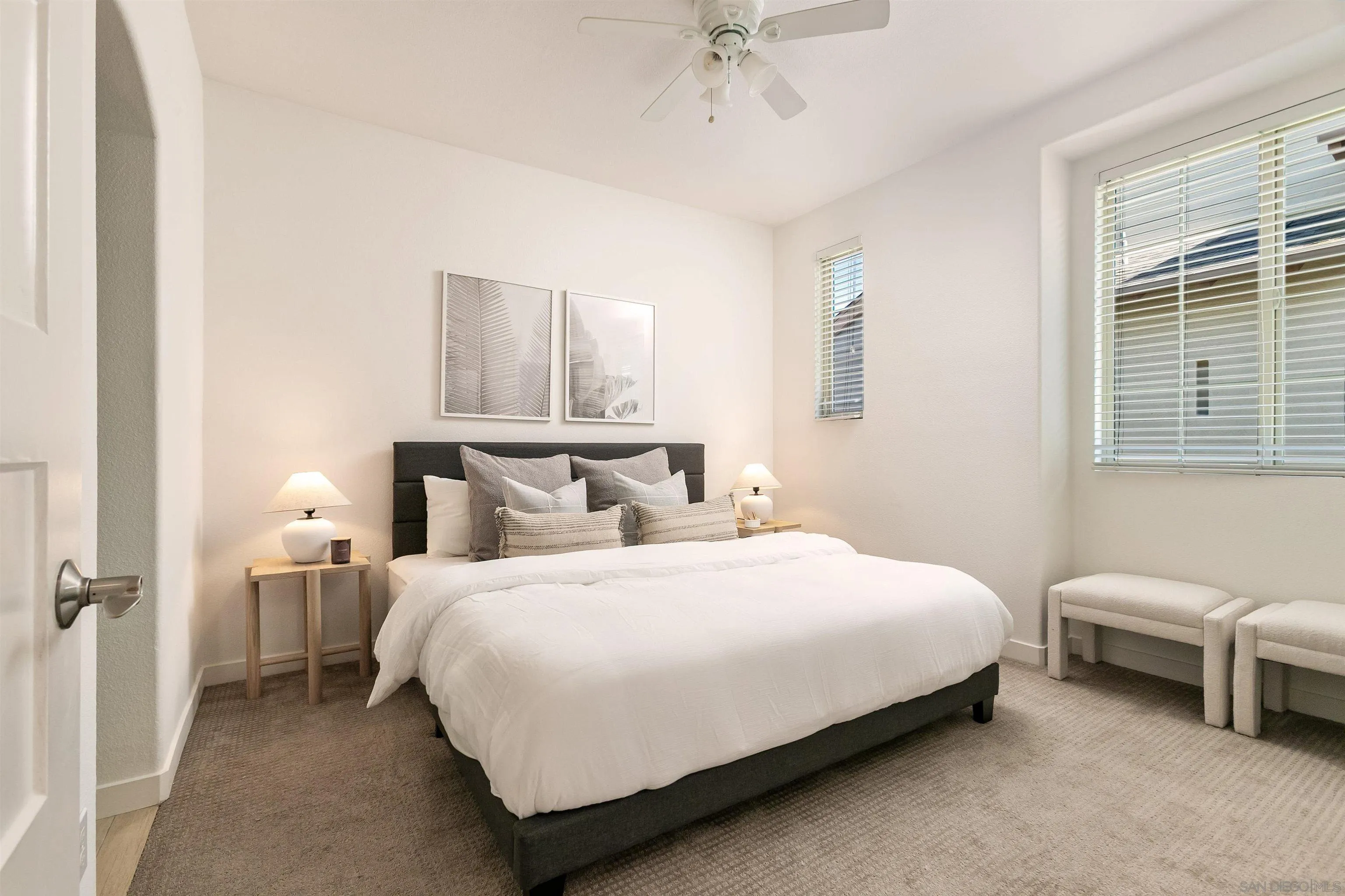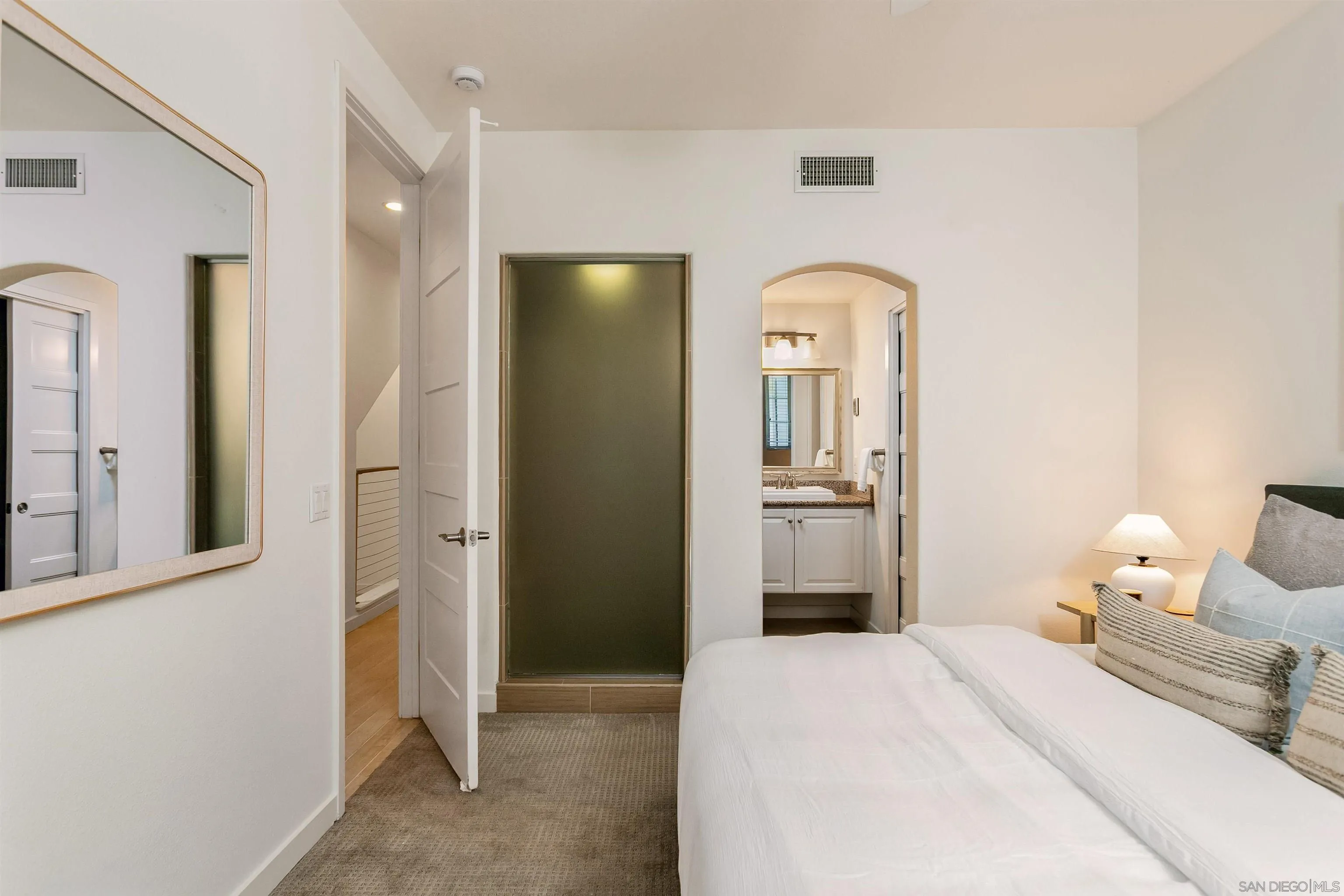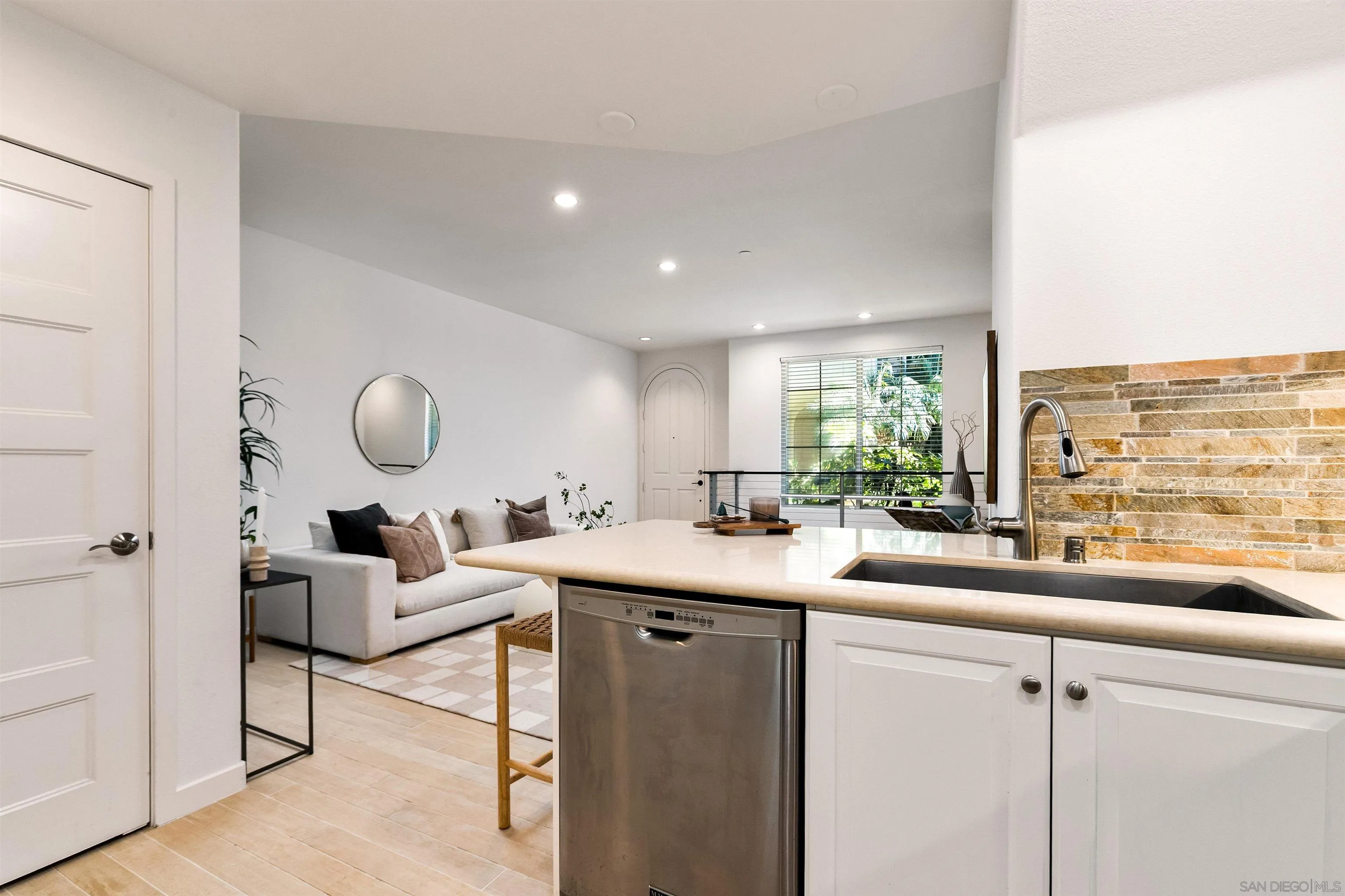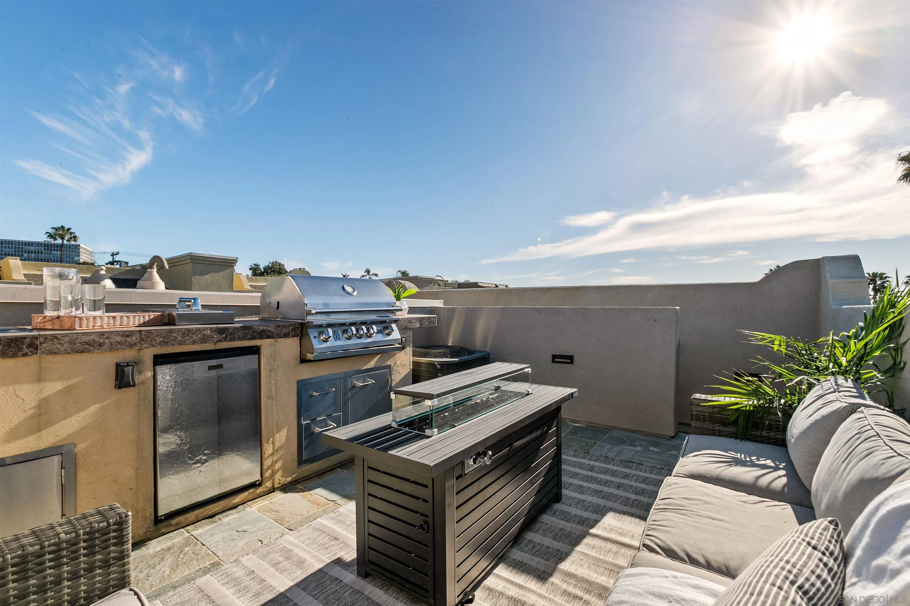 Stunning, exquisite, and ideally situated in a quiet location in the heart of the Village of La Jolla. This beautifully maintained townhouse offers an exceptional opportunity to enjoy one of Southern California’s most coveted coastal lifestyles. Residences in the highly sought-after Paseo La Jolla community seldom come to market. Meticulously cared for and move-in ready, the home offers 2 bedrooms and 2.5 baths, including two ensuite bedrooms. The primary bedroom has a ceiling fan and a walk-in closet designed by California Closets. Elegant finishes and custom flooring create a warm, inviting interior, while the well-appointed kitchen includes stainless steel appliances, gas cooking, and generous counter space. Granite countertops enhance the bathrooms and a stacked washer and dryer adds to everyday convenience. The rooftop deck is a standout feature, complete with a built-in Lion barbecue, mini-fridge, and cooking island—offering Village views, peek ocean views, and colorful sunsets, an ideal setting for relaxing, al fresco dining or entertaining. Additional highlights include a private two-car garage with direct access, epoxy flooring, and built-in California Closets, a tankless water heater, recessed lighting throughout, and central air conditioning. Enjoy the ultimate Village lifestyle just moments from beautiful beaches, acclaimed restaurants, charming cafes, boutiques, art galleries, the Sunday Farmers’ Market, and the La Jolla Country Club. This wonderful property offers the very best of Village living, once you see it you will want to call it home.