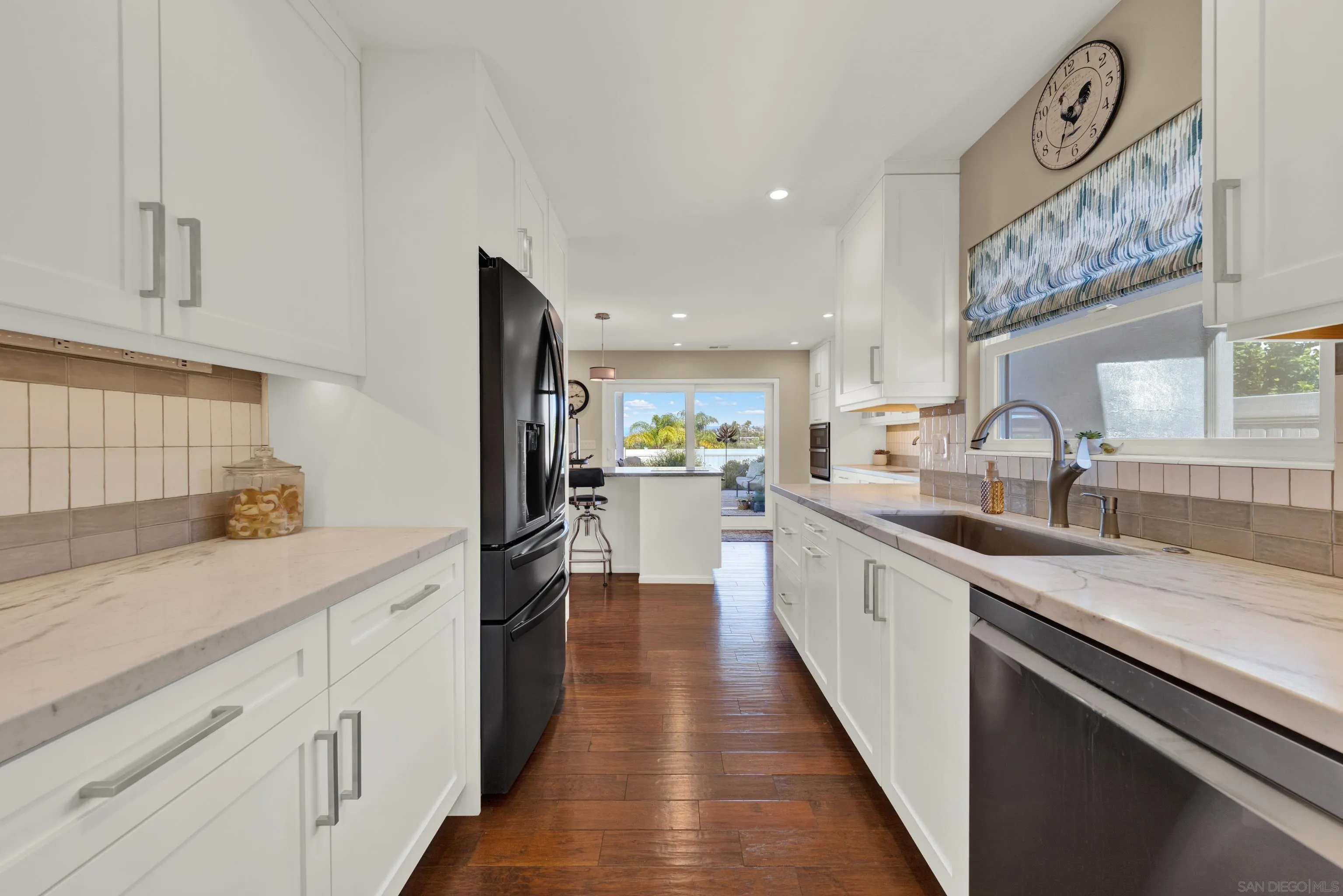 Step into luxury with this beautifully remodeled home that effortlessly combines style, comfort, and functionality. From the moment you arrive, you'll be captivated by the custom landscaping, charming curb appeal and the promise of VIEWS! Owned solar is an added bonus to reduce the cost of utilities. The heart of the home is a chef’s dream kitchen, featuring a stunning custom marble Island. Add custom cabinetry with convenient pull-out drawers, two durable Blanco sinks that resist scuffs and stains, and gleaming countertops that elevate every meal prep. Top-of-the-line appliances and abundant storage make entertaining a breeze. Throughout the home, enjoy plenty of storage options as well as bathrooms having been stylishly renovated, offering modern finishes and thoughtful design. A new 2024 AC unit keeps the temperature just right year-round. Unwind by the fireplace featuring beautiful mother of pearl tiles, or enjoy gatherings under your outdoor covered patio while taking in the beautiful views of Rancho Bernardo and beyond. The outdoor space is impressive, with professionally designed landscaping in both the front and backyard—ideal for relaxing evenings or weekend entertaining. This home is the perfect blend of high-end finishes and comforting livibility. Truly a must-see! Located in an active Adult community with pool, clubhouse, and a wide range of amenities. This turnkey home truly offers it all.
