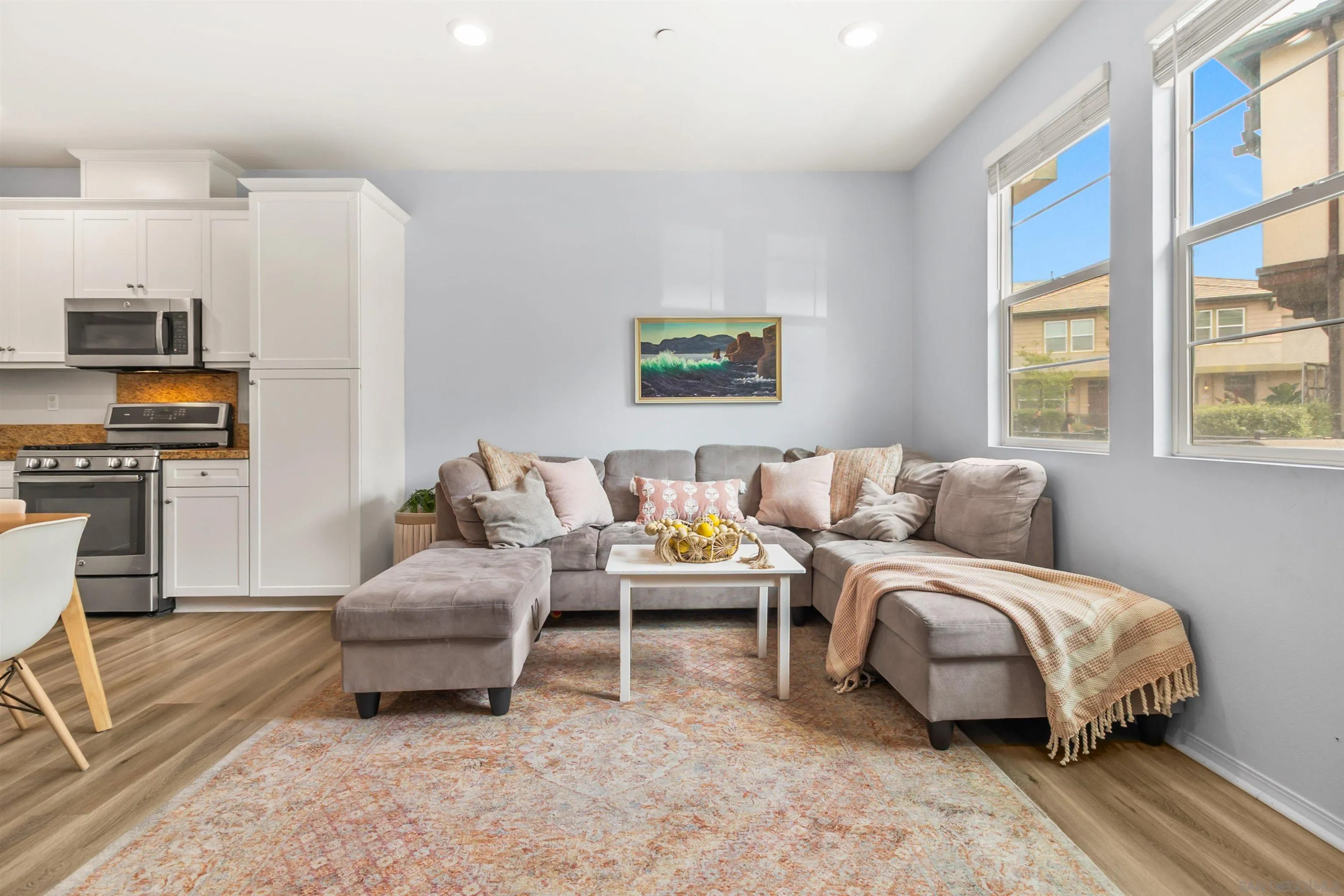 Welcome to Lake Pointe—where elevated living meets everyday ease in one of Chula Vista’s most sought-after communities, just moments from Lower Otay Lake. This beautifully upgraded luxury townhouse offers a bright, open floor plan designed for modern living. The heart of the home is a gorgeous and spacious kitchen featuring granite countertops, refinished cabinetry, and a brand-new dishwasher. Fresh paint and new LVP flooring throughout create a clean, contemporary feel, while a spacious walk-in closet adds to the home’s thoughtful design. Enjoy the convenience of an attached 2-car garage with built-in storage and an electric vehicle charging port, plus a new clothes dryer already in place. Lake Pointe residents enjoy resort-style amenities including a year-round heated pool and spa, clubhouse, and multiple BBQ areas—one overlooking the lake and another within the pool grounds. With nearby access to Mountain Hawk Park, scenic walking paths, top-rated schools, and a welcoming, pet-friendly atmosphere, this community truly has it all. A rare opportunity to own in a location that blends lifestyle, comfort, and connection. FHA/VA approved.