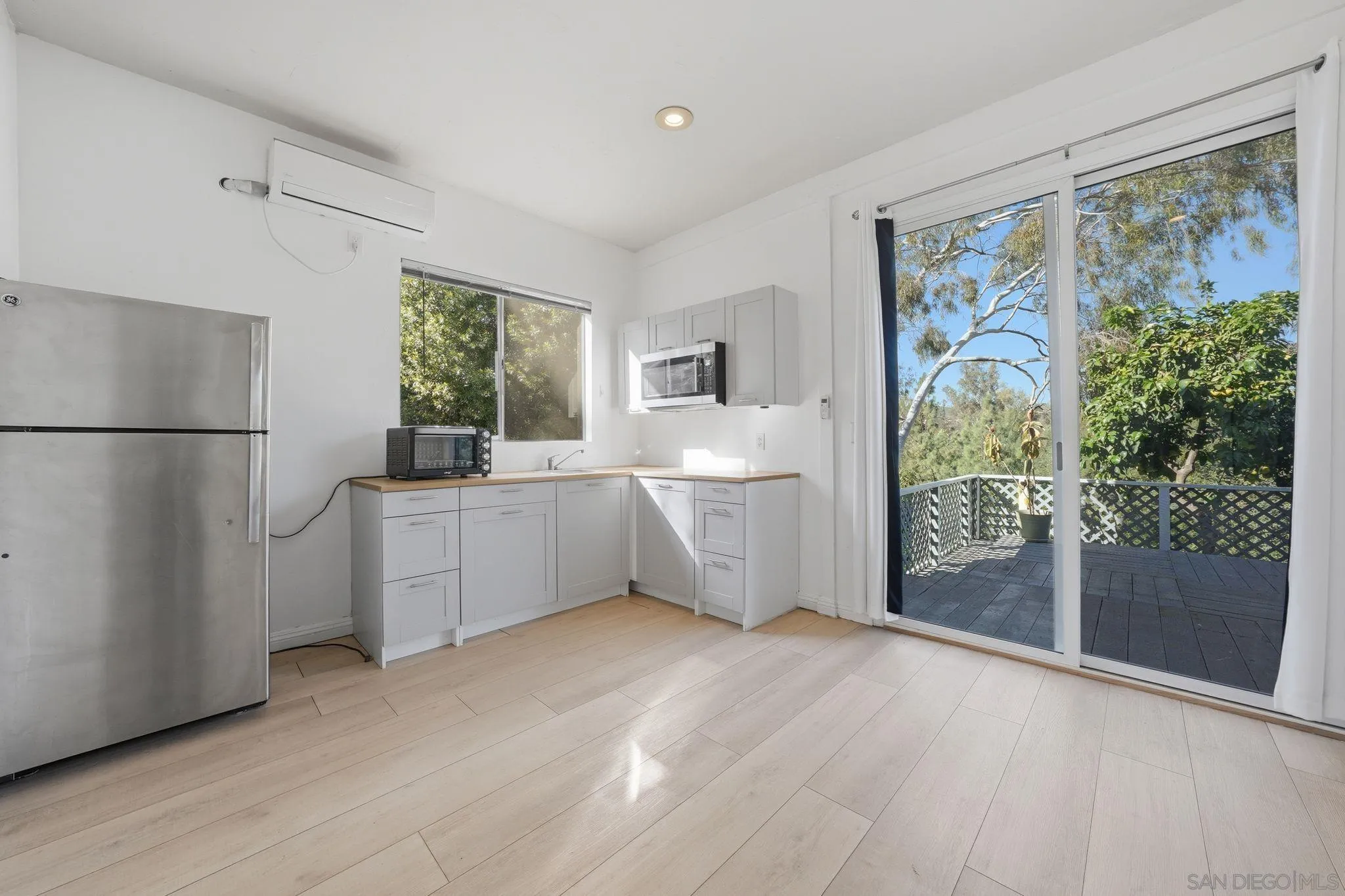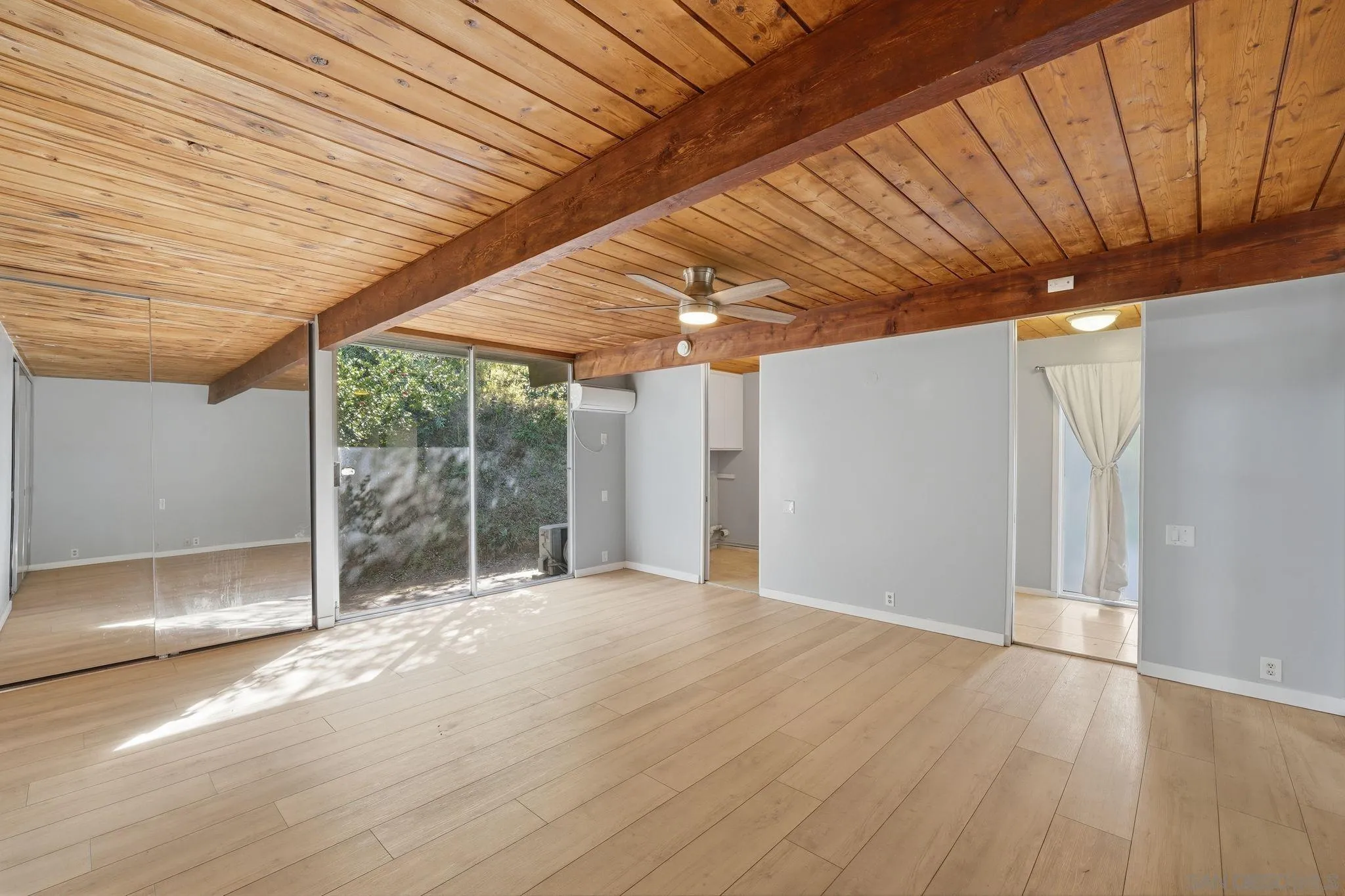 Mid-century modern retreat in the peaceful and private Eucalyptus Hills community, set on over an acre with sweeping mountain views and a separate guest house. Surrounded by nature, this home offers a warm, inviting feel with abundant natural light and timeless architectural character throughout. Inside, wood ceilings and floor-to-ceiling windows offer an expansive view to the outdoors, filling the home with light and showcasing the surrounding hills. The main living area features a cozy wood-burning fireplace and opens directly to a spacious deck - perfect for morning coffee or sunset evenings. The home also includes a remodeled kitchen, refreshed bathrooms, and a spacious primary suite. The private granny flat offers its own deck, kitchen, bathroom, and laundry - ideal for guests, multi-generational living, or income potential. The expansive lot provides ample space for trailer and boat parking, future expansion, or additional ADU opportunities. Paid SOLAR keep energy costs low! A rare blend of iconic design, privacy, and versatility - this is hillside living at its best.