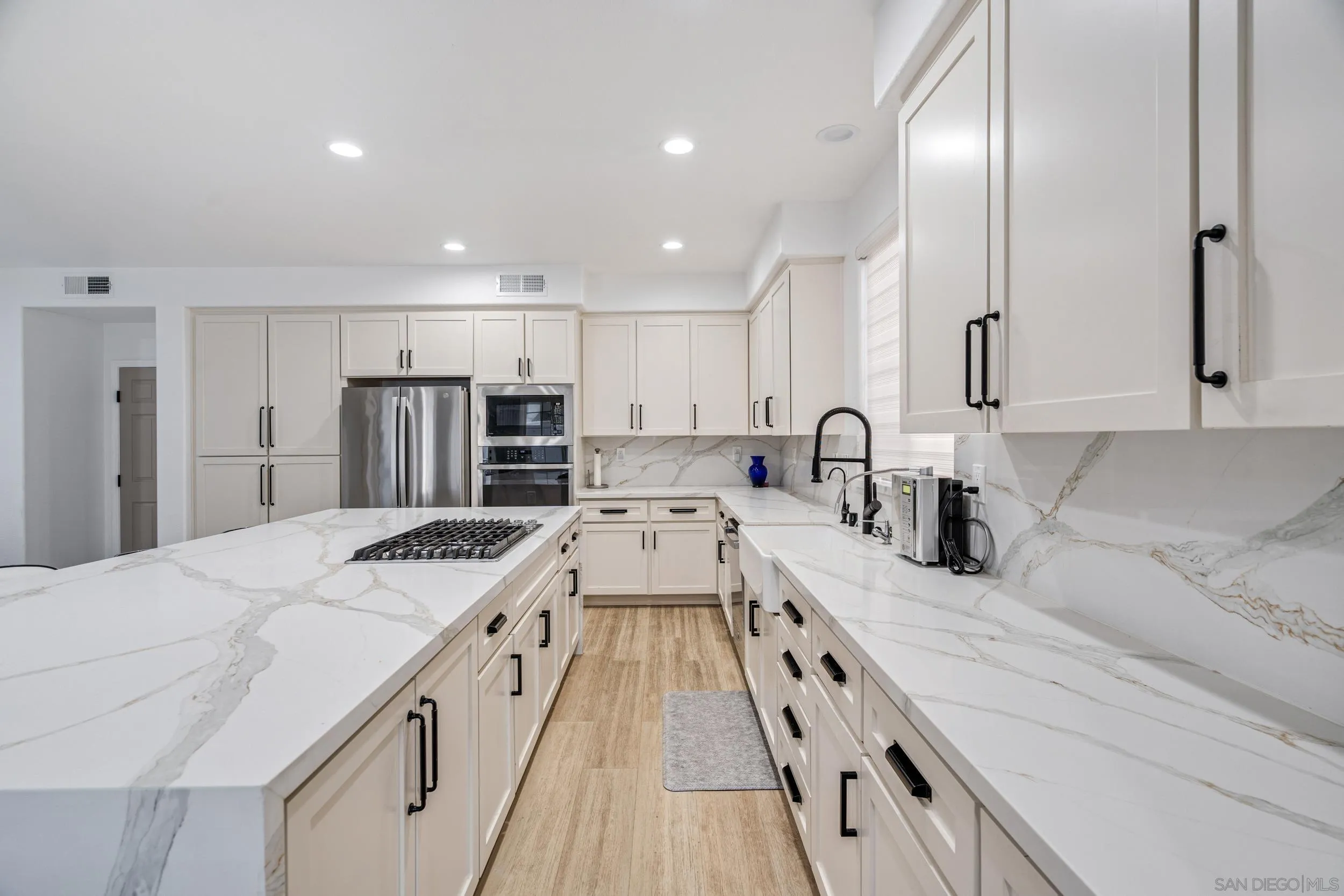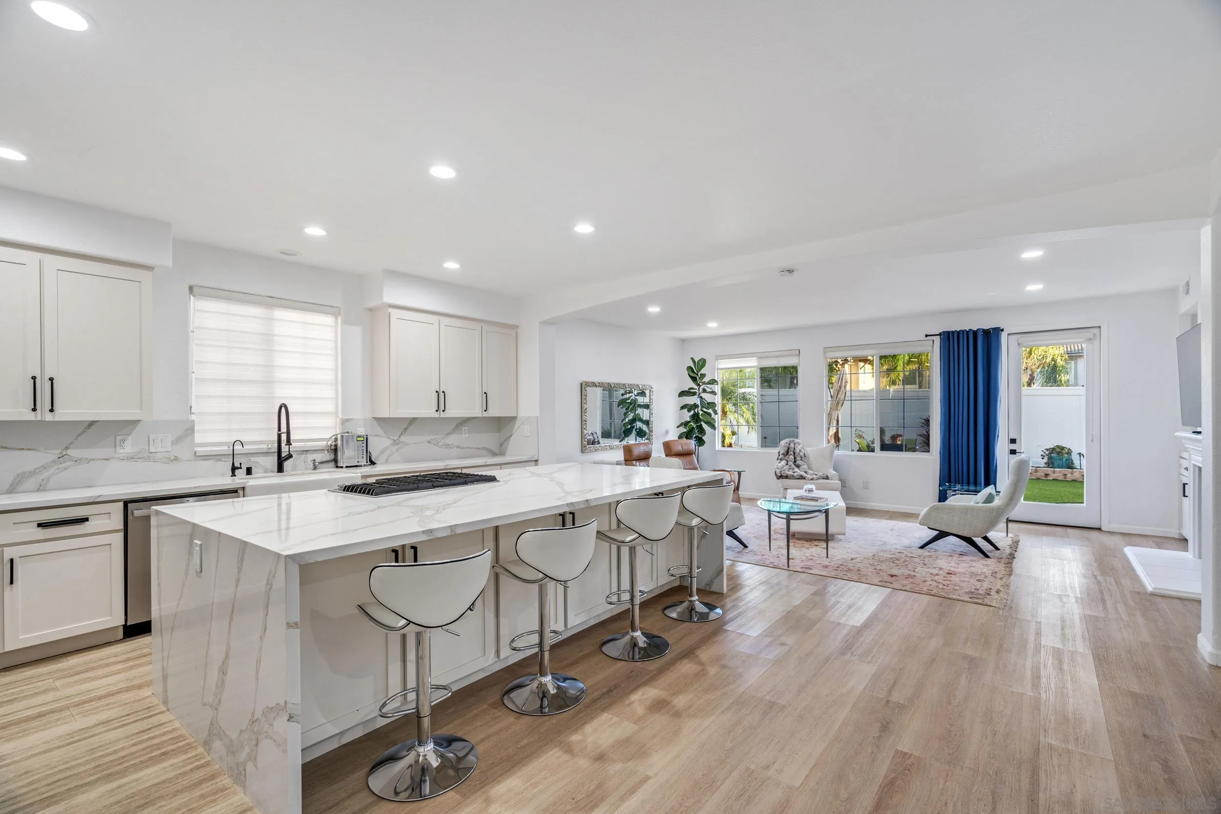 Welcome to 550 Echo Lane, a pristine, move-in ready residence in the exclusive gated community of Buenavida. Offering 4 bedrooms and 3 full bathrooms, this home is designed for the modern family with a layout that balances grand scale and everyday comfort. You are greeted by soaring ceilings and a formal living room that flows into a separate, spacious family room anchored by a cozy fireplace. With multiple distinct living areas, there is plenty of room for everyone to find their own space to work, play, or relax. The thoughtful floor plan includes a full bedroom and bathroom downstairs offers ideal flexibility for guests, multigenerational living, or a home office. Upstairs, the functional design continues with a Jack and Jill bathroom connecting two well-appointed bedrooms, while the primary suite serves as a private retreat. This home has been exceptionally well cared for, and it shows in every detail. Recent improvements include fresh exterior paint, custom window coverings, a new garage motor, and a beautifully upgraded backyard with artificial turf, refreshed landscaping, a modern sprinkler system, and new vinyl and wrought iron fencing. With energy-efficient solar and a rare three-car garage, this property offers both comfort and long-term value. Located just minutes from shopping, dining, Discovery Lake, hiking trails, and easy freeway access, San Marcos continues to grow with exciting new development, expanded retail, and community enhancements underway.