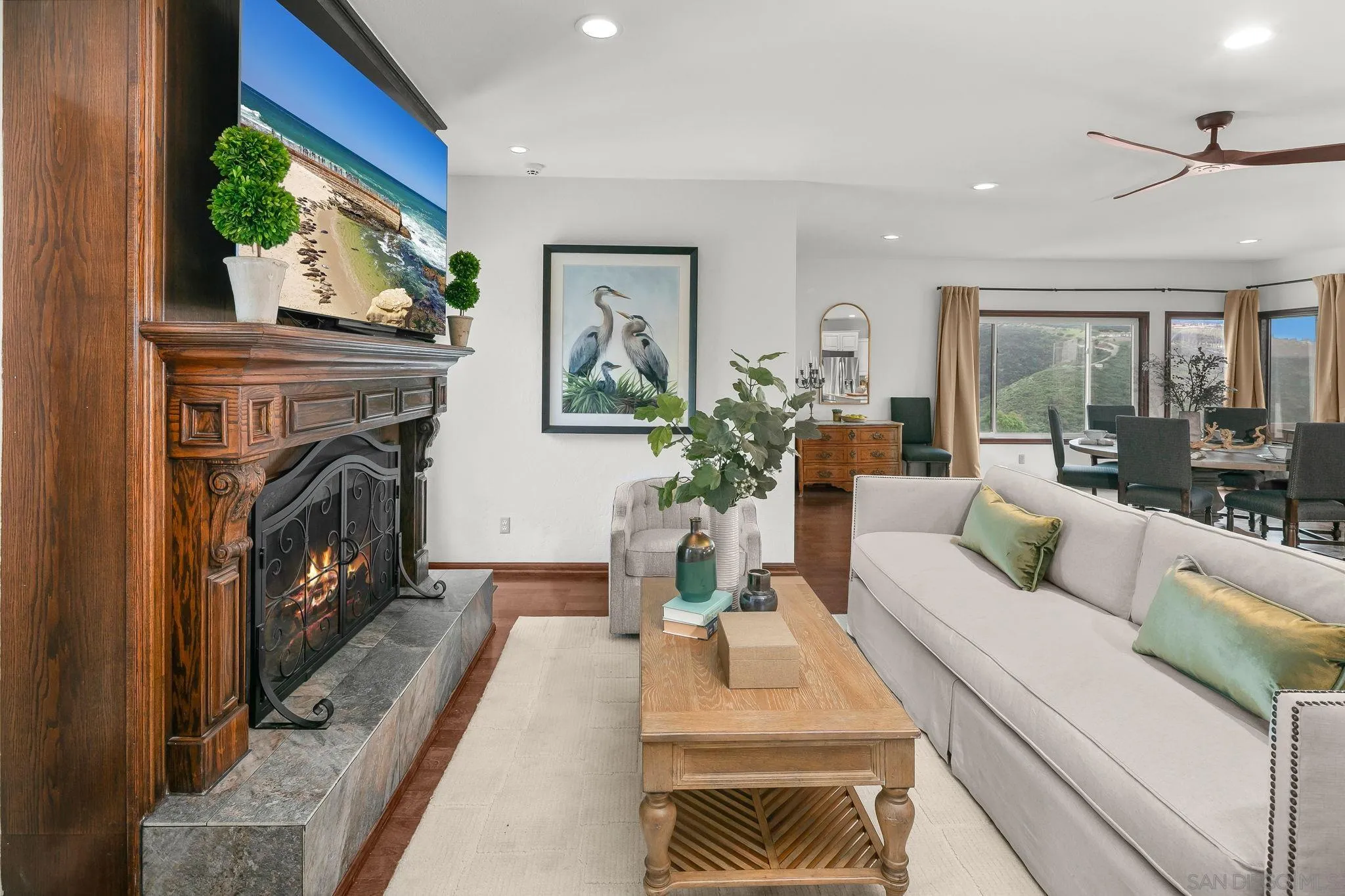 VIEWS! This home is all about the VIEWS! Welcome home to this stunning West-facing estate with panoramic VIEWS and resort-style grounds. Enjoy SWEEPING VIEWS & breathtaking sunsets every evening, where acres of open space create a rare sense of privacy and serenity. A veranda spans the entire home, providing an ideal setting for sunset dining, entertaining, or simply enjoying VIEWS that stretch for miles. The outdoor spaces are a true oasis, featuring a saltwater pool w/ spa, a fire pit, an outdoor pizza oven, a 4-hole putting green, and ample space for endless possibilities, including planting your own vineyard. A charming children’s playhouse and playground add whimsy, while mature landscaping, 22+ fruit trees, and vegetation create an environment perfect for sustainable living. Inside, the open floor plan encompasses 3,106 square feet with 3BD/3.5BA, highlighted by hardwood floors and VIEWS from every window. The large primary bedroom retreat offers peaceful VIEWS and a spacious walk-in closet. The custom kitchen is designed for both function and inspiration, featuring a large center island, granite countertops, and stainless steel appliances, ideal for creating culinary delights and entertaining. Solar is paid. An electric stair-chair provides convenient access from home to garage. $200K in home improvements has been invested into the property. Across the valley is the luxury Cal-a-Vie Health Spa and Vista Valley Country Club with an 18-hole championship golf course. Experience the magic of this one-of-a-kind oasis. Interest rate buydown incentive offered!