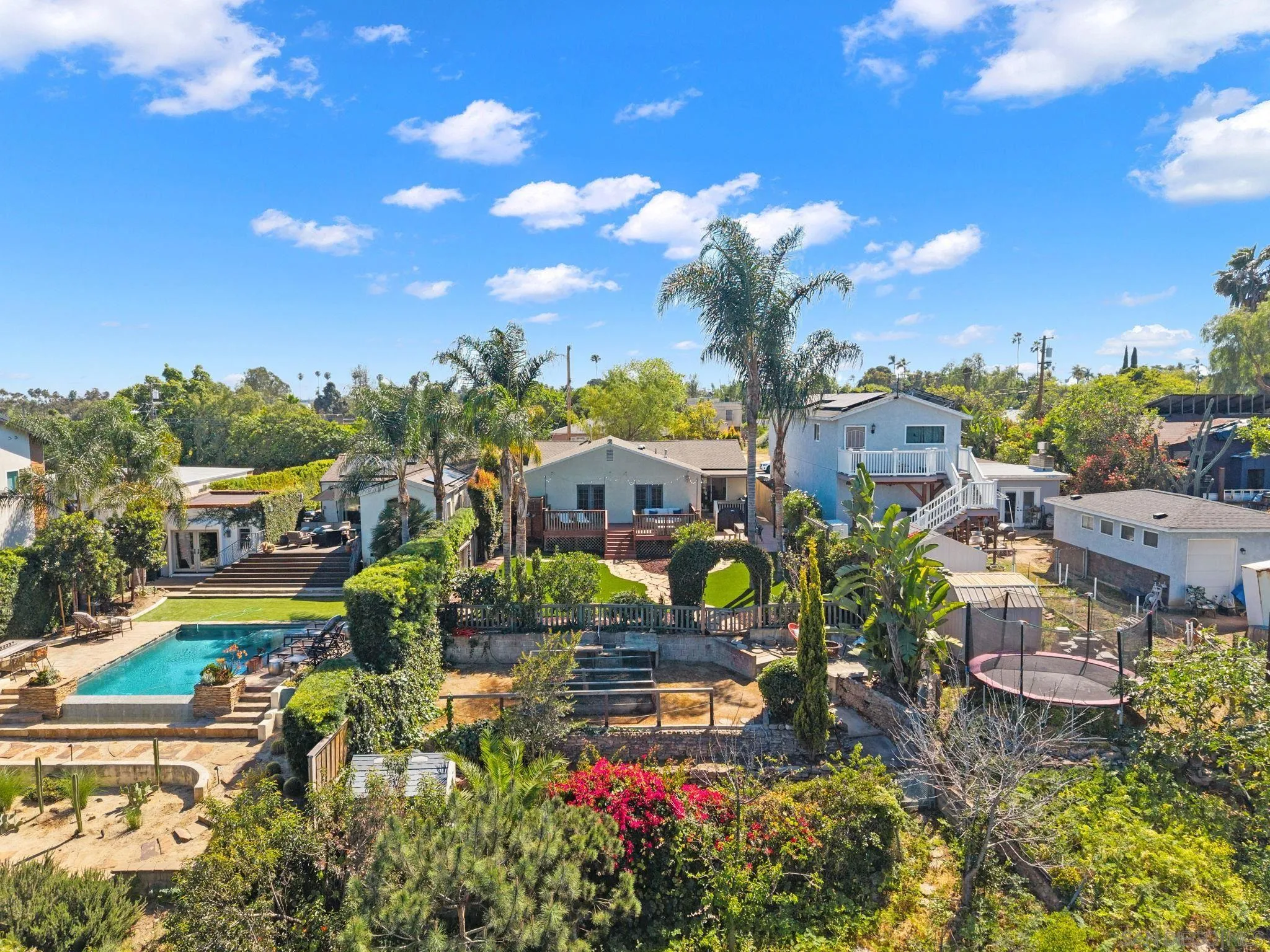 Tucked away on one of Normal Heights’ most coveted streets, this exceptional canyon property offers a rare combination of privacy, scale, and sweeping views on over a quarter acre. Set above the canyon, the home captures a true sense of space and serenity—something seldom found in this central, walkable neighborhood. Inside, the single-level layout is designed for effortless living, with an open-concept floor plan that seamlessly connects the kitchen, dining, and living areas. The beautifully updated kitchen features clean lines, ample cabinetry, stainless steel appliances, designer lighting, and a generous breakfast bar that flows naturally into the main living space—ideal for both everyday living and entertaining. The layout lives larger than its footprint, with a natural flow that feels both open and inviting. Natural light fills the home, while large French doors frame picturesque greenery and canyon vistas beyond. The indoor-outdoor connection continues as you step out to an expansive backyard retreat, where lush landscaping, mature trees, a view deck, and multiple seating areas create a private setting to relax, host, and take in the views. The elevated positioning of the lot enhances both privacy and the overall sense of retreat. The property’s oversized lot offers endless potential—whether it’s expanding the home, adding an ADU, or creating a resort-style outdoor experience. All of this, just moments from the best of Adams Avenue—local dining, coffee shops, and neighborhood charm—while still feeling worlds away.
