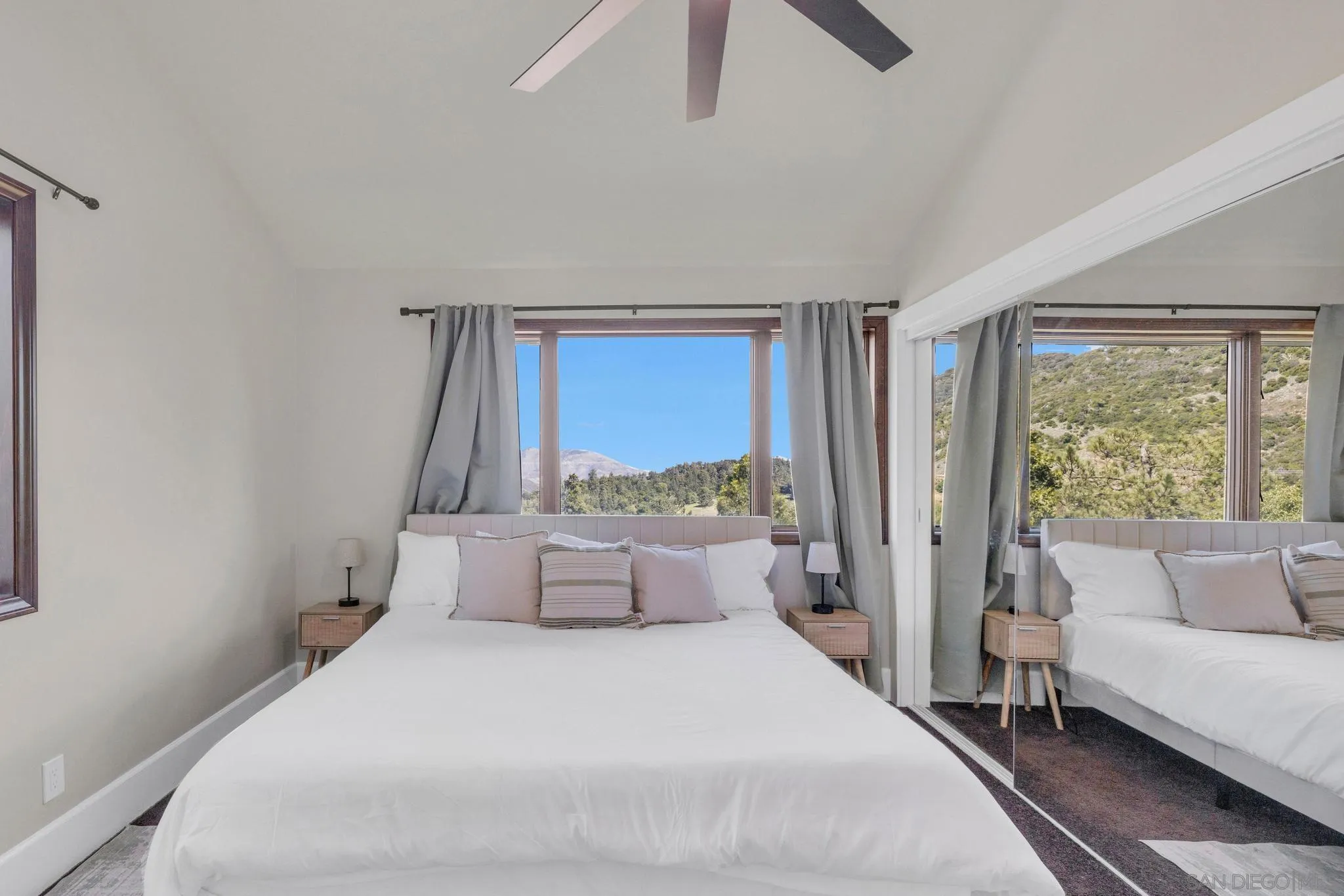 Exceptionally remodeled luxury Wynola estate — a rare find near Historic Julian. This 4,150 SQFT home on 2.3 acres offers 4 beds, 4 baths, and an ideal floorplan for mountain living, entertaining, or high-earning short-term rental (Airbnb/VRBO). The spacious primary suite is a private retreat with an enclosed steam room, dedicated laundry, and granite appointments. The gourmet kitchen features a 48" Dacor range with double convection oven and a 42" Thermador commercial refrigerator, opening to sunlit living and dining rooms with views of the Volcan Mountain range. The upper level includes 3 bedrooms, 2 baths, a loft, and a second laundry room. Thoughtful high-end upgrades include concrete siding, new roof, new multi-zone HVAC, new electrical, and engineered hardwood flooring throughout — essentially turnkey. Located within walking distance of Julian’s premier wineries and tasting rooms, this property combines sophisticated finishes, commanding size, and an unbeatable Wynola location. Perfect as a primary residence, vacation home, or lucrative short-term rental.