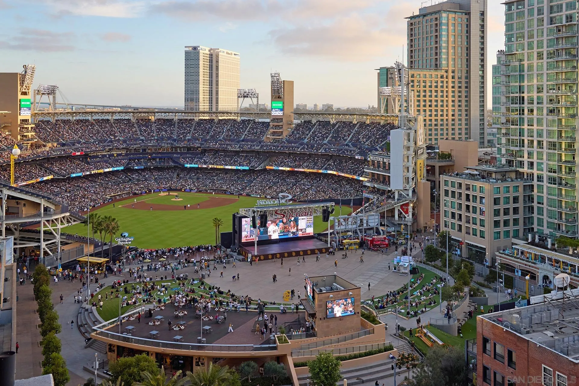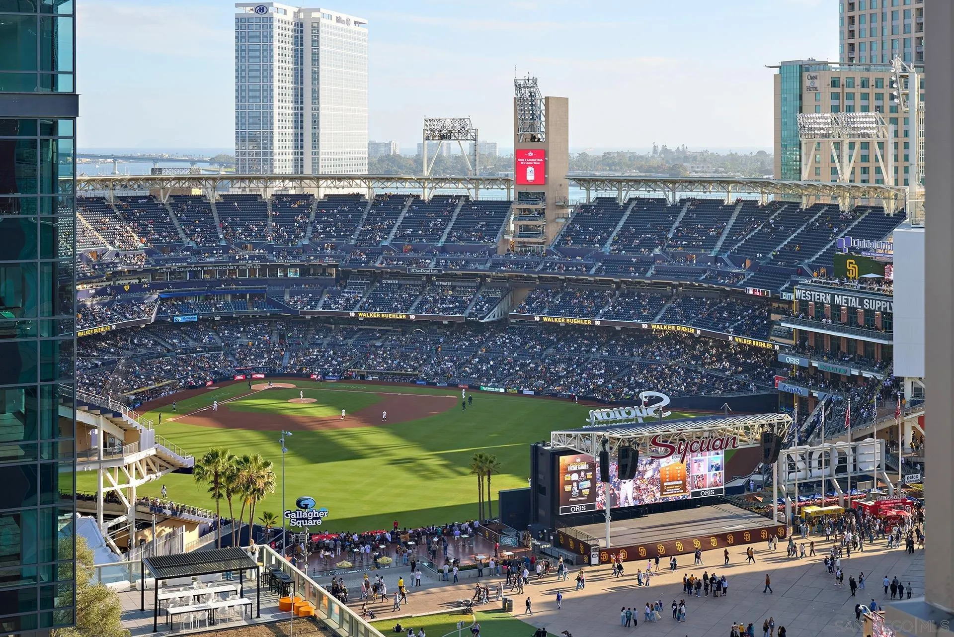 Batter Up! Step into urban luxury on the 13th floor of Diamond Terrace, offering breathtaking views of Petco Park and Gallagher Square from your private balcony—perfect for catching games, concerts, or stunning sunsets. This sleekly remodeled home features modern finishes, high ceilings, in-unit laundry, gated assigned parking, and spacious storage locker. Exclusive access to the rooftop terrace with BBQ, dining areas, fitness center and lounge, all just steps from downtown’s vibrant dining and entertainment scene.