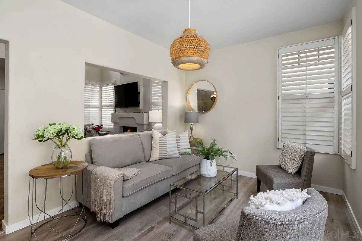 Experience the best of Carmel Valley living just minutes from the beaches of Del Mar. This beautifully updated 3-bedroom, 2.5-bath townhome in the highly sought-after Château Village community offers an ideal blend of comfort, style, and location. The light-filled two-story floor plan features soaring vaulted ceilings, abundant natural light, and luxury vinyl plank flooring throughout. The remodeled kitchen showcases sleek countertops, shaker cabinetry, stainless steel appliances, and recessed lighting, seamlessly opening to the living and dining areas—perfect for both everyday living and entertaining. Double doors lead to a private patio, creating a peaceful outdoor retreat filled with warm morning sunshine. The spacious primary suite offers a relaxing escape with a walk-in closet and an updated bathroom featuring modern finishes. Two additional bedrooms provide flexibility for family, guests, or a home office. Residents enjoy resort-style amenities including a pool, spa, tennis courts, and fitness center. Ideally located near top-rated schools, parks, scenic trails, shopping, and dining, this home offers exceptional convenience in one of San Diego’s most desirable neighborhoods.