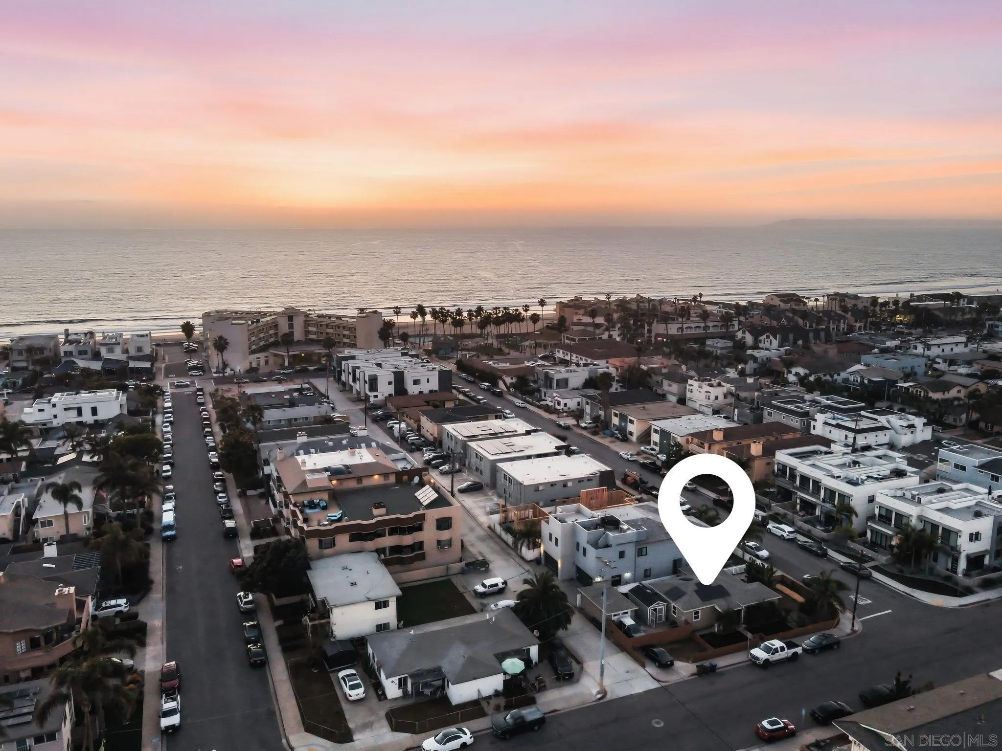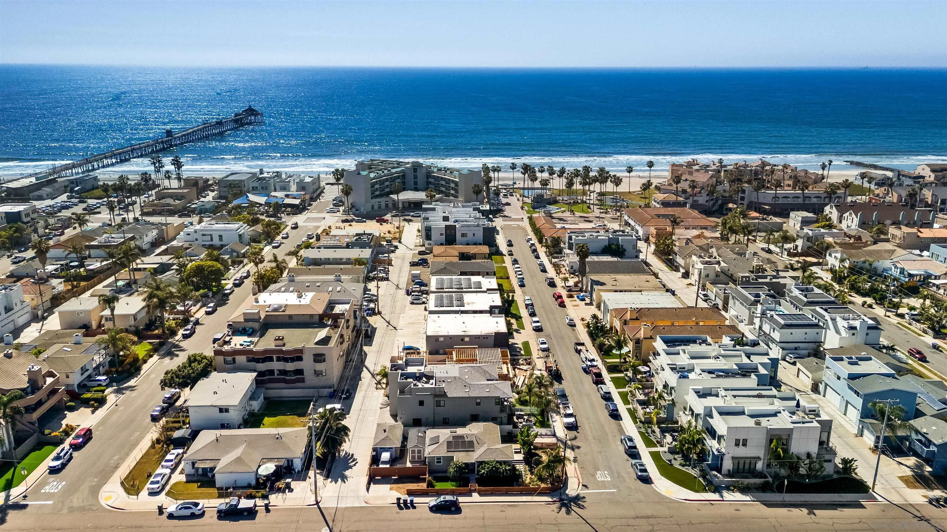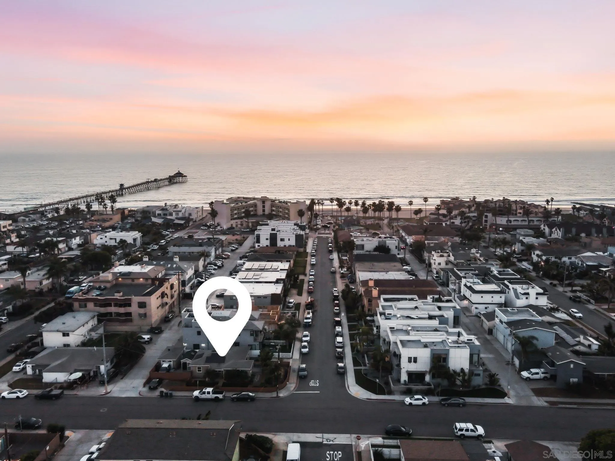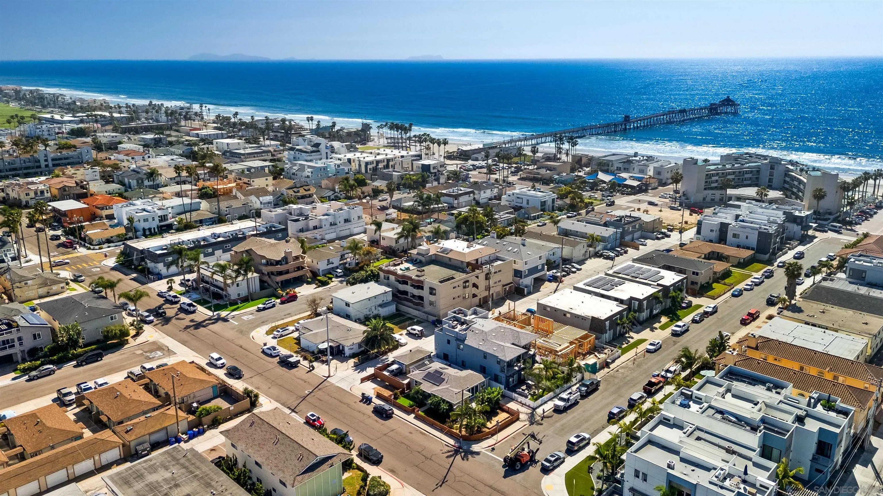 One block from the sand. Ocean views. Income-producing. Positioned just one block from the ocean in the heart of Imperial Beach, this exceptional property offers a rare blend of lifestyle and versatility. A thoughtfully designed 3-bedroom, 2-bathroom main residence paired with a detached converted studio creates an ideal setup for income generation, multigenerational living, or a private guest retreat, just steps from the coastline. Set on an expansive .11-acre lot, the home is surrounded by curated outdoor spaces designed for both privacy and ease. Lush greenery frames the west-facing patio, creating a natural buffer from the street while opening to ocean views and golden sunset skies. The outdoor experience is elevated with low-maintenance turf, garden beds, and mature fruit trees including orange, lemon, lime, and avocado, bringing a sense of grounded coastal living to the home. Inside, the remodeled kitchen offers generous cabinetry and flows seamlessly into the main living areas and out to the backyard, creating a natural indoor-outdoor connection. The layout is both functional and inviting, designed for everyday living as well as entertaining. Additional features include paid off solar (NEM2, strong value add), an outdoor shower for post-surf days, a dedicated laundry room with storage, and a fully fenced wraparound yard. Parking is abundant and flexible, with multiple driveway spaces on both sides of the property, ideal for you, guests, or tenants.
