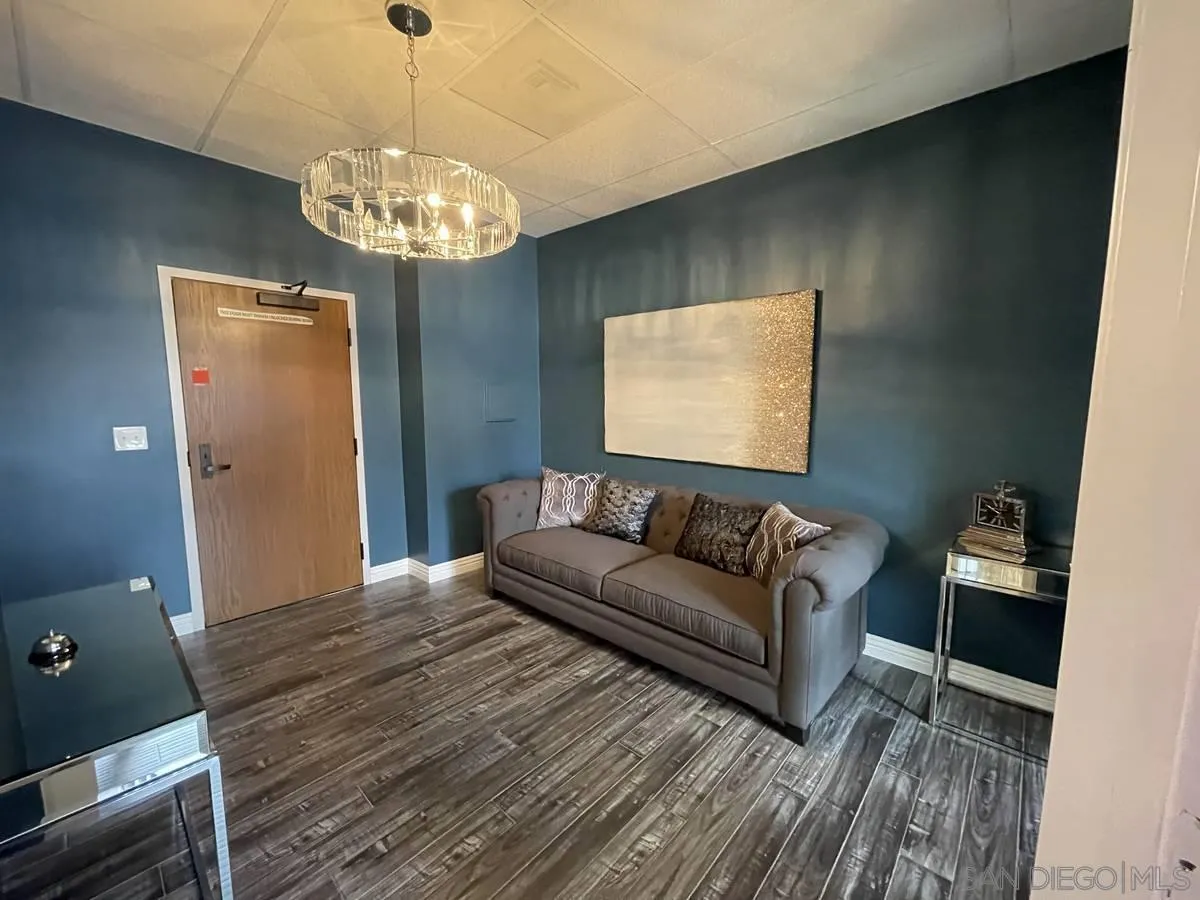 1317 Sqft. Beautifully remodeled office condo. This commercial condo features a private lobby guest area, 5 spacious office rooms, an extra large conference room (currently used as a large office suite), a utility closet/copy room, a brand new kitchen, and new hvac installed in 2022. This commercial office condo has been elegantly remodeled with beautiful charcoal grey wood design plank flooring, crystal chandelier in the lobby, large drum pendant lighting in hallway, elegant moulding accents in hallway, premium designed carpet flooring in the conference room, and an executive style barn door entrance to the remodeled kitchen. Remodeled kitchen features beautiful midnight blue wood cabinetry with oversized gold handles, farm style porcelain sink, and shiny red retro style refrigerator and microwave. Why continue to pay rent to run your business when you can enjoy owning the real estate your business runs in!