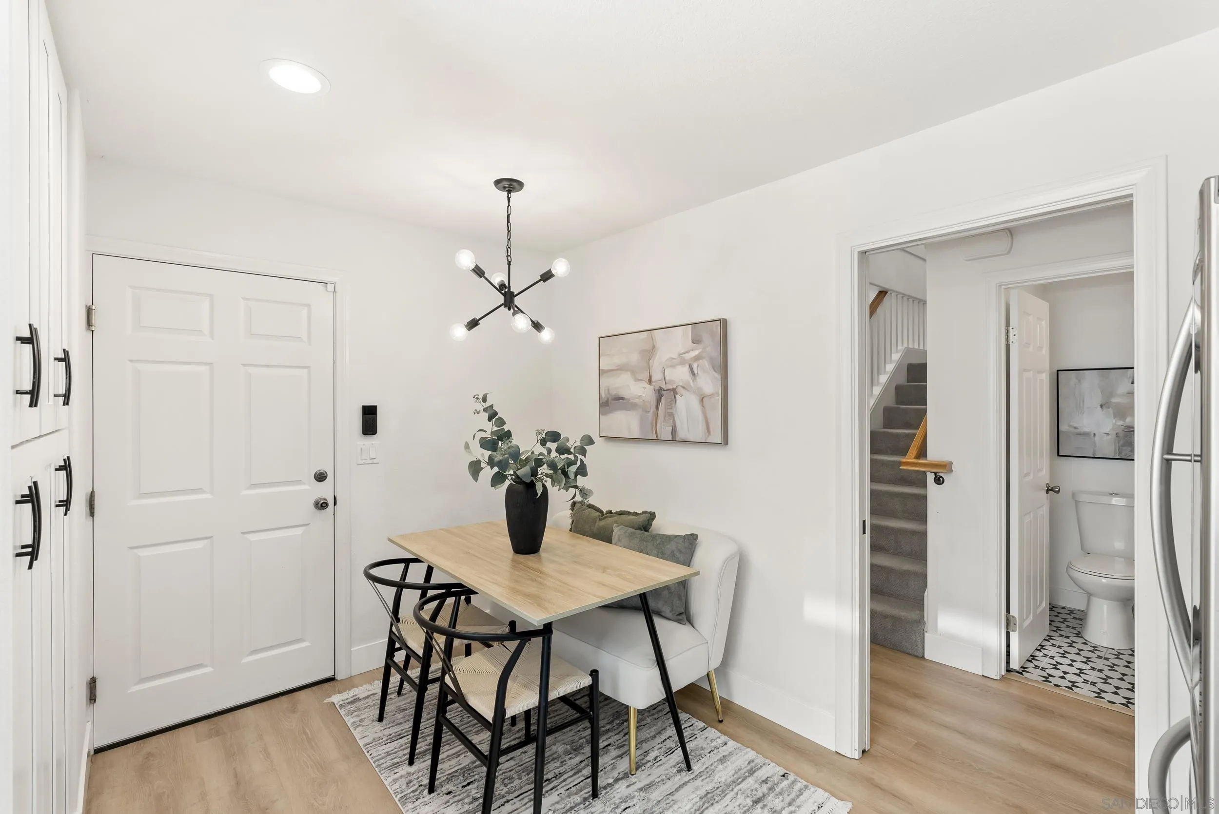 Turn-key Imperial Beach home in a prime location, just a few blocks from the beach, estuary, Veterans Park, and the library. Built in 2009, this property offers the advantage of newer construction with upgraded systems, providing added efficiency and reliability compared to many homes in the area. Thoughtfully updated throughout, the home features new luxury vinyl flooring, fresh carpets upstairs, an open-concept layout, and a fully renovated primary suite on the entry level. The primary includes a spacious walk-in closet, oversized shower, and direct access to a private patio. The layout creates a natural flow between the living area and outdoor spaces, ideal for indoor-outdoor use and entertaining. The kitchen and bathrooms showcase marble finishes, designer fixtures, and stainless steel appliances. All bedrooms are generously sized and include walk-in closets, plus a dedicated office adds flexibility for a variety of uses. Step outside to a freshly landscaped backyard with turf and trees, designed for low-maintenance upkeep, while the manicured front yard enhances curb appeal. An upstairs balcony offers an additional space to relax and enjoy the coastal setting. Complete with a two-car garage and A/C, this move-in ready home offers a rare combination of size, condition, and location that is not often available in this pocket of Imperial Beach.