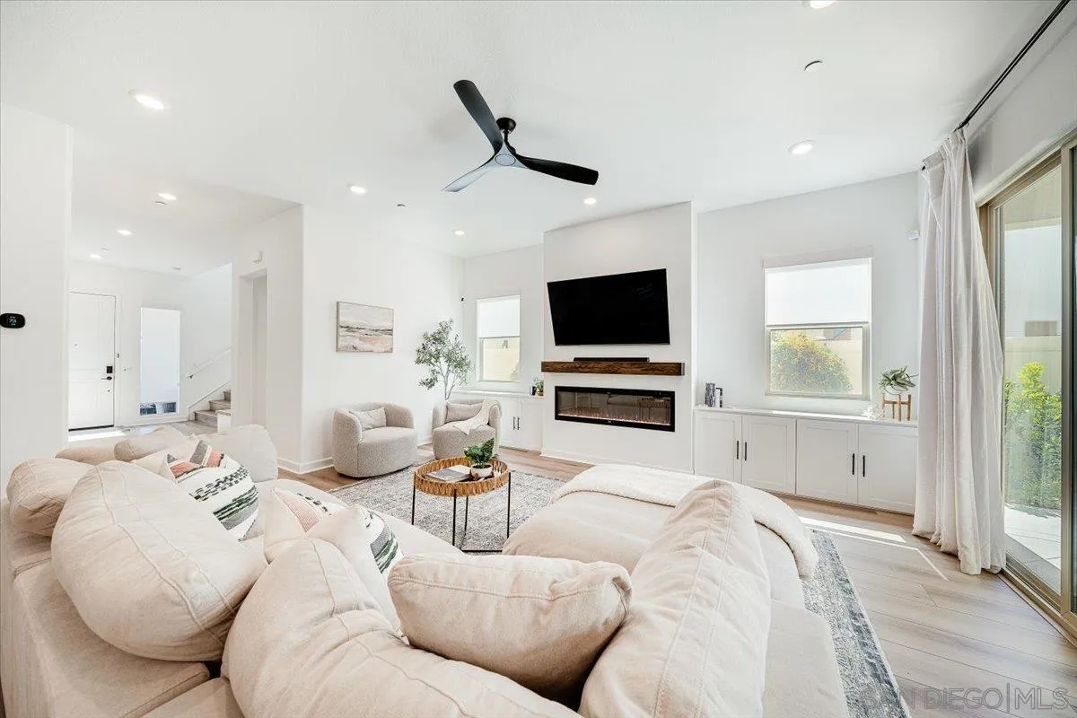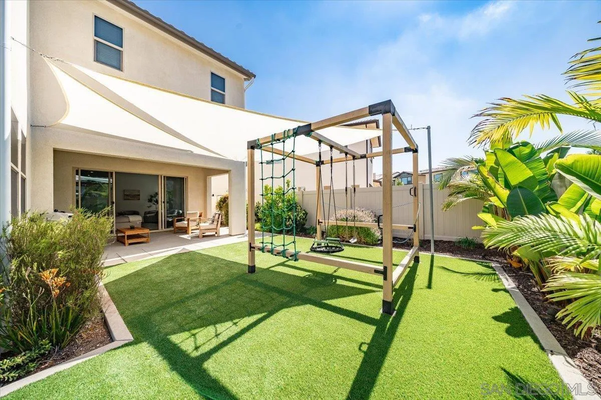 Welcome to luxury living in the premier enclave of Parkside @ Mission Circle in San Marcos, where modern design meets everyday comfort in an exclusive newer neighborhood. This beautifully crafted 5-bedroom, 4.5-bath stunner elevates style at every turn, featuring 10-foot ceilings and stunning designer finishes throughout. Wide-plank designer flooring sets a sophisticated tone, while custom window blinds add a tailored, upscale touch to every room. At the heart of the home, the chef-inspired kitchen offers abundant counter space and exceptional cabinet storage, designed to keep everything organized while still feeling open, bright, and inviting. Whether you’re hosting gatherings or enjoying a quiet night in, this space effortlessly blends function and elegance. The primary suite is a true retreat—generously sized and thoughtfully designed for relaxation. The spa-like primary bathroom invites you to unwind with luxury finishes, while the expansive walk-in closet is a showstopper in itself, featuring a custom-installed closet system and more storage than you could dream of. Additional bedrooms are well-appointed, offering flexibility for guests, family, home offices, or creative spaces. Every corner of this home has been designed with comfort and livability in mind. Step outside to a beautifully curated backyard featuring custom landscape design, easy maintenance greenery, and a built-in play structure perfect for endless fun and imagination. Garage has soaring ceilings w/ built-in storage cabinets & over head storage. Owned SOLAR, Two 220 outlets in garage for EV's. Upgrades!