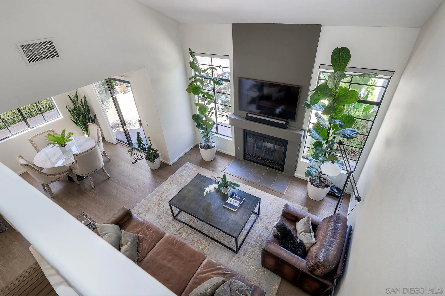 Upscale living in the Golden Triangle! This home greets you with double-height ceilings and abundant natural light, an open floorplan, and sophisticated designer touches, creating a comfortable, upscale living environment that blends comfort, style and functionality. The kitchen features new cabinetry and stainless steel KitchenAid appliances, Alpine Valley granite countertops, oversized apron-front sink and tile-to-ceiling backsplash. Wood floors, stunning new bathroom remodel with Villa Porcini polished porcelain tile, and fresh designer paint complete this exceptional offering. Located in the highly desirable Golden Triangle, this rarely available detached residence in the beautifully maintained Barcelona community is tucked away in a quiet interior location - the home backs to a greenbelt, providing a sense of privacy and a serene backdrop for the backyard patio and garden retreat. Residents enjoy access to lifestyle amenities including a pool, spa, walking trails, and nearby La Jolla Colony Park.