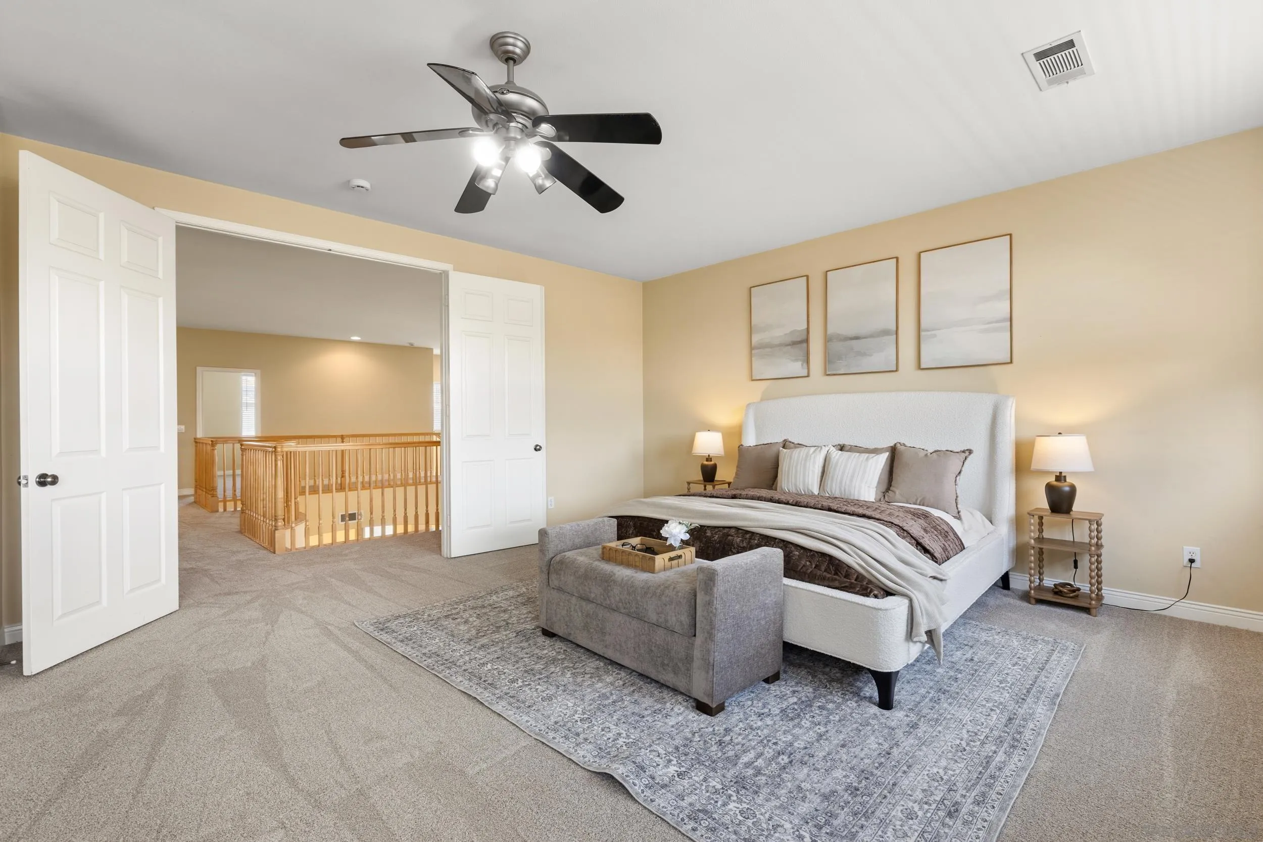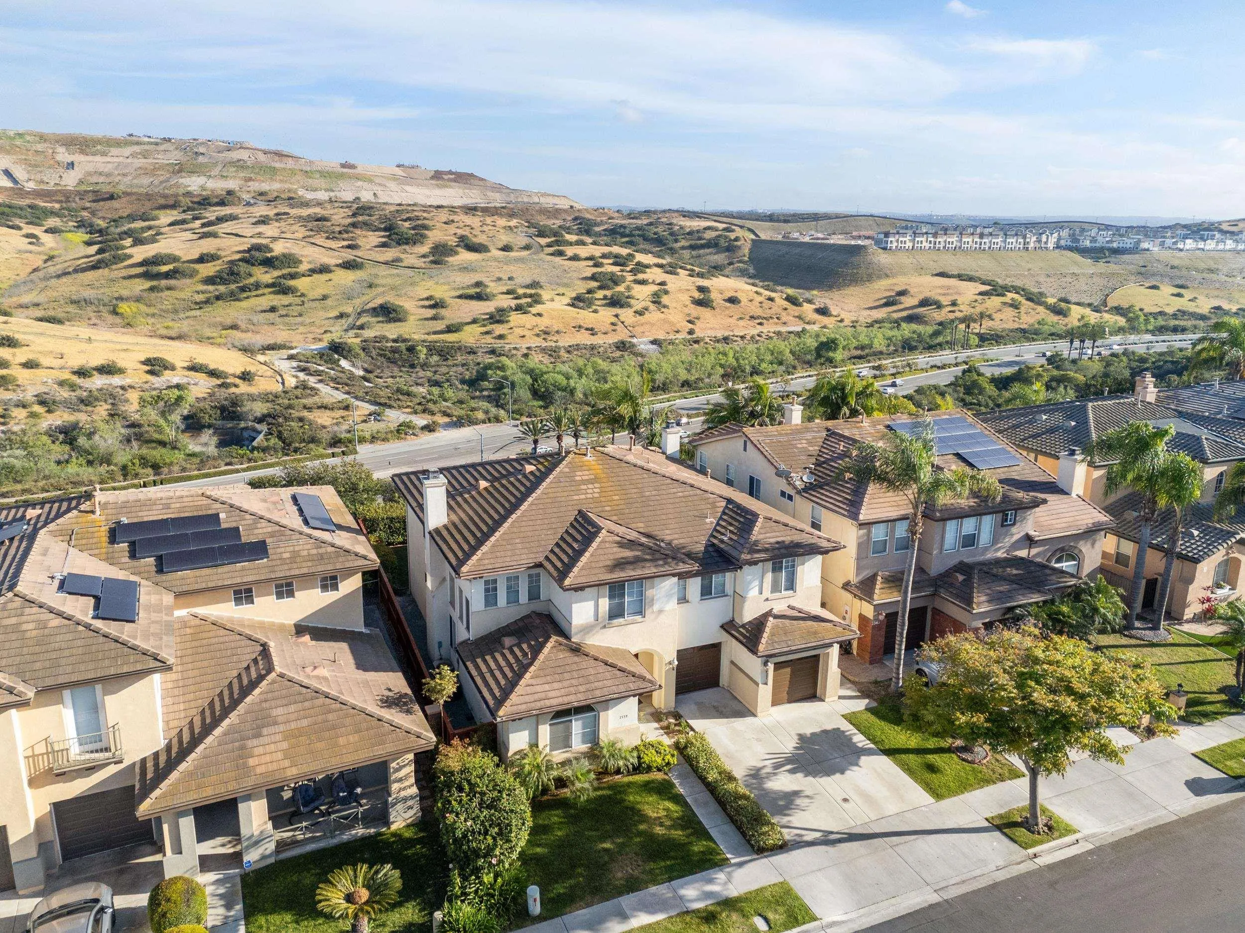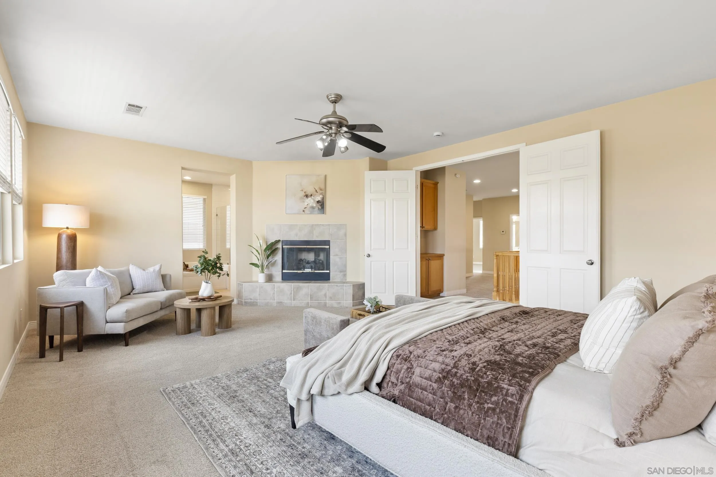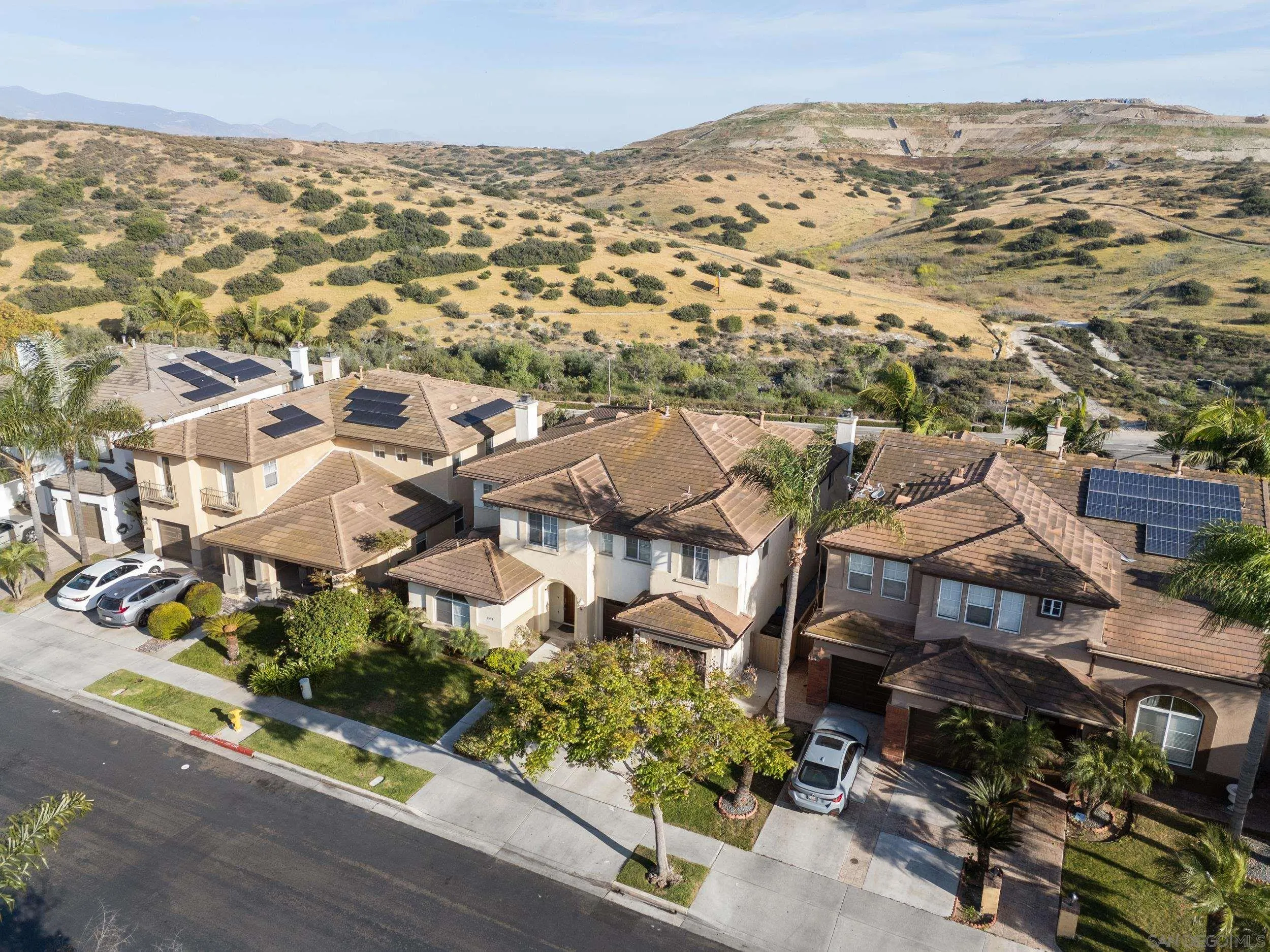 Meticulously maintained home in desirable Otay Ranch with beautiful hill views. Featuring brand new carpet, this home offers a bright and functional layout with soaring two-story ceilings in the living room and a cozy fireplace that creates an inviting first impression. Generously sized kitchen featuring a large center island, ample cabinetry, and double ovens, flowing effortlessly into the family room for an ideal open-concept layout.The spacious primary suite is a true retreat with its own fireplace, scenic views, large walk-in closet, dual vanities, and a separate tub and shower. A full bedroom and bathroom on the main level provide flexibility for guests, multi-generational living or a home office. Enjoy both a formal living room and a separate family room—also with a fireplace—perfect for everyday living and entertaining. Additional highlights include an indoor laundry room and a 3-car garage with direct access. Pride of ownership is evident throughout this well-cared-for home, ideally situated in a sought-after neighborhood close to parks, schools, and amenities. Community pool at the Heritage Hills Swim Club.