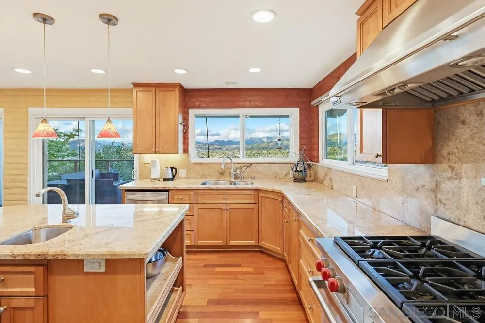 Nestled atop this mountain in the highly desirable Hillsdale community, this stunning home offers breathtaking mountain and city views. Featuring 5 bedrooms, 2 1/2 baths, with 2,279sf and lot size of 51,836sf. It also features an attached 2-car garage with dual entry double-car garage doors. A 2-story cathedral ceiling living room opens to the dining room and kitchen. This open concept remodeled kitchen with granite countertops, stainless 6 burner Wolf range, Wolf hood, wall oven and refrigerator. Spacious yard for any landscape ideas, extended driveway for parking and a secondary backyard parking area via 2nd garage door. A newly rebuilt low-maintenance Trex decking, perfect for lounging and dining entertainment. New solar system to be paid off by seller at close of escrow. Two water heaters and an oversized tall detached shed. Multi-tier retaining wall and paver patio built. Year round fruit on this large lot with five mature Fuerte avocado trees that produce hundreds of avocados yearly, two different types of orange trees, lemon tree and an apricot tree.