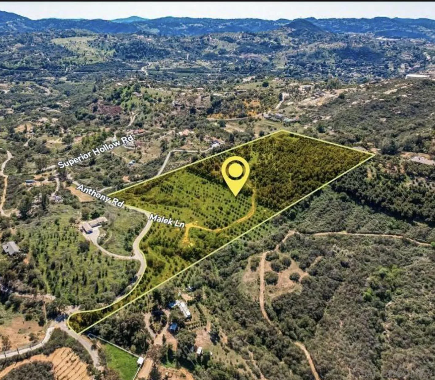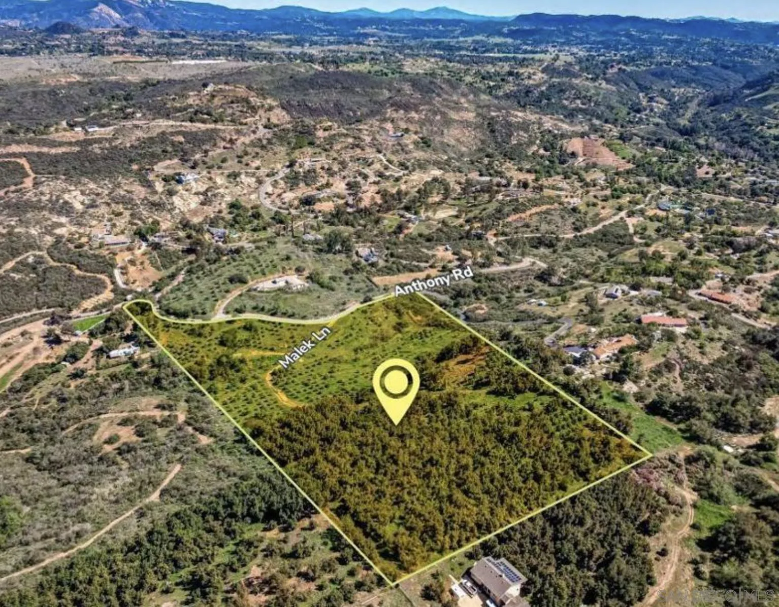 Three contiguous parcels offered together totaling 15.89 acres in Valley Center. One of San Diego County’s top avocado-growing regions. The property features over 1,100 mature avocado trees and 150 navel orange trees currently in production. Each parcel is entitled for a single-family residence, providing the option to build up to three homes on the estate. Water is covered two ways, a private well plus access to city water. Electricity is already on-site. Parcel 1 4.47 acres @12809 Malek ln, Parcel 2 6.30 acres @Anthony Road, Parcel 3 5.12 acres @12848 Malek Lane. Enjoy panoramic valley views throughout the property. A turnkey opportunity for farmers, investors, or buyers looking to build a multi-home compound in a premier North San Diego County location.