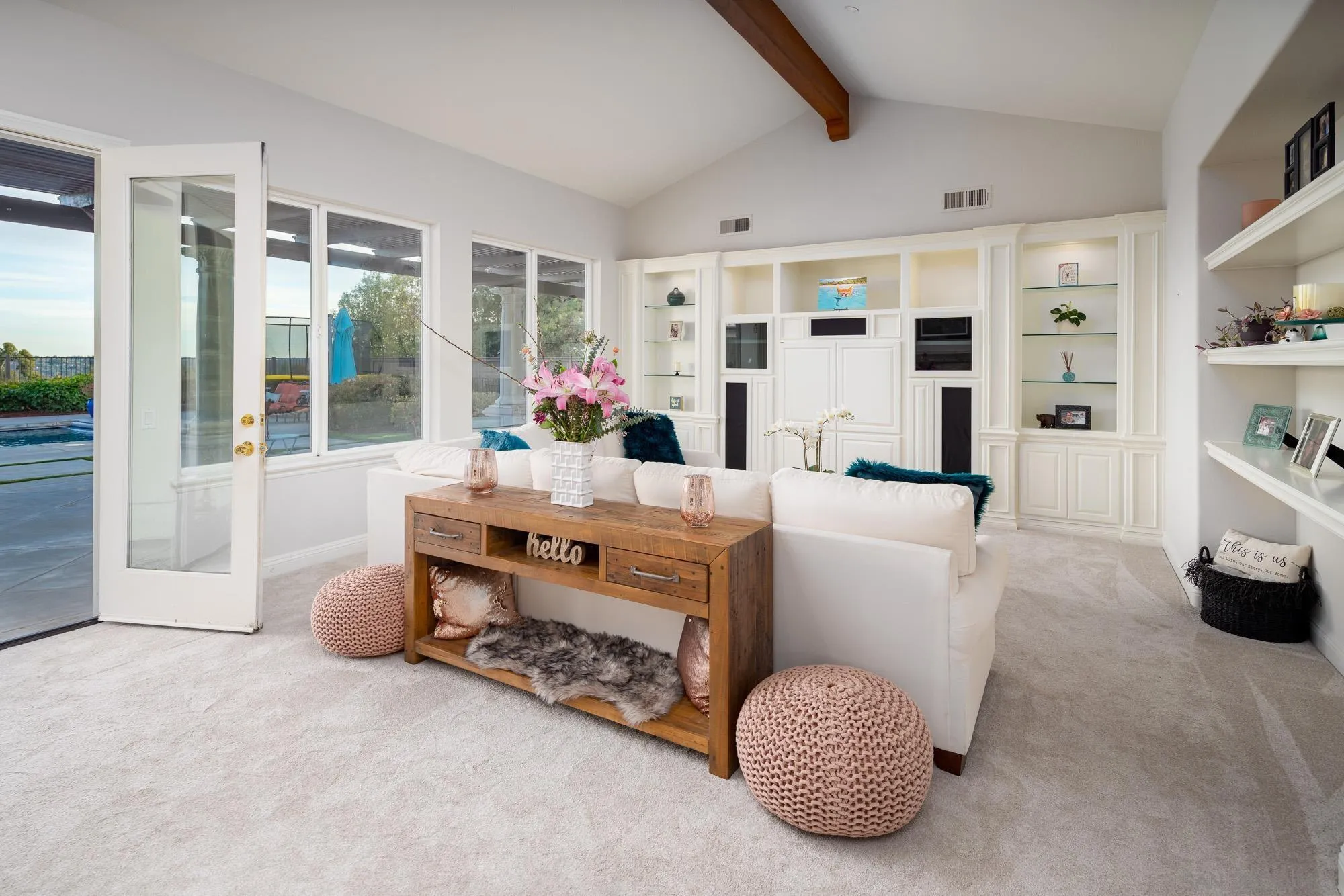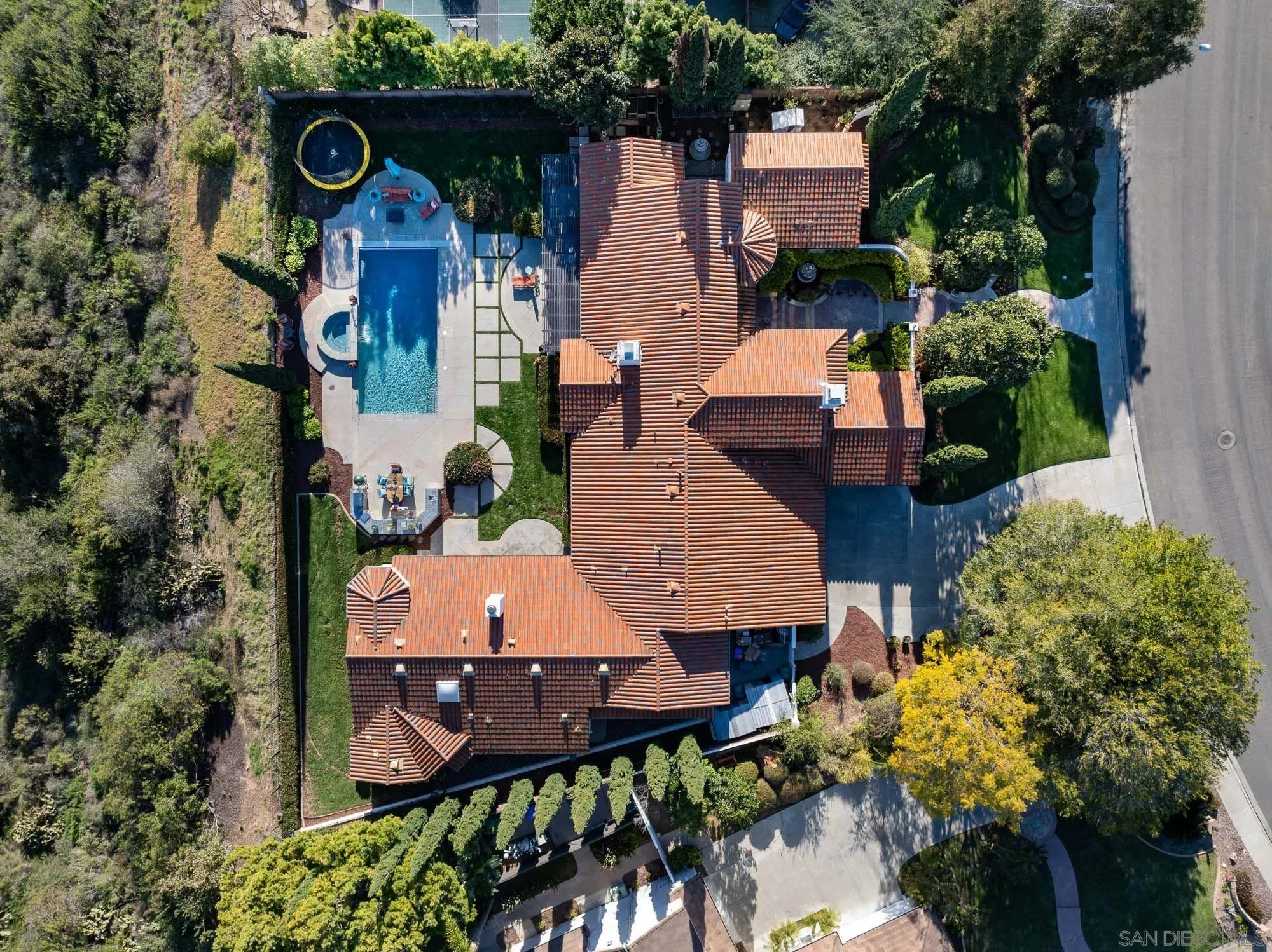 Rare Hilltop Compound in The Ranch at Carlsbad Featuring Two Fully Independent Homes! Opportunities like this rarely come to market in The Ranch at Carlsbad. This private single-level estate offers two fully independent residences plus a separate pool and game pavilion, creating a flexible layout ideal for multi-generational living, extended family, guests, or private work-from-home space. The approximately 3,800 sq ft main residence features three bedrooms and spacious living areas designed for comfortable everyday living and entertaining. The 1,400 sq ft second residence includes two bedrooms, a full kitchen with high-end appliances, laundry, independent climate control, and a private street entrance. Wider doorways throughout the second residence provide enhanced accessibility. At the center of the property is a 900 sq ft game and pool pavilion with its own entrance, bathroom, bar-style kitchenette, and independent climate control, allowing the space to function as an entertainment pavilion, third guest suite, or additional living quarters. The hacienda-style architecture creates exceptional privacy around the pool, California Room, and outdoor entertaining areas, while the south-facing hilltop orientation captures beautiful natural light and scenic sunrise and sunset views. Additional highlights include a custom 1,000-bottle temperature-controlled wine cellar and tasting room. Located in The Ranch at Carlsbad, residents enjoy scenic walking trails and walking distance to top-rated schoolsincluding Olivenhain Pioneer Elementary, Diegueño Middle School, and La Costa