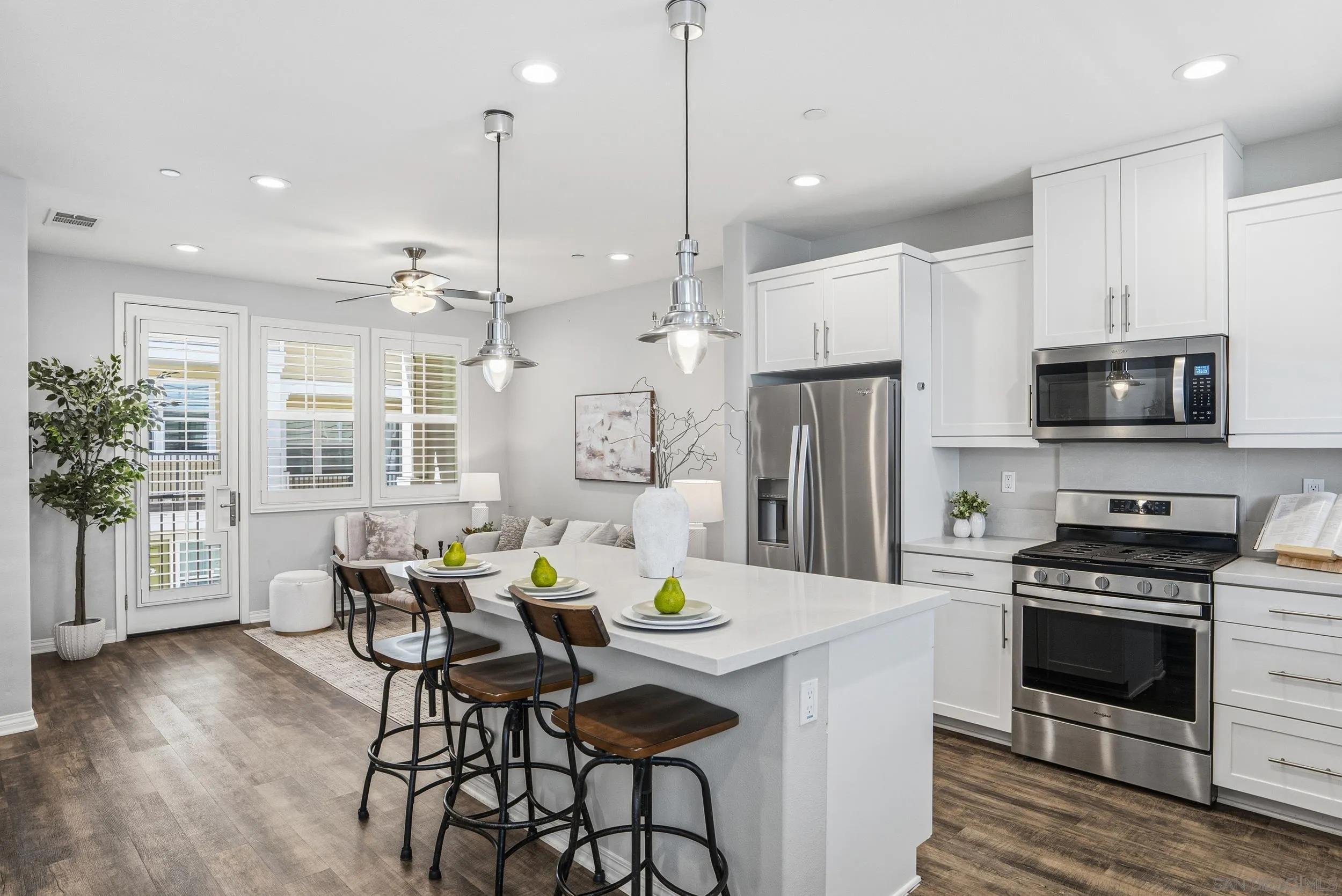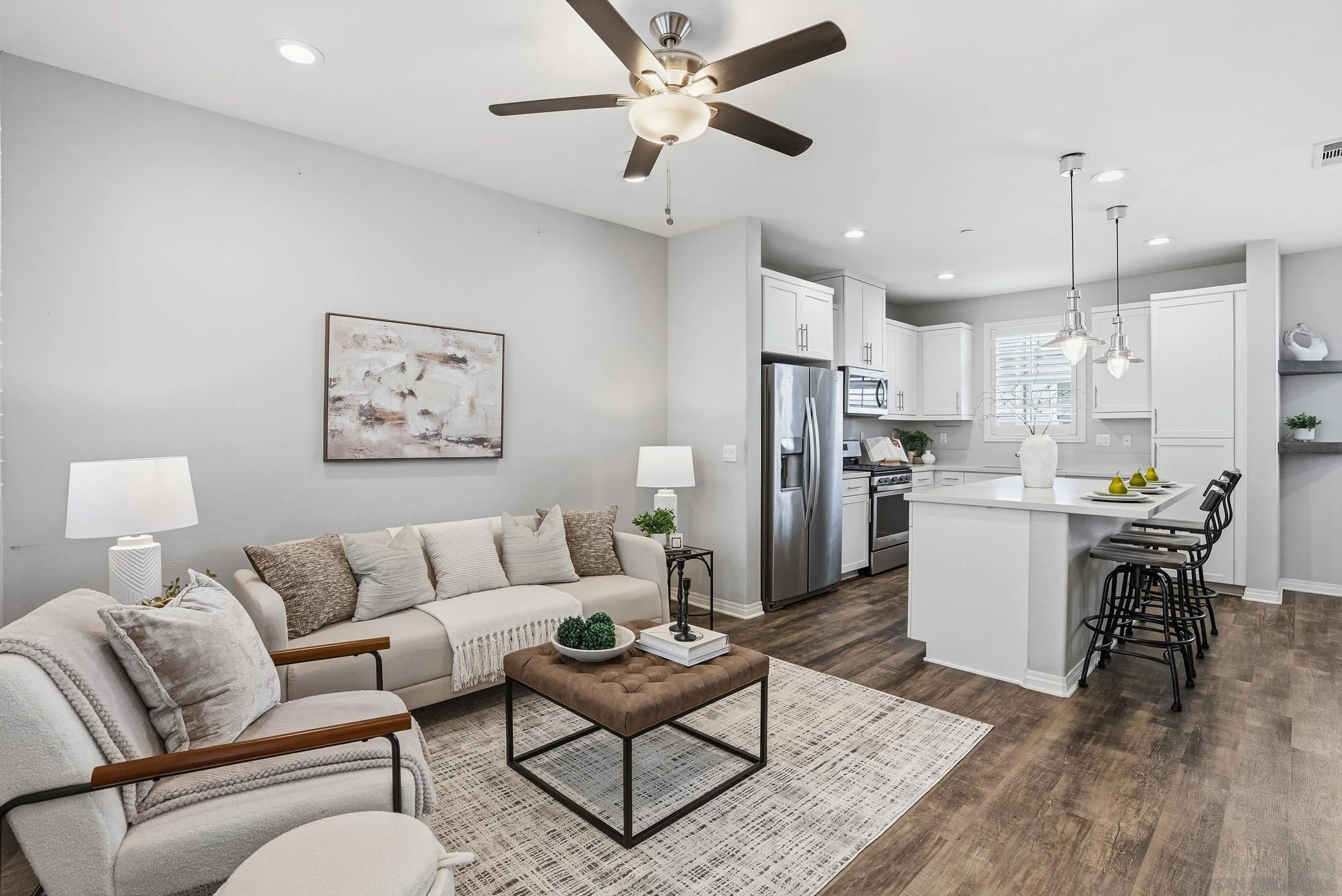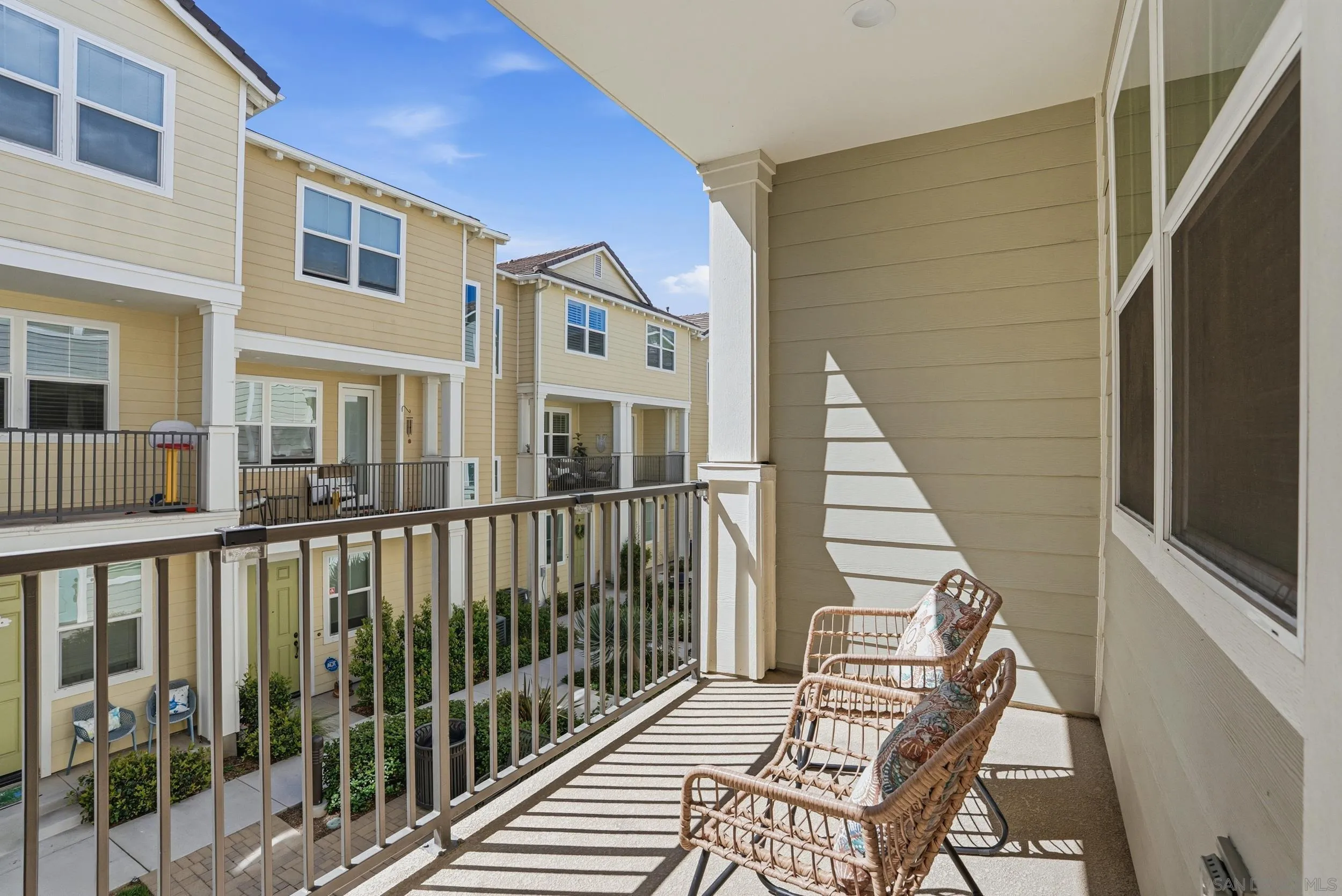 VA APPROVED! Tucked away in the sought-after Bayside Landing community, this newer-built (2018) townhome offers the perfect blend of comfort, style, and convenience. Featuring one of the few desirable two-bedroom floor-plans with a true open-concept layout and ample island, the kitchen is designed for both everyday living and easy entertaining. Upstairs, you’ll find luxury vinyl flooring throughout, along with a thoughtfully designed layout that includes laundry on the same level as the bedrooms. The spacious primary suite offers a walk-in closet and an oversized en-suite bath, creating a private retreat to unwind. The entire unit has custom built-ins and shelving throughout, including both closets, bar area, dining room and bathroom. For further convenience, the unit also has an upgraded full two car garage with storage, epoxy coating, and a tankless hot water heater. Located just steps from the Bayshore Bikeway, this home is ideal for an active coastal lifestyle, whether you’re biking into Coronado, heading toward the upcoming Gaylord Pacific Resort, cruising over to the new local Suncoast Coop, or making your way to Seacoast Avenue for dining, coffee shops, and beach days. Bayside Landing residents enjoy access to resort-style amenities including a pool, hot tub, and community BBQ areas.
