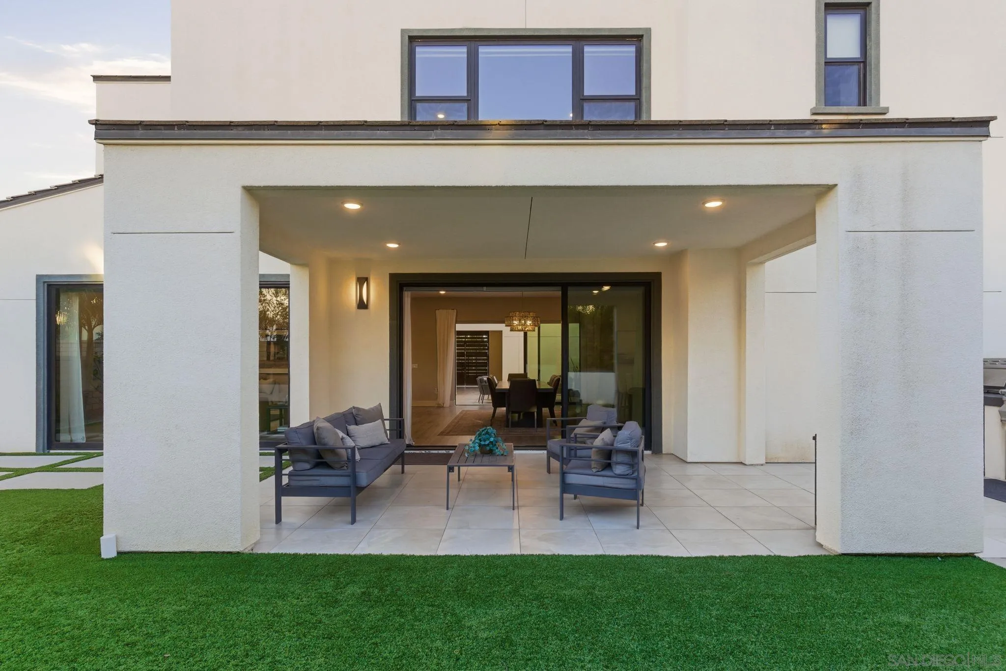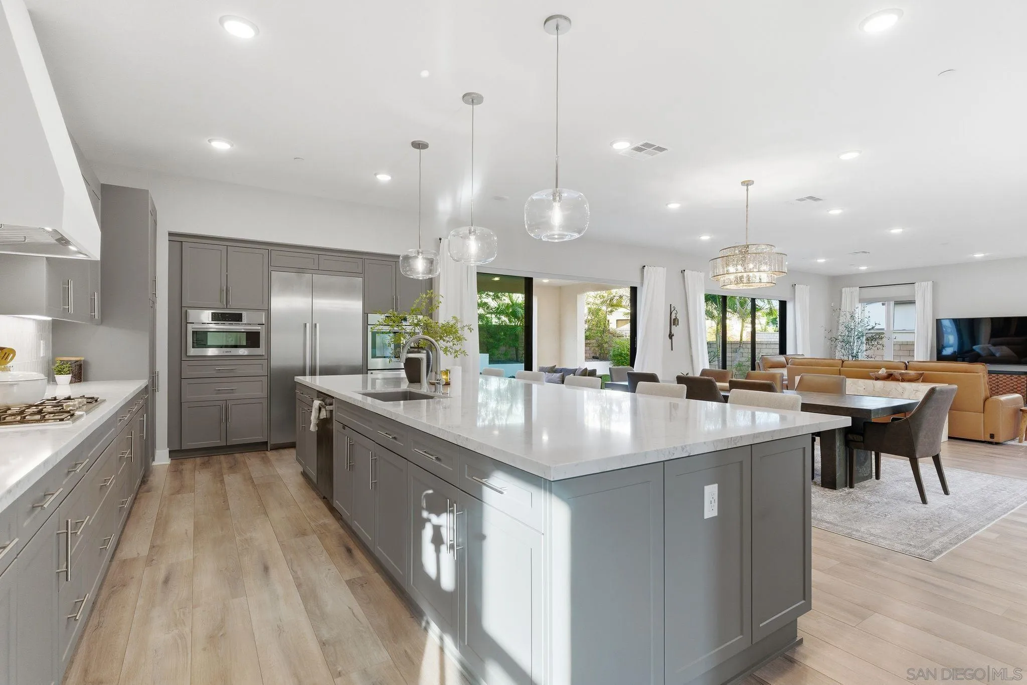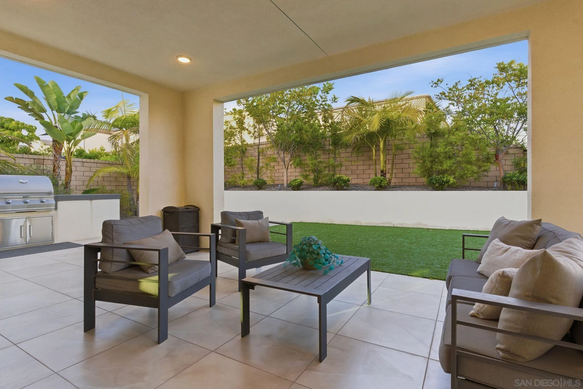 Welcome to 5328 Morning Sage Way, a meticulously crafted 2019-built luxury home in the heart of Pacific Highlands Ranch, one of San Diego's most sought-after master-planned communities. Offering 4,370 sq ft with 5 bedrooms and 5.5 baths, every inch reflects impeccable custom builder-grade finishes rarely found at this price point. Step inside to soaring ceilings, wide-plank flooring, and designer lighting that set an elevated tone from the moment you enter. The chef's kitchen is anchored by an oversized quartz island, a custom tile backsplash, premium stainless steel appliances, and a full wall of custom cabinetry, flowing effortlessly into the open-concept dining and great room. Custom La Cantina sliders span the back of the home, dissolving the boundary between indoor and outdoor living. Step outside to a covered patio with recessed lighting and a built-in BBQ, the ultimate setup for California entertaining year-round, all framed by a lush, low-maintenance artificial turf yard. The primary suite is a true retreat with spa-caliber bath finishes and a custom private sauna. Secondary bedrooms are generously sized with refined detail throughout. Perfectly positioned near top-rated schools including Canyon Crest Academy, Cathedral Catholic High School, and the prestigious Torrey Pines High School, and just minutes to the coast, shopping, dining, and major freeways. A 2-car garage and beautifully landscaped grounds complete this extraordinary offering. Luxury, lifestyle, and location, perfectly united!!