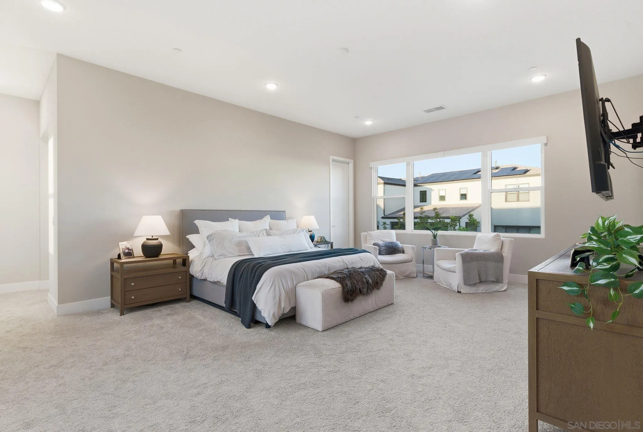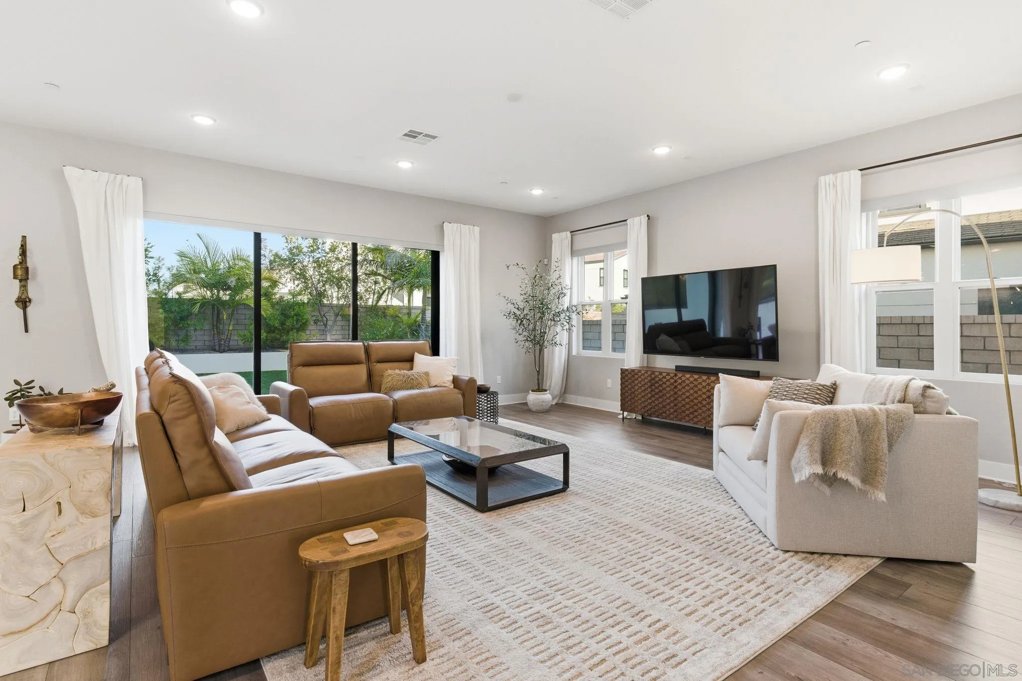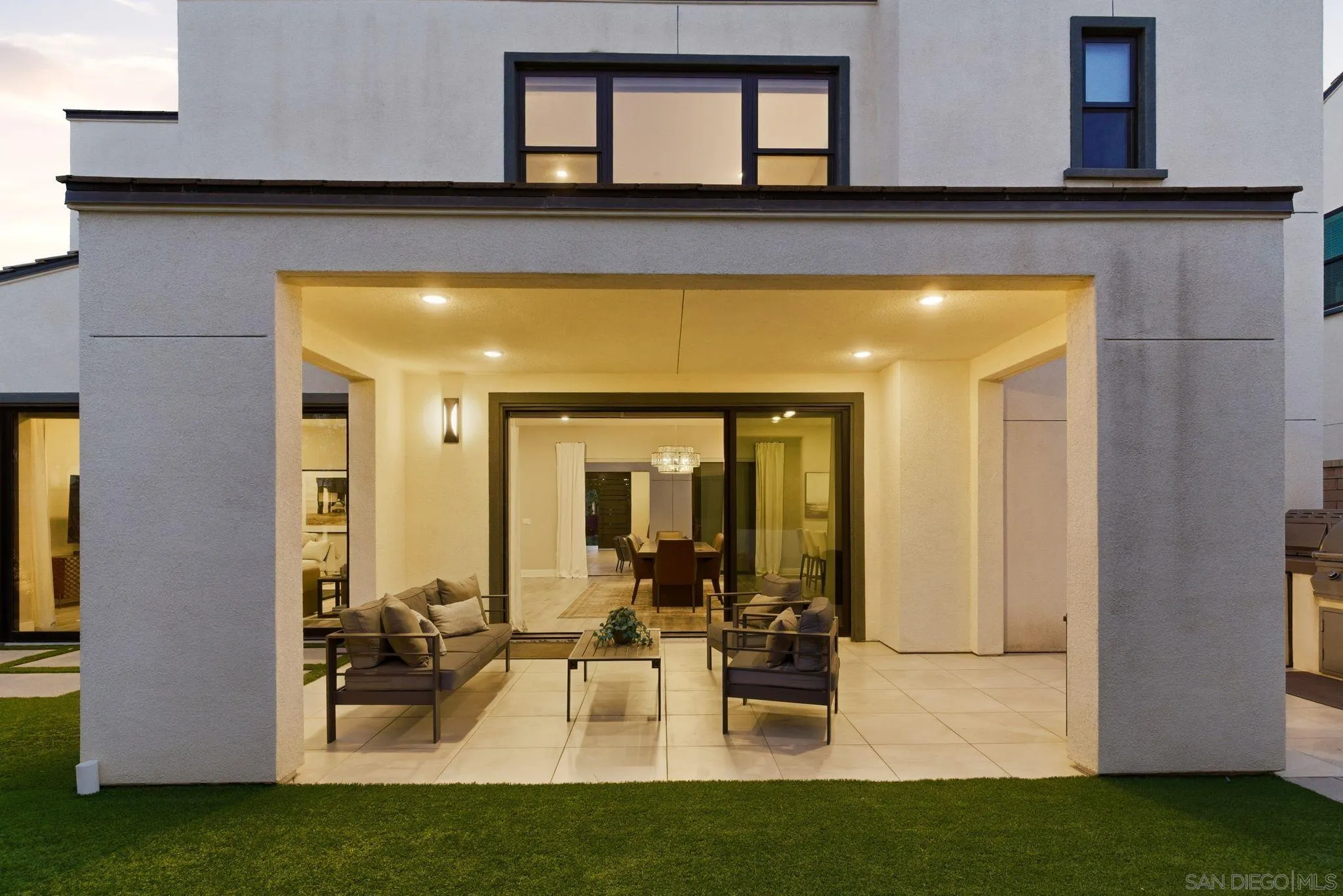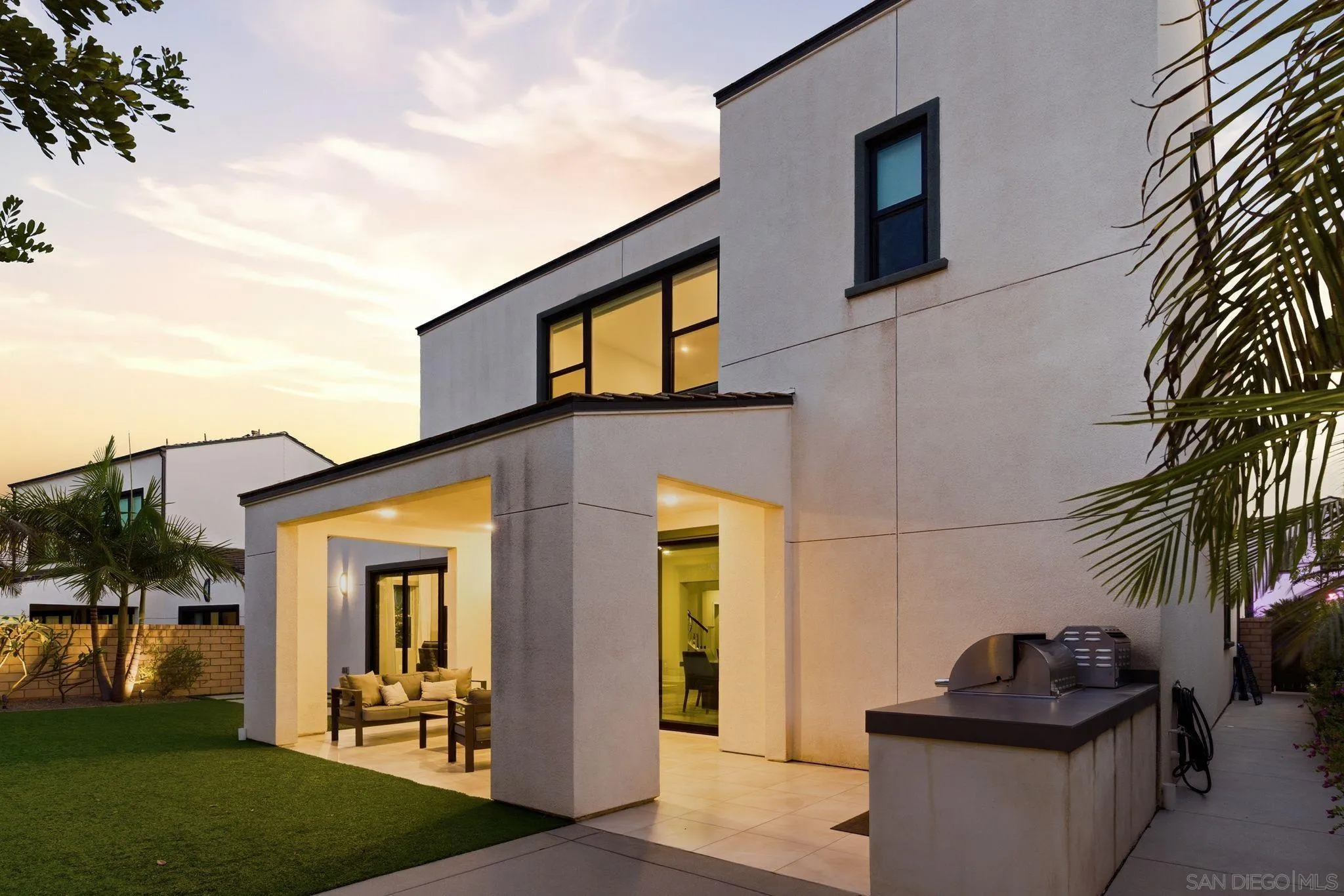 Welcome to 5328 Morning Sage Way, a meticulously crafted 2019-built luxury home in the heart of Pacific Highlands Ranch, one of San Diego's most sought-after master-planned communities. Offering 4,370 sq ft with 5 bedrooms and 5.5 baths, every inch reflects impeccable custom builder-grade finishes rarely found at this price point. Step inside to soaring ceilings, wide-plank flooring, and designer lighting that set an elevated tone from the moment you enter. The chef's kitchen is anchored by an oversized quartz island, a custom tile backsplash, premium stainless steel appliances, and a full wall of custom cabinetry, flowing effortlessly into the open-concept dining and great room. Custom La Cantina sliders span the back of the home, dissolving the boundary between indoor and outdoor living. Step outside to a covered patio with recessed lighting and a built-in BBQ, the ultimate setup for California entertaining year-round, all framed by a lush, low-maintenance artificial turf yard. The primary suite is a true retreat with spa-caliber bath finishes and a custom private sauna. Secondary bedrooms are generously sized with refined detail throughout. Perfectly positioned near top-rated schools including Canyon Crest Academy, Cathedral Catholic High School, and the prestigious Torrey Pines High School, and just minutes to the coast, shopping, dining, and major freeways. A 2-car garage and beautifully landscaped grounds complete this extraordinary offering. Luxury, lifestyle, and location, perfectly united!!