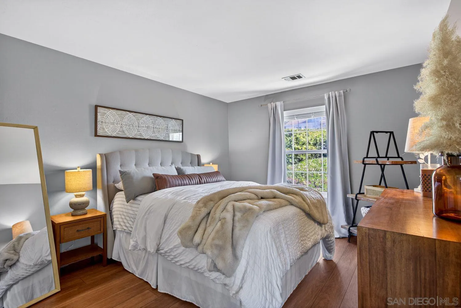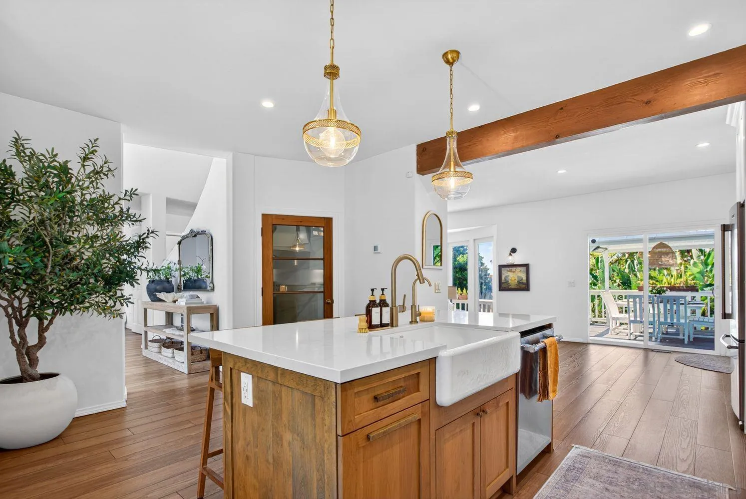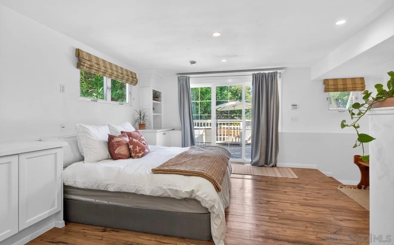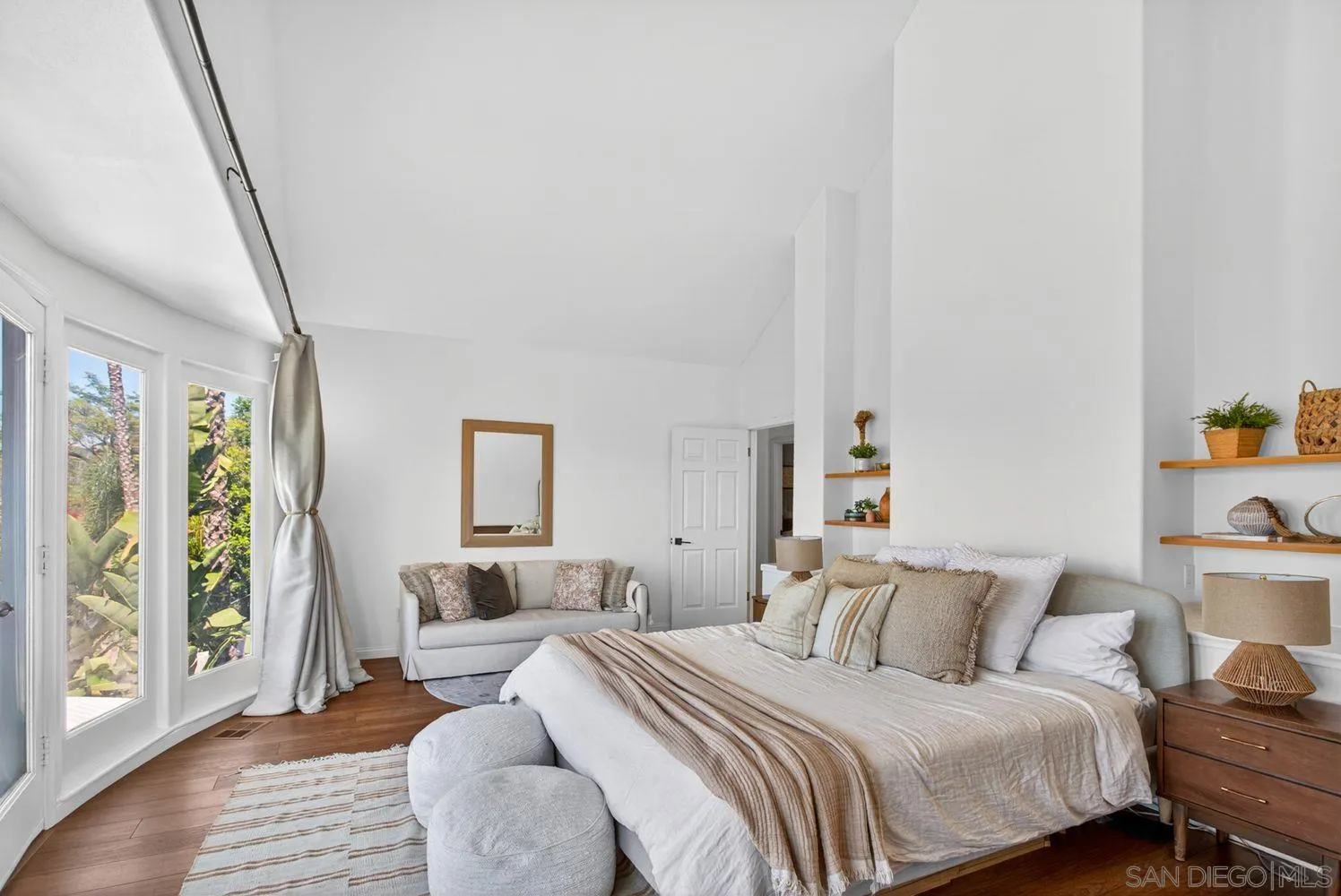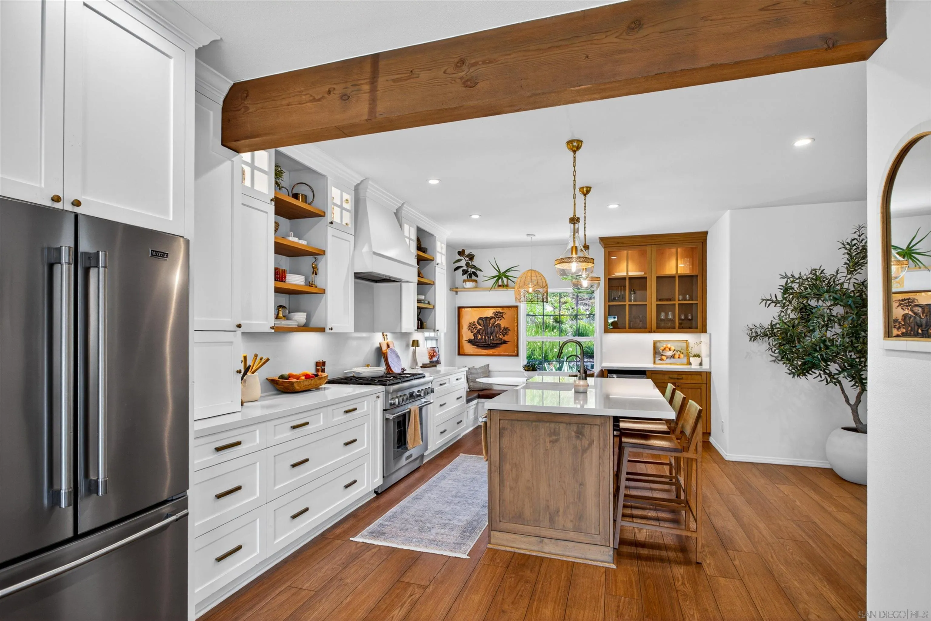 Set on an expansive half-acre lot in the heart of La Costa, this stunning custom estate offers a rare blend of design, privacy, and versatility. The home features 4 spacious bedrooms and 3 bathrooms, plus a fully permitted attached studio apartment with a private entrance, kitchenette, and full bath, ideal for guests, multi-generational living, or income potential. At the center of the home is a beautifully designed custom kitchen that flows seamlessly into the main living areas and out to the backyard, creating the perfect setting for entertaining or everyday living. Extensively updated throughout, the home boasts new flooring, fresh interior and exterior paint, new upstairs baseboards, a new garage door, refreshed bathrooms, a new security system, and lush privacy hedges. Dual HVAC systems with separate units for each level and fully paid solar for both the home and pool provide year-round comfort and efficiency. Inside, vaulted ceilings, floor-to-ceiling windows, oversized doorways, and custom built-ins fill the home with light and character. The backyard is a true private resort, featuring mature tropical landscaping, a sparkling pool with a 25-foot custom concrete water slide, fire pit, outdoor shower, zip-line with additional space to add a pickleball or sport court.
