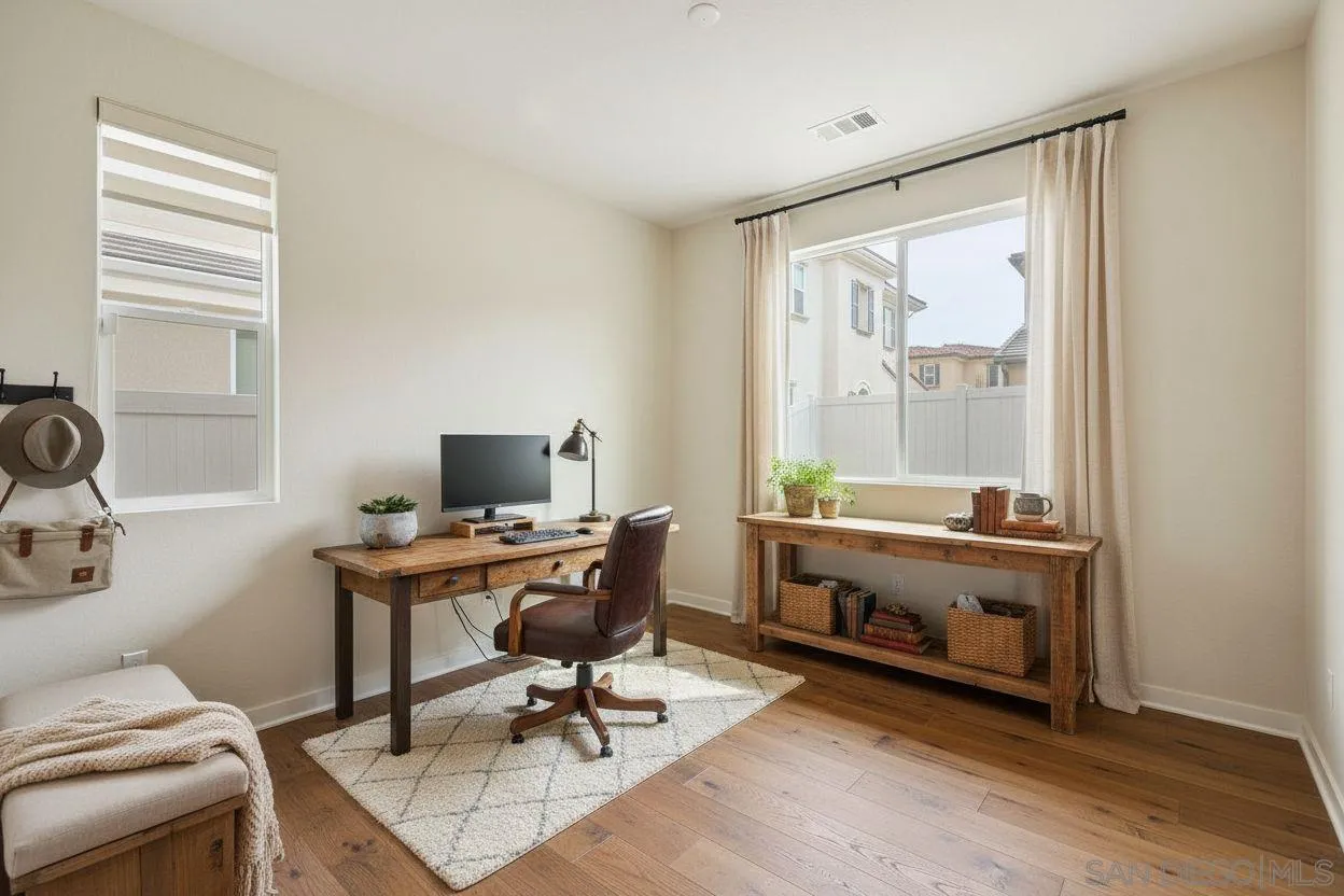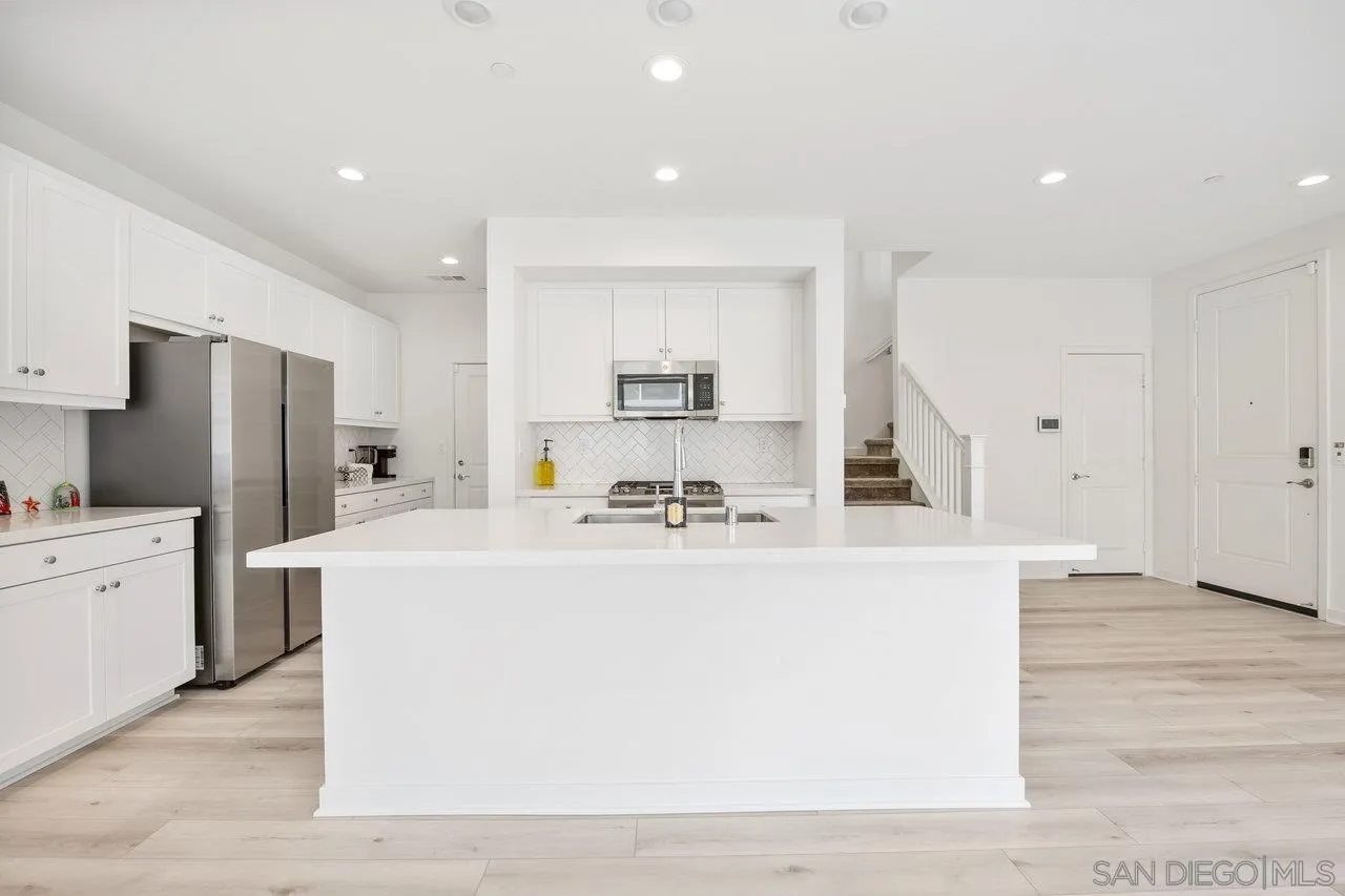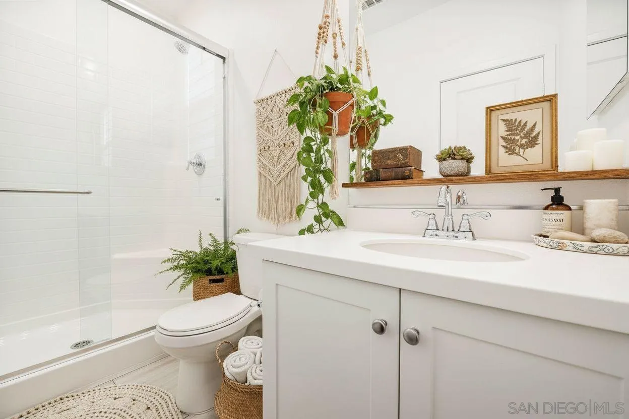 PHOTOS STAGED (UNSTAGED PHOTOS ALSO INCLUDED UNDER MEDIA TAB). Very rare floorplan with 4th bedroom and full bathroom DOWNSTAIRS! Also, end of street lot is VERY rare...this allows you to park up to two cars in your driveway (only end lots have this option). This impressive home boasts a generous 2,046 sqft. of living space on a substantial lot of 2,983 sq ft. The property offers four bedrooms and three bathrooms, providing ample space for comfort and convenience. The layout includes a bedroom and full bathroom on the first floor. Perfectly positioned at the end of a motor court and adjacent to open greenbelt space, this home provides extra privacy and stunning mountain views that can be enjoyed all year round. Convenience is key with driveway parking available for guests. This home is equipped with modern amenities including a tankless water heater, energy-efficient lighting and appliances, complete HVAC system, (10) Solar Panels (PAID OFF) - all designed to enhance your living experience while promoting sustainability. Kitchen enthusiasts will appreciate the stainless GE appliances, upgraded fixtures throughout the house, shaker cabinetry, custom marble countertops with 4” backsplash throughout. New plank vinyl flooring enhances the overall aesthetic appeal of this residence. Lighting plays an integral role in setting the mood for any room; hence recessed lighting has been installed throughout the house. Additional features include custom mesh shades ($19K), an oversized walk-in pantry and walk-in closet in the primary bedroom offering plenty of storage options.
