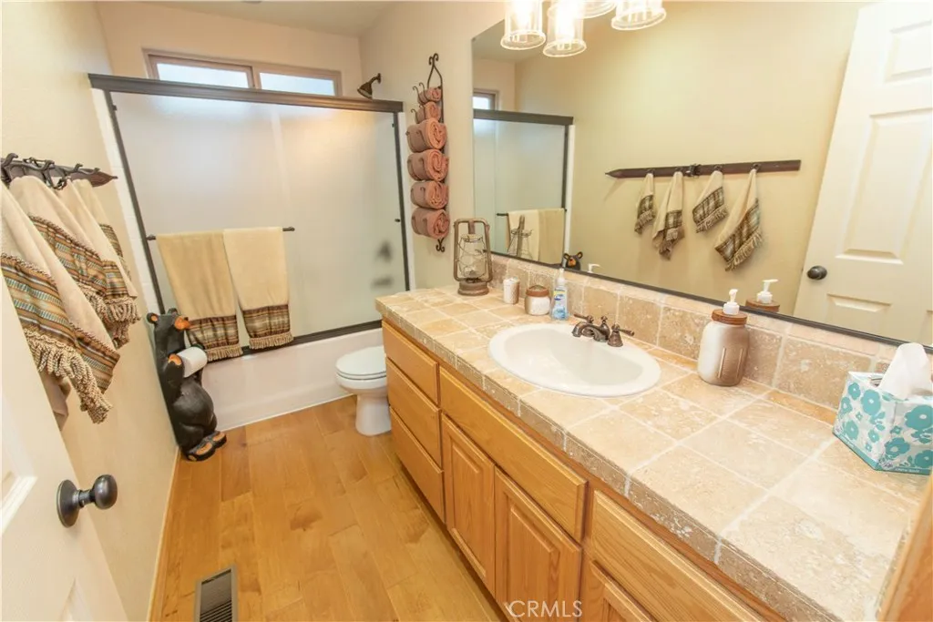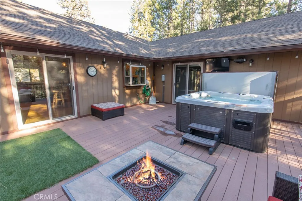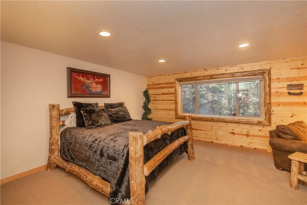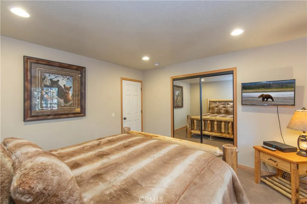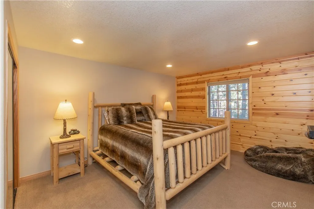IMMACULATE, TURNKEY LOG SIDED HOME IN PRIME FOX FARM LOCATION & CLOSE TO ALL THAT BIG BEAR HAS TO OFFER! Wonderful treed setting, backing to new Rathburn Creek trail. Spacious great room living area with T&G knotty pine ceilings and log accents. Floor to ceiling stone fireplace. Adjacent dining space with easy access to rear deck. Open kitchen area has granite counters, breakfast bar seating, and newer Kitchen Aid stainless steel appliances. Distressed wood flooring. Huge rear deck is set up to entertain with seating area, BBQ, hot tub, TV and peek-a-boo ski slopes views. Large, private master suite has vaulted ceilings, walk-in closet and deck access. Updated lighting fixtures. Separate lower level bedroom suite could be a nice game room as well. Huge basement storage area with room for expansion & more square footage. Rathburn trail system provides easy access to the Moonridge commercial district & overflow ski parking. COMES FURNISHED RIGHT DOWN TO THE SNOW BLOWER!