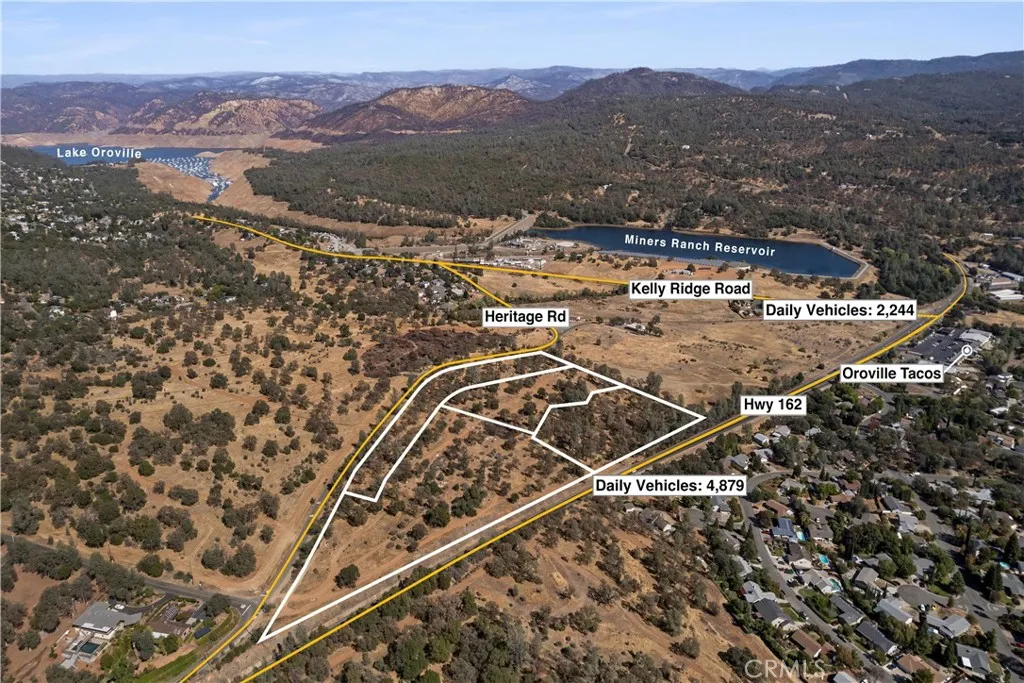 Prime Development Land! This may be the opportunity you are looking for to create your own development of Medium Density Residential homes just down the road from Miners Ranch Reservoir and Lake Oroville. The property is centrally located and close to Shopping, Restaurants, Schools, has nearby power, water, and sewer. This property, coated with Dunstone Loam, and Loafercreek Loam soils on a total of 22.76+/- Acres in 4 parcels, has the potential to be subdivided into roughly 95 lots, depending on the configuration of development. Homes are now being built just across Oro Quincy Highway in the Village Oaks Neighborhood. Butte County zoning MDR provides for up to 6 units per acre development, with a minimum lot size of 6,000 Square Feet, minimum setbacks of 20ft in the front, 5ft on the sides, and 10ft in the rear, as well as a maximum height of 35 ft. Ask your agent for a copy of our supplemental documents, including our offering memorandum, zoning info, soils reports, NHD report, and a potential subdivision map! Don't forget to check out our video tour and topography maps in the virtual tour section!