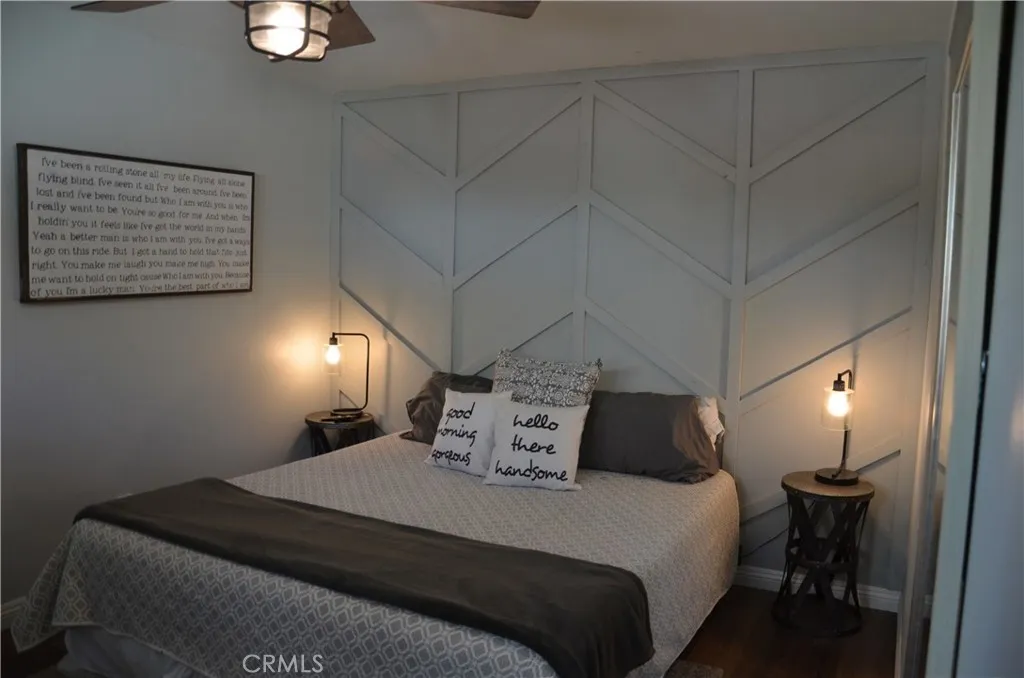 This is a must see!!!! The sellers have really upgraded the inside and outside of this home with features you will love. This home will not last. Home has been recently been painted inside and out. Wood-look floors are all new throughout the home with all new baseboards. Kitchen has new quartz counters, tile backsplash, black stove, microwave, dishwasher. All bedroom doors are paneled with new black hardware. New windows throughout including sliding door to spacious backyard. Yard has new cement patio and large grass area with auto sprinklers front and backyard. All bedrooms have new decorative ceiling fans with light. Hall bathroom has new plumbing, new tub, tiled wall, black fixtures and decorative tile flooring. Front bedroom is being used as an office, hallway bedroom is being used as a child's bedroom. On suite master bathroom has new shower enclosure, tile walls, black fixtures and decorative tile floors. Master bedroom has 2 closets, wood-look floors and seller has installed decorative wood wall design.