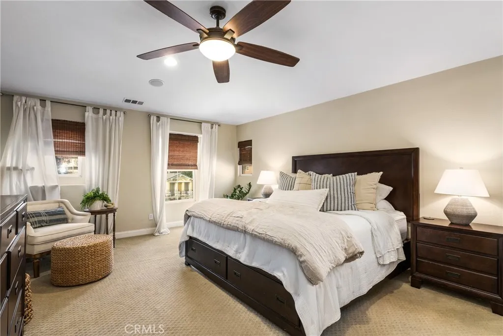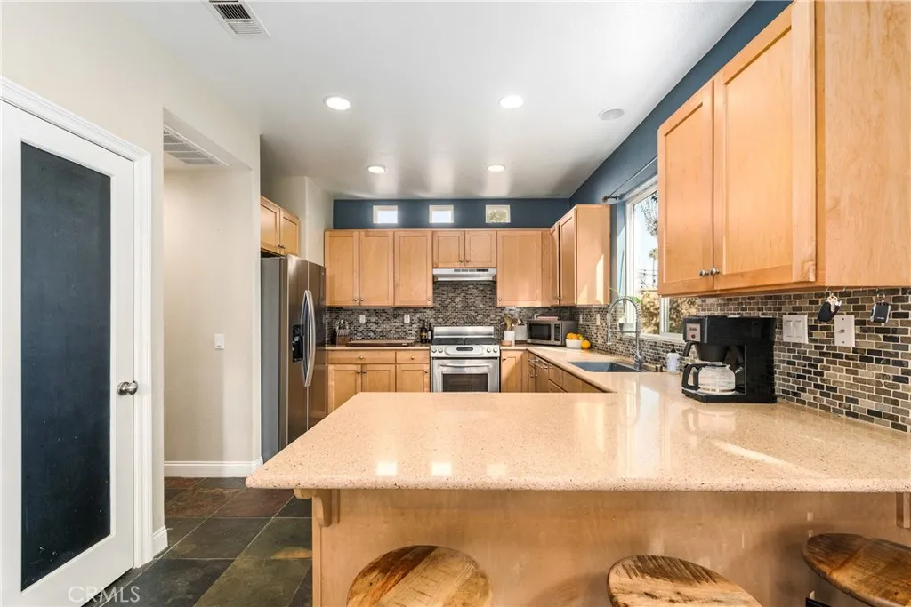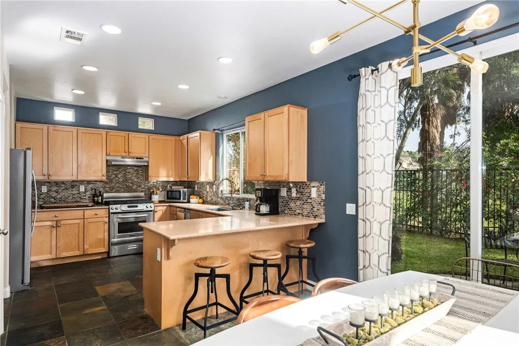 Welcome to this beautifully upgraded home tucked away in Indian Hills community. This bright & open floorplan welcomes you & guests with family room open to dining room, flowing into gourmet kitchen complete with breakfast bar. Cozy fireplace and desk nook, perfect for home offices or homework station. Tons of storage with walk-in pantry. Originally the model, this home boasts beautiful upgrades including slate floors & custom tile details. Spacious master suite featuring a walk-in closet and luxurious bathroom with dual sinks and separate tub & shower. Upstairs laundry and 2 car attached garage add to convenient living. Beautiful yard backing to golf course provides privacy and lush vegtatation. Enjoy dining al fresco and bbqing with friends & family. Gardeners paradise! Desirable location, across from pool. Close to shops & freeways, the best of Jurupa Valley.