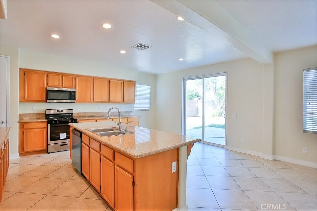 This Beautiful 2-story home is in a very nice and quiet Neighborhood of the Celebrations Home Association Community. Minutes to schools, shopping, lake Perris, and parks, and hospital. Excellent turnkey condition with brand new laminate flooring, fresh paint, and brand-new stove, microwave, dish washer! This home has 3,075 square foot of living space and was built in 2006 with 3-attached car garage. House figure with 4 bedrooms with walk-in closets and 3 full bathrooms with one Jack & Jill bathroom. A Spacious Kitchen with granite countertop and beautiful tile throughout with center island looks onto the Family room. A bedroom downstair is convenient for your guests. You will enjoy a cozy fireplace in family room accessible to big cement backyard which you can plant many flower bushes, and fruit trees as you wish. When you step into the front door with covering your bare foot of brand-new laminate flooring, smell of fresh paint, you feel the cares of your day begin to melt. A MUST SEE!!!!! WONT LAST LONG!!!!