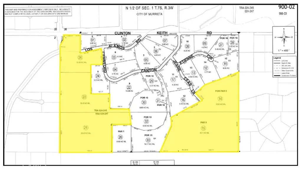 PROPERTY OVERVIEW: The property consists of five parcels that make up approximately 104.5 acres of raw land in Murrieta, CA. Three of the five parcels (APNs: 900-020-021,023,026) are adjoined starting at the intersection of Clinton Keith Rd and Menifee Rd, extending about a half-of a-mile to the south. This portion of the property makes up nearly 59 acres while the other two parcels to the east (APNs: 900-020-014,015) make up the remaining +/- 45 acres of the property. In terms of the propertys location, it sits about 1.2 miles from the I-215 interchange at Clinton Keith Road where there is large retail presence, approximately 2 miles from Highway 79 access, and has multiple schools in a 2-mile radius. Per the Eastern Municipal Water District, the nearest water and sewer access to the site is at the corner of Whitewood Rd and Clinton Keith Road to the west of the property. PROPERTY FACTS: The five parcels that make up the property are all zoned Rural Residential with a general plan designation for Large Lot Residential (LLR). The Rural Residential zoning is intended for singlefamily residential use with a density range of 0.1-0.4 dwelling units per acre, or rather minimum lot sizes of 2.5 acres. LOCATION: Murrieta - Riverside County, CA TOTAL SITE AREA: 104.50 Acres APN: 900-020-014, 015, 021, 023, 026 PURCHASE PRICE: $2,900,000 PRICE PER SF: $0.64 ZONING: Rural Residential GENERAL PLAN: Large Lot Residential ZONING: The five parcels that make up the property are all zoned Rural Residential with a general plan designation for Large Lot Residential (LLR). The Rural Re