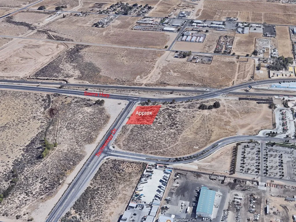 2.14+/-Acre SW Corner of paved Sierra Hwy. and Ave. P-8 (Technology Drive), Zoning is Plan Development Industrial property (PDM1) All utilities in the Street. It is just across the street from Palmdale's new transportation center. Fwy. 14 just 1/2 mile to the west. Trade & Commerce Center just west of Fwy. 14. Winnell Industrial center 300' north of the subject property. The Palmdale Air Terminal is just 3.5 miles to the east. Palmdale carries the nickname of "aerospace capital of the United States", which has been the home for research, development, and testing of several important aircraft. Palmdale is home to Lockheed Martin, Boeing, NASA, Northrup Grumman, and Air Force Plant 42. Several other manufacturing users have relocated to Palmdale seeking cheaper land alternatives to Los Angeles as well as to take advantage of various tax incentives. This movement, along with the continued growth of the residential population solidifies Palmdale as an attractive long-term investment. You may google the following GPS coordinates to locate the property: 34.594299 -118.120990