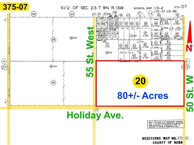 MAJOR PRICE REDUCTION!!!!!!!! 80+/- Acres flat corner land with an expired tentative tract map No. 6440 for 365 Lots located from 50th St. West to 55th St. West on Holiday Ave. Developer dreams. All utilities available, within the Rosamond community Service water district. South of Rosamond Blvd. The tract is in the path of future development, with newer residential tracts in the area. It's 2.5 miles to the west of the Hwy. 14 just over the Los Angeles county line, The world-famous Willow Springs Raceway is within a mile. THE LAND IS ALSO FOR LEASE AT $0.085/SQ. FT./YEAR ($3,500/ACRE/YEAR). THE LEASE AMOUNT WILL BE $296,208/YEAR. You may google the following GPS coordination to can find the exact place of the property: 34.851088 -118.224840