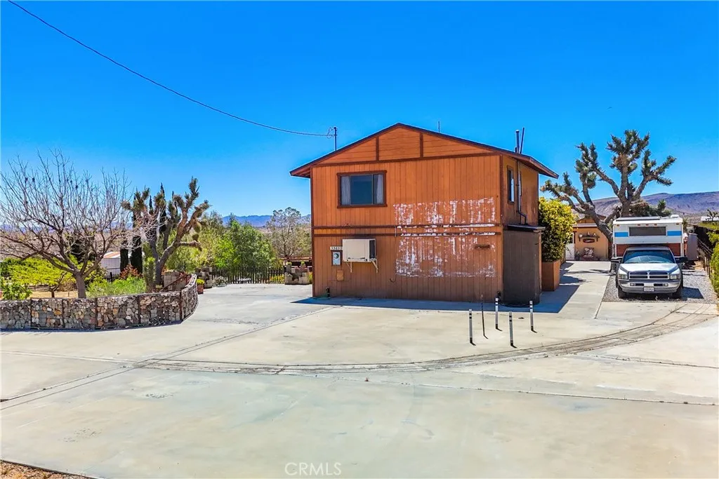Endless possibilities abound with this beautiful, large property with several homes and structures. This area in the hills provides for a relaxing rural setting with panoramic views for miles. Located on this two acre property are a midcentury home with one bedroom one bath with and an enclosed porch, a 1560 square foot two story home with three bedrooms and two bathrooms, a studio apartment with an open kitchen, one bathroom and a large entertainers patio. In addition there is also a large detached studio that can be used as additional living space, a separate laundry structure, a separate studio being used as a gym, a detached one car garage, a half court basketball court and more. Not to mention the sprawling, well manicured and vibrant grounds adorned with mature joshua trees, cacti, flowering plants and an orchard of fruit trees. There are several secluded spaces dotted about the property and beautiful courtyards tucked here and there to enjoy or gather together. The midcentury home is on its own water and power with separate meters for ease of creating a separate rental if desired. With some fixing up this would make for a few unique income properties, a great retreat location or a nice family compound. Also located near to so many of the areas great attractions and other landmark cities this locations neighborhood is known for it's tight community and proximity to some really great spots for eating, shopping, sight seeing and of course world class outdoor activities. Just a short drive to the main entrance of the Joshua Tree National Park, Giant Rock, The Integratron