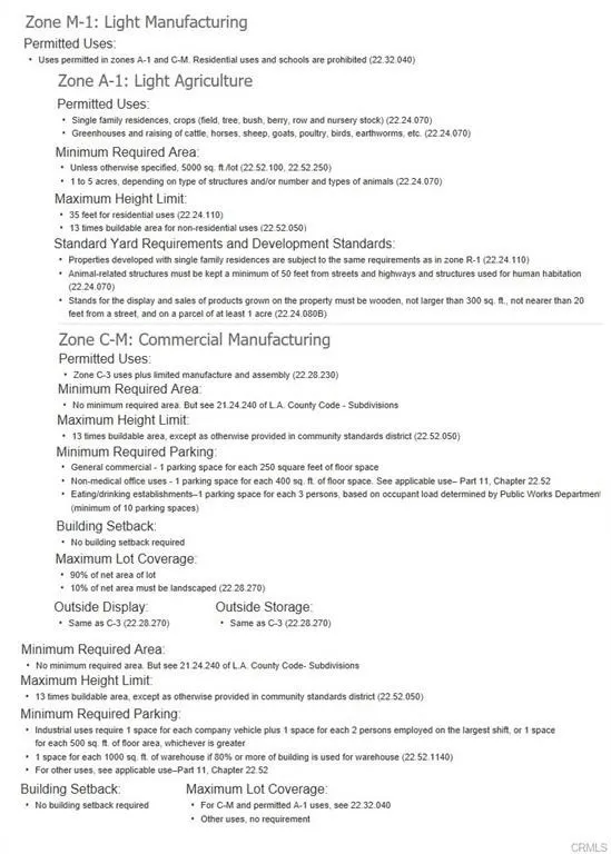 Selling 10 acres of Light Industrial Land, M-1 Zoning per LA county. Good for car storage, truck parking, warehouse and Battery Energy storage facility for Solar companies and among others. See attached documents and pictures for list of possible use for M-1 zoning. Located in the direction of growth and development, this huge vacant land has tons of potentials. Approximately 9.56 acres with wide frontage along the spine road Sierra highway just north of the city of Lancaster, about 2.7 miles. Electricity is available and located at the rear of parcel. Another road at the rear/west side of the land (secondary road). About 1.32 miles from from Fwy 14. Water nearby, about 1/2 mile away, just around the the corner of Ave E and Sierra Highway. Great investment for buy and hold investor or owner-user.