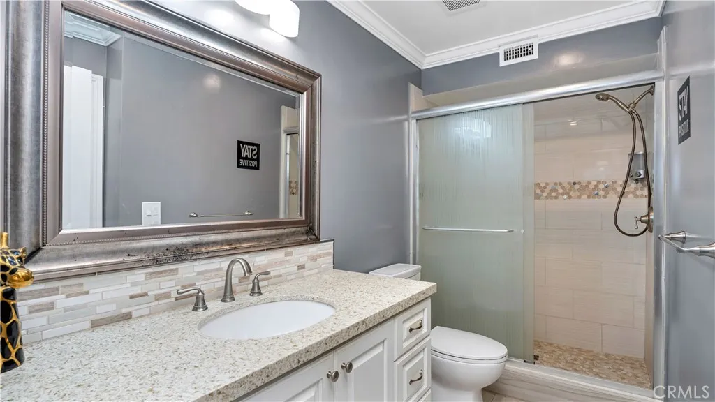 Nestled within the desirable American Beauty Village West, this lower corner end unit offers a serene retreat away from the street. As you step inside, the gorgeous new waterproof laminate flooring catches your eye, complemented by a cozy fireplace and a wrap-around balcony. From this vantage point, enjoy views of the lush greenbelt, sparkling pools, and breathtaking sunsets. Natural light floods the space, highlighting features like recessed lighting and crown molding. The living room, dining area, and spacious kitchen create an inviting atmosphere. Two generously sized rooms accompany the primary ensuite, complete with double doors. Both bathrooms have been tastefully updated. Convenience abounds with an in-unit washer-dryer. Stylish upgrades include a brand-new 3-ton Carrier HVAC system (with a 10-year manufacturer warranty), Nest thermostat, and fresh paint. Community amenities encompass multiple pools, spas, tennis courts, and playgrounds. Conveniently located near shopping, dining, entertainment, bike trails, hiking trails, schools, the freeway, and Metrolink stations, this home offers a prime SCV lifestyle. Buyers may potentially assume the sellers FHA loan. No Mello Roos Taxes, and the HOA covers water, trash, exterior maintenance, and insurance. Property is being sold with tenants in place.