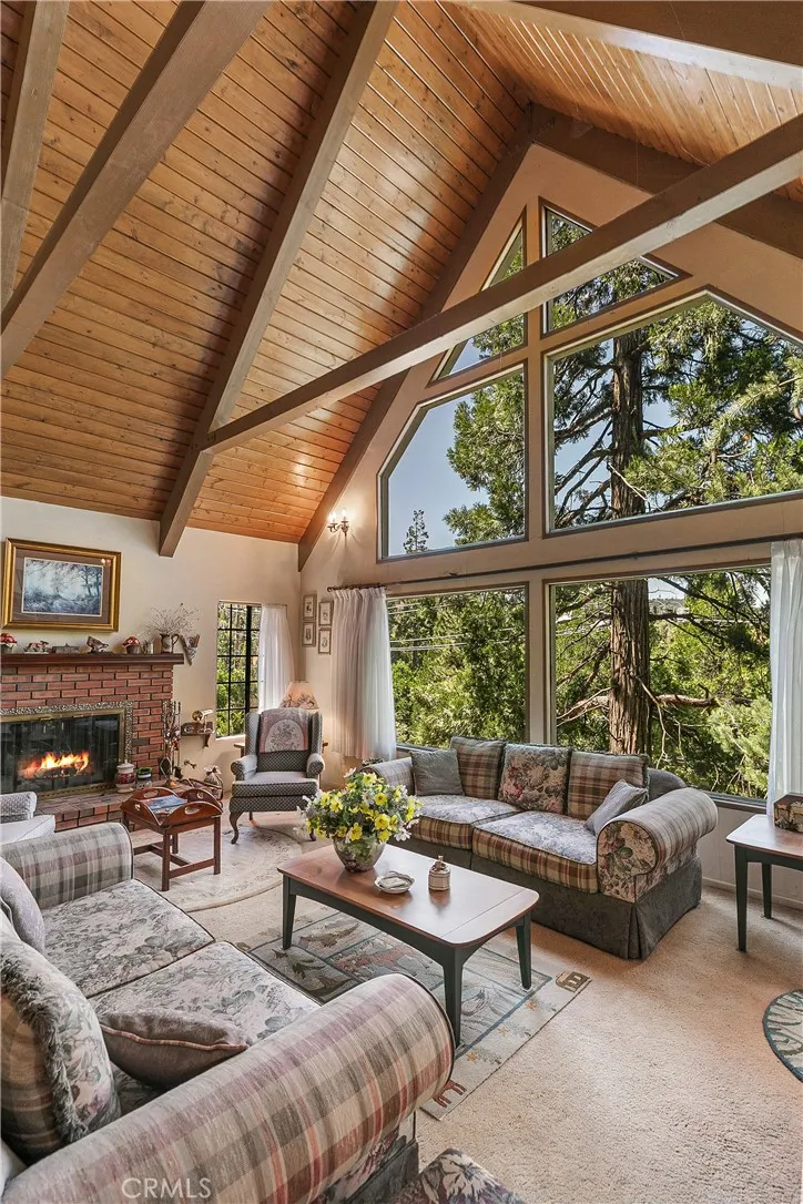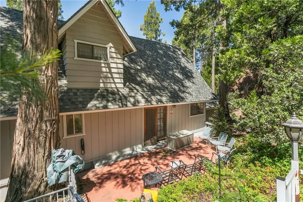 Built in 1978 by the seller, this property hit the market for the first time. The home boasts a high ceiling in the living room, complete with a cozy fireplace that invites you to unwind. A large glass window in the living area provides a serene view of the surrounding trees, bringing nature into the living space. The main level features a well-appointed kitchen, a dining area perfect for family meals, and the master bedroom, ensuring convenience and comfort. Upstairs, the property includes two spacious bedrooms and a bath, offering plenty of space for family or guests. The lower level features a welcoming family room with a second fireplace, ideal for gatherings, game nights, or simply relaxing with loved ones. Outside, the property includes a dedicated parking space next to Grass Valley Road and a driveway leading to a 2-car garage, providing ample parking options. The spacious backyard is a haven for outdoor enthusiasts, featuring a patio and additional seating areas under the trees, perfect for barbecues, outdoor dining, or simply enjoying the fresh mountain air. With dual access, there is a private dirt driveway behind the property, offering extra parking for cars, RVs, or boats. Minutes from the Lake Arrowhead Country Club and Arrowhead Ridge, the home provides easy access to a range of recreational activities. It is also just a few minutes from the lake, where residents can enjoy the beautiful scenery, boating, fishing, or simply relax by the water. This property is a rare find, combining a prime location with lake rights, making it a highly desirable option for pote