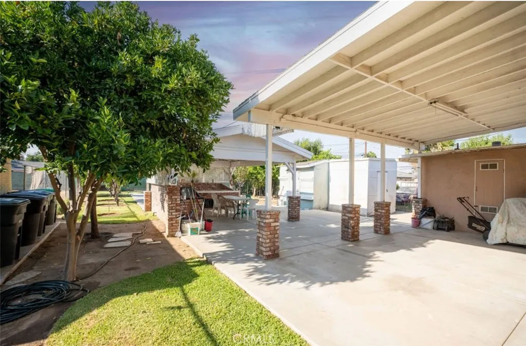 Welcome to your charming new home in a prime location! This delightful single-story residence boasts 3 bedrooms, 2 bathrooms, and spans 1,084 square feet of comfortable living space. Nestled in a serene neighborhood, this property offers convenience and comfort. Step inside to discover an inviting interior featuring a spacious living room ideal for relaxing and entertaining. The kitchen is beautifully appointed with appliances, ample cabinetry, and a cozy dining area perfect for enjoying meals with loved ones.The master bedroom provides a peaceful retreat with plenty of natural light. Two additional bedrooms offer flexibility for a growing family or a home office setup. You will find half a bath next to a spacious laundryroom. Outside, your backyard oasis awaits with lush greenery and mature fruit trees, creating a tranquil atmosphere for outdoor gatherings or simply unwinding after a busy day. Imagine savoring fresh fruit from your own garden while enjoying the serene surroundings. You will find a covered patio, and an outdoor Covered Kitchenette for extra entertaining. Enjoy an additional room with full bathroom and extra storage space. Having access from the back yard for extra convenience. Located in a highly sought-after area known for its convenience and community charm, this home is a rare find that combines comfort, practicality, and accessibility. The level of pride in ownership is without a doubt impressive. Minutes away from Schools, Restaurants, freeway access and shopping. Don't miss out on this opportunity to make this wonderful property your own! Your new beg