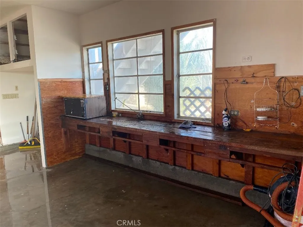 PRICE REDUCED AGAIN on this charming Mediterranean style home offering value, space and classic style with warmth that feels like home. The 1692 sq ft boasts a real local rock fireplace in the living room as well as a smaller red real brick FP in the dining room. The home looks fresh and new when you first walk in with its entire interior receiving new smooth wall texture and paint, all new outlets, switches GFIs, recessed lighting and fixtures. The floors throughout the house are custom stained and sealed concrete. The one bathroom inside the home is very large and newly remolded with tiled walk-in shower and the new tiled tub surround. When guests arrive you also have the oversized 2 car garage with a bathroom with very large shower and small bedroom/laundry with a door to the back yard. The garage is large enough to set up a full 2 bedroom apartment complete with kitchen and living space with more nooks for a fridge, stove, storage as well as two long counters for work space and still has a carport for your cars. There is an outdoor stairway leading to a roof top deck with unobstructed views as far as you can see during the day and twinkly lights of the Marine base at night, but the real show stopper is the stary nights. Fully fenced back yard also includes a large spa, ocotillo, palm and fruit trees, and still enough room to add a swimming pool and outdoor bath with shower and more. This property offers great income opportunities for long term and no cap limitations on short term rentals since it is a county parcel. it also is on city water and great exposure for solar