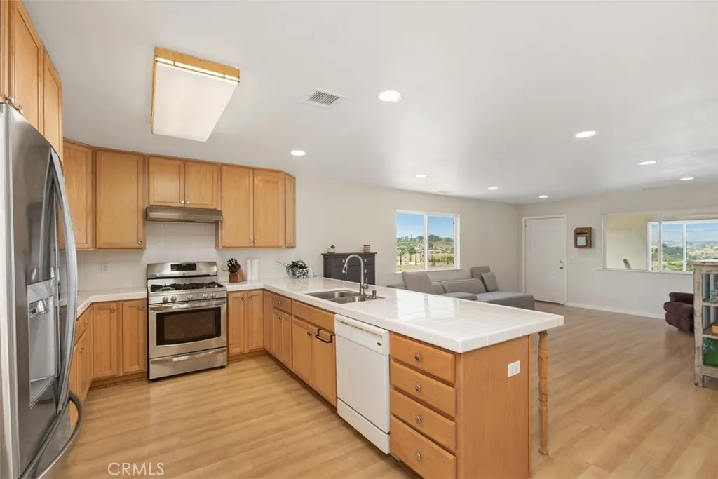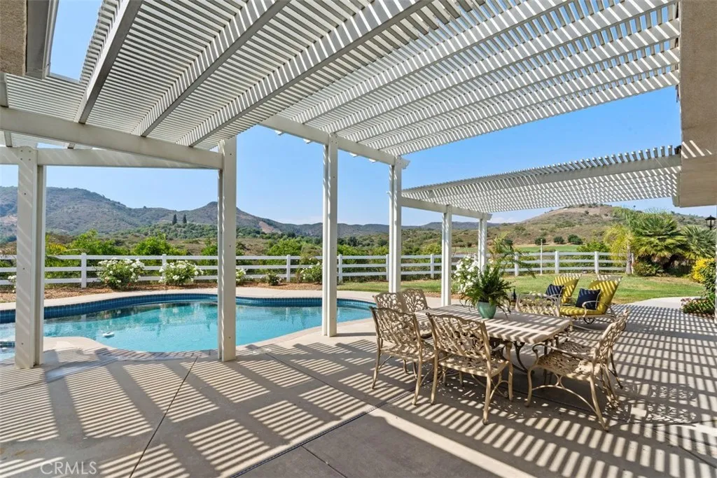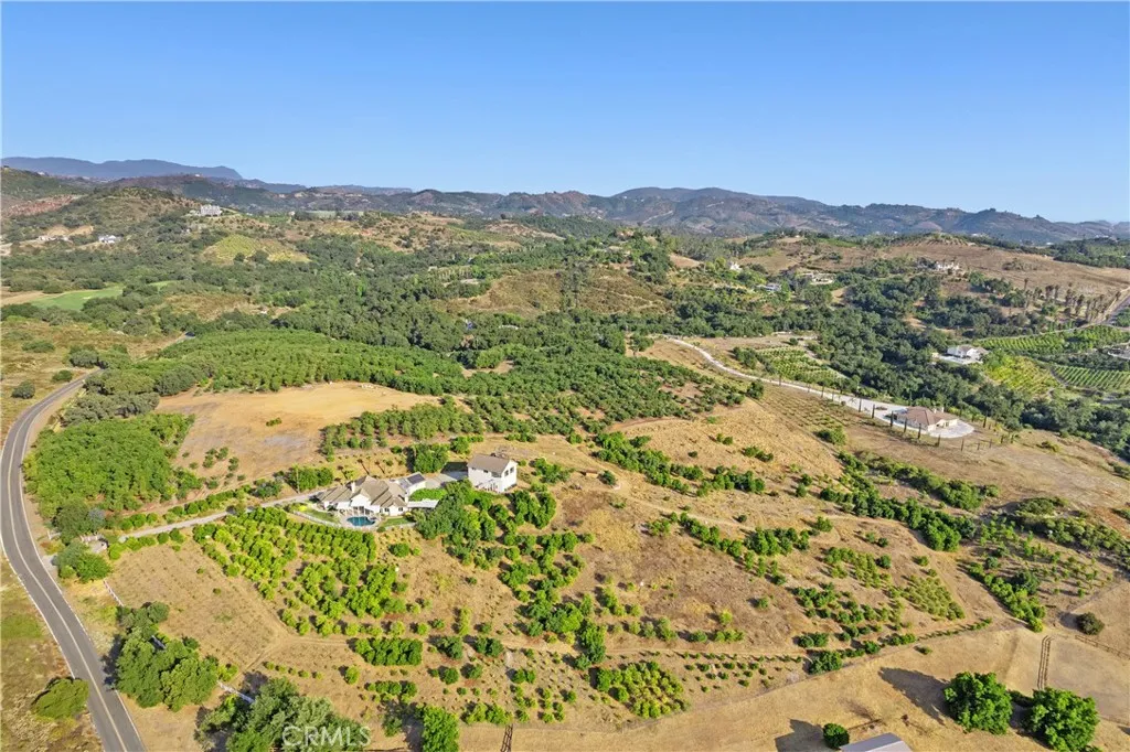 PRICE REDUCTION. This property is located on almost 10 acres in the desirable De Luz community with a 3963 sq.ft. main house plus a 1400 sq.ft. detached guest house. Both homes have amazing views and breathtaking sunsets including views of the local Cross Creek golf course. Other features include a swimming pool and spa, an organic avocado and citrus grove, family orchard, a huge RV garage and a great location with an easy drive to town. The custom built main home has 12ft. high ceilings in the entry with 10ft. ceilings throughout. Features throughout the main house includes wood flooring, custom quality crown molding,built in cabinets and was specifically designed to enjoy the views from almost every room providing lots of natural light throughout. The well designed kitchen includes a large island, granite countertops, newer appliances including double ovens and a sub zero refrigerator plus lots of cabinetry and storage and a walk in pantry. The comfortable family room features a custom built fireplace encased by built in cabinets on either side. The huge private master suite overlooks and opens to the landscaped fenced backyard and pool and spa area. There is a lovely separate formal living room and dining room plus an office with built in cabinets and book shelves. The 4th bedroom with an en suite bathroom is upstairs. Other features include a new water filtration system, newer AC units plus central vac system. The guest house was built in 2006. It features a living room, totally self contained kitchen, two bedrooms plus a full bathroom. It also has an outdoor enclosed l