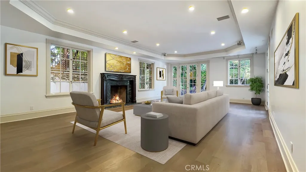 Discover the Pinnacle of Beverly Hills Living Welcome to the epitome of luxury living in the heart of Beverly Hills, where opulence meets sophistication in the prestigious 90210 lifestyle. This gated Mediterranean estate, stylishly refreshed in 2024, spans an impressive approximately 7,400 square feet, offering six spacious bedrooms and five-and-one-half bathrooms on a grand roughly 16,450 square foot lot. The grand two-story entry, featuring a sweeping staircase and skylight, sets the stage for elegance. The formal living room, with its stunning fireplace and Palladian windows, exudes sophistication, while the richly paneled oak library with walnut floors offers a cozy retreat. The inviting family room seamlessly opens to the pool area and beautifully landscaped gardens, perfect for indoor-outdoor living. Culinary enthusiasts will love the gourmet kitchen with its huge center island, Wolf appliances, and ample cabinetry. Adjacent to the kitchen is a convenient maid's quarters featuring a washer, dryer, two bedrooms, a bathroom, plus a separate staircase leading to the second floor. The formal dining room, comfortably seating 12 guests, is ideal for grand entertaining. Upstairs, the master suite is a serene sanctuary with a sitting room, cozy fireplace, and expansive master bath, plus three large bedroom suites, ensuring plenty of space for everyone. The outdoor oasis features a sparkling pool, multiple seating areas, and lush gardens perfect for relaxing and entertaining. Recent updates include freshly painted interiors and exteriors, new carpet throughout, and upgraded W