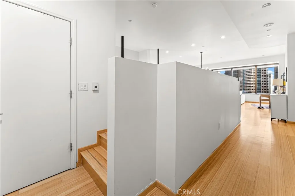 Included in the sale are four adjacent assigned parking spaces within the building! Perched on the 26th floor, this luxurious 1-bedroom loft offers breathtaking views of Downtown Los Angeles. Located in the prestigious 1100 Wilshire building, the unit features a European-style kitchen with stainless steel appliances, white cabinets, granite countertops, and a gas range. The bedroom is elevated and comes with a spacious walk-in closet. Additional amenities include in-unit washer and dryer, hardwood flooring throughout, and carpet in the bedroom. 1100 Wilshire provides an exceptional living experience with 24-hour security and concierge services, a fitness center, media room, and conference room. On the 17th floor, the Sky Deck boasts a heated infinity pool, spa, cabanas, lounge chairs, fire pit, and BBQ grill. This prime location offers easy access to Crypto.com Arena, LA Live, Regal Theaters, The Bloc, Ralph's, Starbucks, Target, Whole Foods, MOCA, Walt Disney Concert Hall, and a variety of Downtown dining and entertainment options. There are two (2) common-area potty areas for dogs. Amazon lockers on the 1st floor, and a self-checkout mini mart. Please note that the lofts bedroom is not enclosed.