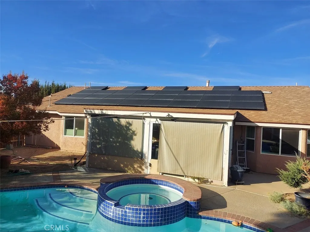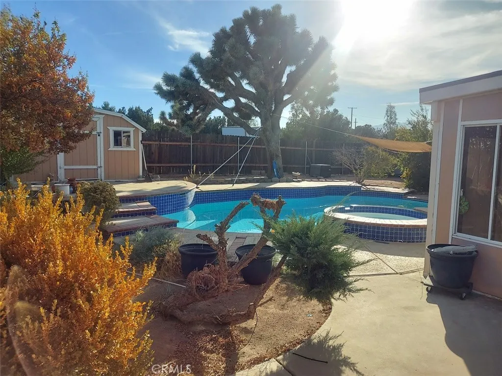Wonderful home located in the desirable area of Oak Hills. Home has 3 bedrooms and 2 and a half bathrooms, large laundry room with lots of storage and access to the side yard. Home was rebuilt in 2021 due to a fire. Original year built 1988. Effective year built 2021. Almost everything was replaced in 2021 including: windows, doors, plumbing, electrical, drywall, cabinets, flooring, counters, A/C & heating, insulation and roof. Contractor did an excellent job with quality workmanship. Not many homes for sale with an effective year built as recent as this one. Center of the home has high vaulted ceilings, granite counter tops, stove, dishwasher and LVT flooring thru-out for easy maintenance. Beautiful cabinets in the kitchen and throughout the home. Primary bedroom has a large closet and bathroom suite. Upgraded ceiling fans in all rooms. Home has a pool and SPA and tile has been upgraded and a new pump installed for those fun summer days. Attached 2 car garage and a detached 2 car garage, a shed for extra storage. Plenty of room on this 2 Acre parcel to ride your quads. Sliding door which enters into a good size sunroom with access to the backyard. Wood burning stove is surrounded by brick and will be great for those cold desert nights. Solar was installed when the home was rebuilt and solar will be paid off in escrow. Solar is on the Net Energy Metering where you could receive credit from Edison if you system generates excess energy then what you use. Home is completely fenced all the way around the property and around the pool area. Home is on Septic and was serviced abou