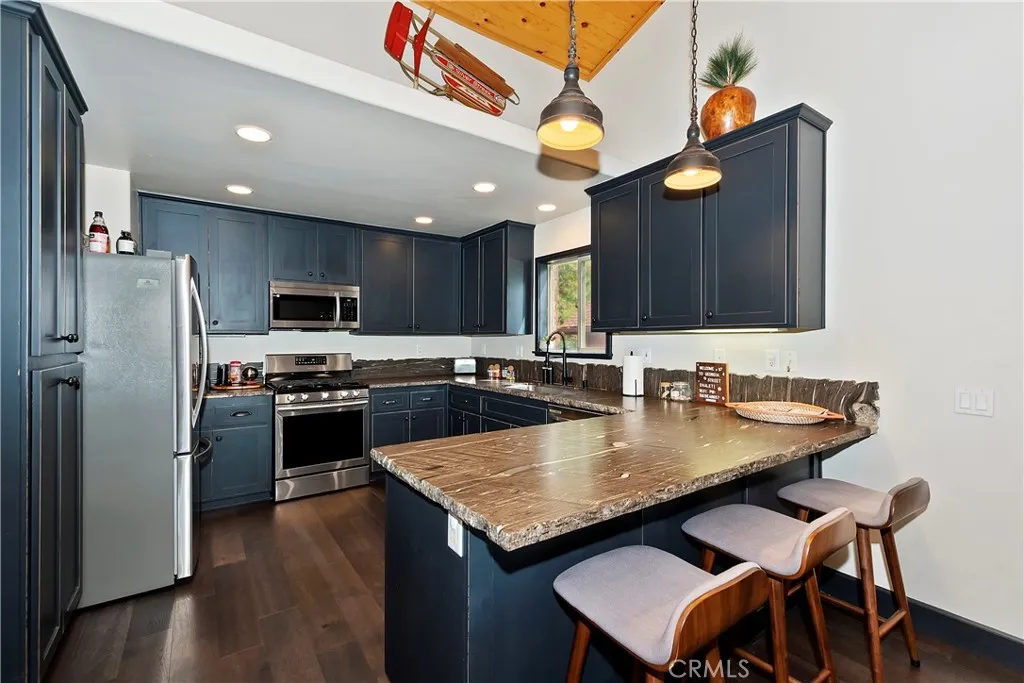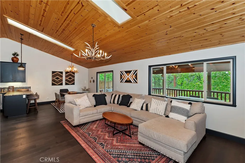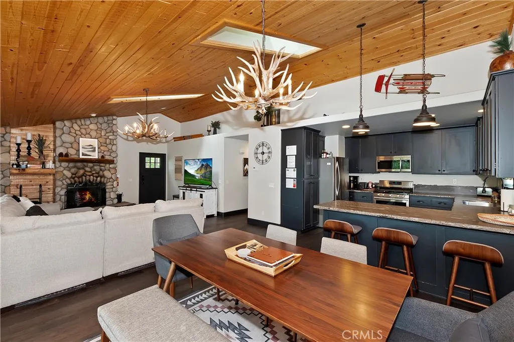 Nestled amongst the Oak trees, this this custom 3 bedroom, 2 bath custom home offers a wonderful mountain experience, within minutes of the Big Bear village, Big Bear Lake, and Big Bear's world famous ski resorts. Enjoy the peaceful outdoor living with a covered deck offering wonderful view with outdoor dining area and sitting area. The rear parking area accommodates a level entry to avoid stairs. The modern kitchen features a gorgeous stone counter top and updated amenities. Take advantage of all that this home has to offer!